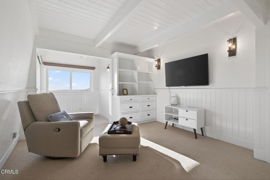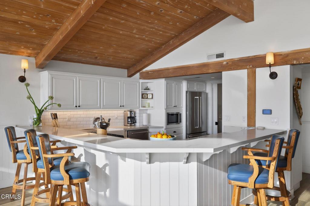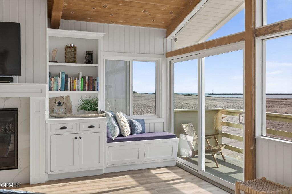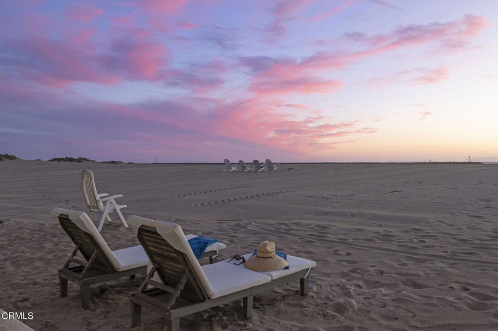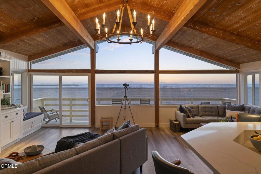OCEANFRONT LIVING, home on Hollywood Beach -- Just North of Malibu and South of Santa BarbaraWelcome to your beachfront escape, where panoramic ocean views greet you from nearly every room. Perfectly positioned directly on the sand, this three-story coastal residence blends modern comfort with timeless East Coast-inspired design, offering a rare combination of style, space, and effortless beach access. Offered completely furnished, this is a true turnkey opportunity -- simply arrive and begin enjoying the beach lifestyle.The first level is designed for relaxed seaside living and entertaining, featuring a private guest suite, full bath, and a spacious family room anchored by a cozy fireplace. A kitchenette with a mini refrigerator and sink makes hosting easy, while custom built-in sleeping bunks create the ultimate kids' sleepover retreat. Sliding doors open directly to the beachfront patio -- ideal for morning coffee, sunset gatherings, and evenings filled with family fun.The main living level is bright and open, showcasing soaring vaulted wood-beam ceilings, a dramatic wall of windows, and expansive living and dining spaces that frame endless ocean views. A second fireplace adds warmth and architectural character to the ocean-view living room. The spacious kitchen features double ovens, a built-in microwave, generous prep space, and direct deck access for seamless indoor-outdoor entertaining. A flexible bonus room and powder bath add convenience, while a well-appointed second-level laundry room enhances everyday functionality.Upstairs, the primary suite and guest bedroom both showcase unobstructed water views and en-suite baths. The primary retreat features a walk-in closet, custom built-ins, and a skylight, creating a private sanctuary that captures the peaceful rhythm of oceanfront living. Complete with a two-car garage equipped with a Tesla charging station, and direct beach access just steps from your door, this exceptional residence offers the ultimate Hollywood Beach lifestyle -- wake to the sound of waves, spend your days on the sand, and end each evening with breathtaking sunsets right outside your door. Walk to local Farmers Market, eateries, pubs and concerts in the park, live where you always feel like you're on vacation.