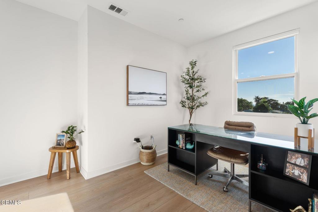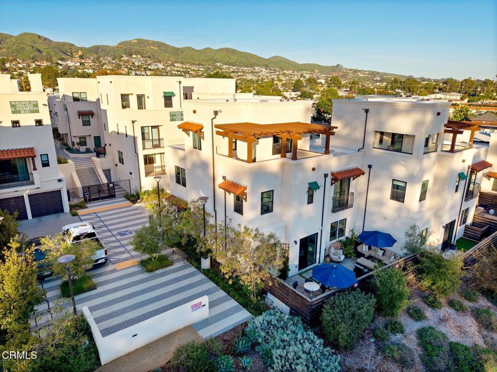 Step through the front door and activate beach mode.This gorgeous townhome lives like a single-family home, blending ocean views, airy space, and low-maintenance ease--just a short stroll from the sand. Morning walks to the beach, salty air drifting through open windows, and sunsets from home... this is coastal living done right.Bright, open, and designed for easy living, the home features high ceilings, walls of windows, and ocean views from every level. The main living floor flows seamlessly to a spacious patio and yard with a relaxed, coastal feel--perfect for barefoot dinners, weekend gatherings, or winding down after a day at the beach under the glow of landscape lighting.Designed for both everyday comfort and effortless entertaining, the kitchen offers a walk-in pantry, center island, generous storage and connection to living and dining space. A large two-car garage provides plenty of room for beach toys, surfboards, and e-bikes--everything you need for the Ventura lifestyle.The primary suite is a true retreat, complete with balcony, walk-in closet, and a spa-inspired en-suite bath featuring custom stone counters and a large glass-enclosed shower. Two additional spacious guest bedrooms are complemented by a loft-style office filled with natural light and ocean views--ideal for working from home.The third-floor bonus room with half bath is a standout space--currently used as a family and entertainment room, but easily adaptable as an additional bedroom, media room, or bar lounge. It opens to a private balcony with sweeping ocean and island views, creating the ultimate coastal hangout.Turn-key, quiet, and idyllic--this is Ventura living at its best. Close to the beach, minutes from downtown, and thoughtfully designed for family, friends, and the coastal lifestyle you crave.