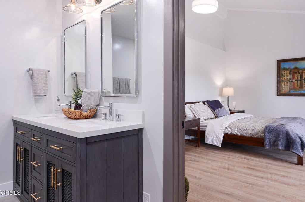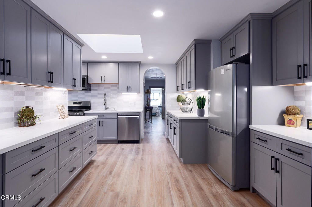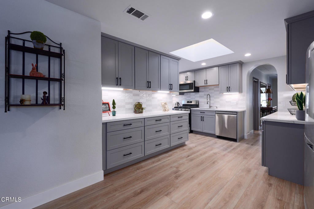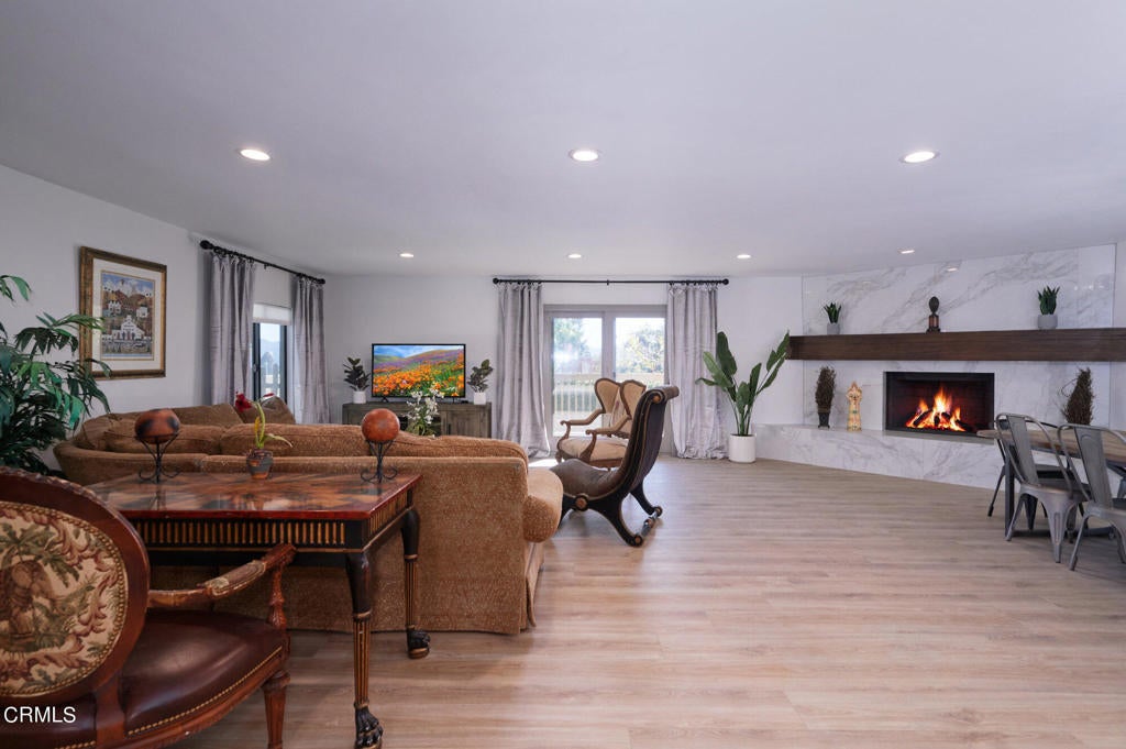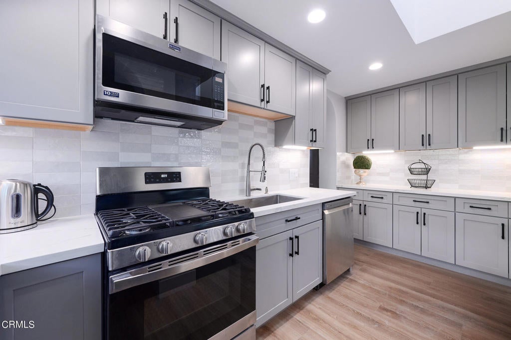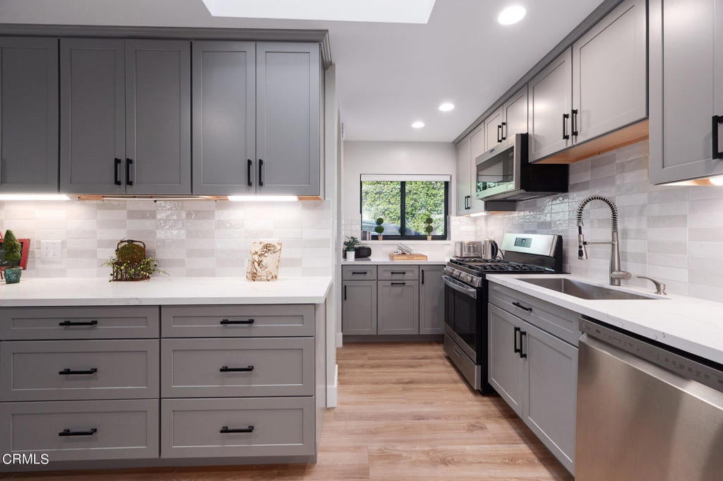 FULLY REMODELED IN 2022! Be the first to enjoy the amazing upgrades! At 5 bedroom, 3 bathrooms, it covers 2868 sq. ft. with a large yard and patio as well. There is a brand new kitchen, new hardwood flooring, all new bathrooms, new windows, paint and more. The kitchen has been fully redone with new counters, backsplash, new cabinets, and a brand new espresso bar. The family room has been updated with a new fireplace, updated furniture in the dining room, and new lighting. There is a lush front yard with mature trees and is the house is on a quiet, private street. There are 6 beds in the house, with two bedrooms with ensuite bathrooms upstairs and three bedrooms found downstairs. The primary bedroom has a brand new bathroom as well with a walk in shower and soaking tub, a new vanity, and lighting. The house has a large living room where big families can gather and a two story outdoor deck. The back patio has a BBQ and fire pit, and the house has been thoughtfully decorated throughout. The house also has a newer A/C. This furnished Camarillo home is central to grocery stores, shopping, and parks. This house can accommodate short term furnished stays starting from 1 month to a year or longer.