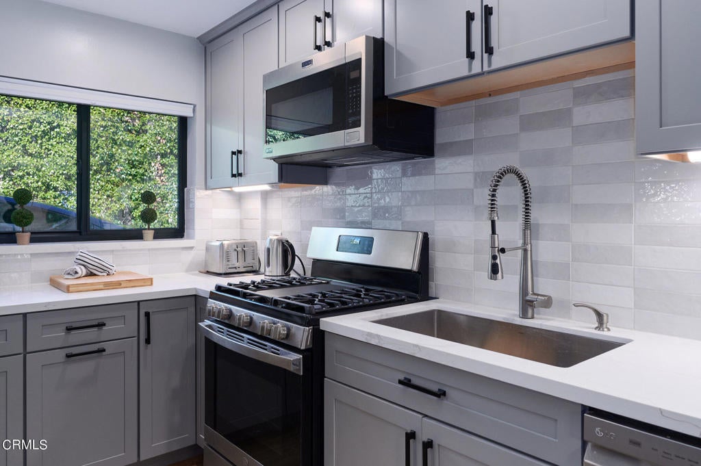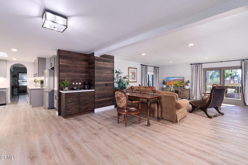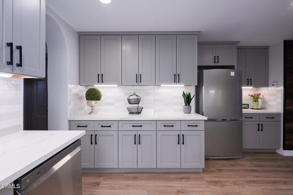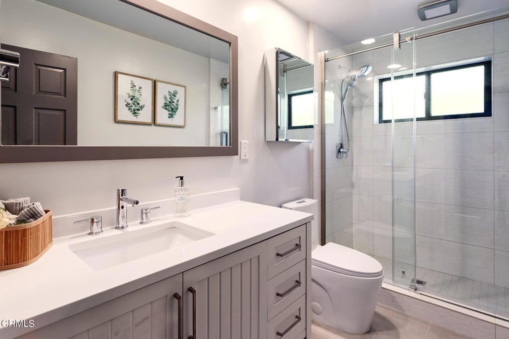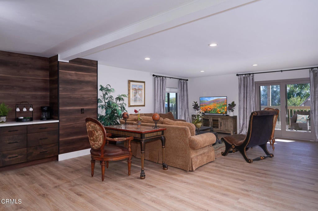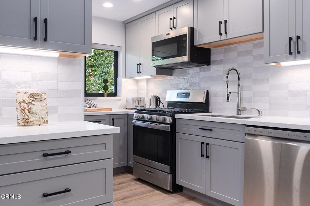 FULLY REMODELED IN 2022! Be the first to enjoy the amazing upgrades! At 5 bedroom, 3 bathrooms, it covers 2868 sq. ft. with a large yard and patio as well. There is a brand new kitchen, new hardwood flooring, all new bathrooms, new windows, paint and more. The kitchen has been fully redone with new counters, backsplash, new cabinets, and a brand new espresso bar. The family room has been updated with a new fireplace, updated furniture in the dining room, and new lighting. There is a lush front yard with mature trees and is the house is on a quiet, private street. There are 6 beds in the house, with two bedrooms with ensuite bathrooms upstairs and three bedrooms found downstairs. The primary bedroom has a brand new bathroom as well with a walk in shower and soaking tub, a new vanity, and lighting. The house has a large living room where big families can gather and a two story outdoor deck. The back patio has a BBQ and fire pit, and the house has been thoughtfully decorated throughout. The house also has a newer A/C. This furnished Camarillo home is central to grocery stores, shopping, and parks. This house can accommodate short term furnished stays starting from 1 month to a year or longer.