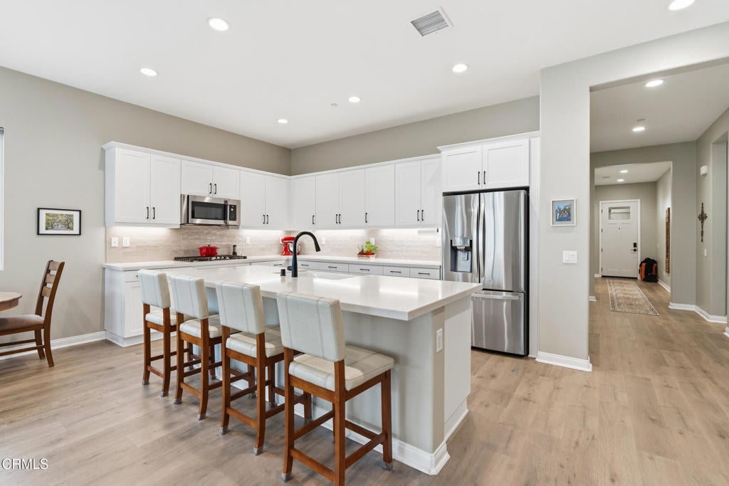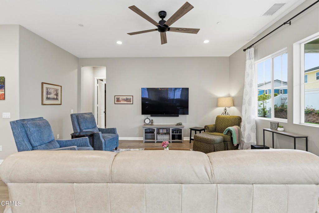 Wonderful opportunity to own this beautiful single-story Orchard home in the highly desirable Heritage Grove community of Fillmore! Situated on a nearly 10,000 sq. ft. premium lot, this spacious 2663sqft residence offers 4 bedrooms and 3.5 bathrooms with a thoughtfully designed floor plan ideal for comfortable living, multigenerational needs, and effortless entertaining.Upon entry, you'll find a generously sized bedroom with a full bath to the left--perfect for guests or extended family. To the right are two additional bedrooms with access to a full bathroom featuring dual vanities and a tub/shower combination. Each bedroom is equipped with its own ceiling fan for added comfort. The home showcases upgraded paint throughout, luxury vinyl plank flooring, and additional lighting that enhances its bright and inviting atmosphere. TVs are included.The open-concept kitchen is a true centerpiece, featuring a large island, massive walk-in pantry, upgraded appliance package, full designer backsplash, abundant cabinetry, and a reverse osmosis water filtration system. It flows seamlessly into the main living areas, making it perfect for gatherings both large and small.The spacious primary suite offers a massive walk-in closet and a beautifully appointed bathroom with custom tile flooring that complements the backsplash. A convenient indoor laundry room with dual access adds everyday functionality.Step outside to enjoy the covered rear patio--complete with a Gas BBQ included and ready for entertaining. The expansive backyard boasts approximately $50,000 in upgrades, allowing you to enjoy it from day one. A side walkway provides easy access around the home.Additional highlights include a 3-car tandem garage offering ample space for vehicles, storage, a home gym, or potential ADU conversion (buyer to verify with appropriate authorities). The wide right side yard may be perfect to accommodate RV access.This newer home combines modern upgrades, premium lot size, and exceptional functionality--all in one in Fillmore's most sought-after communities.Don't miss this incredible opportunity--schedule your showing today before it's gone!