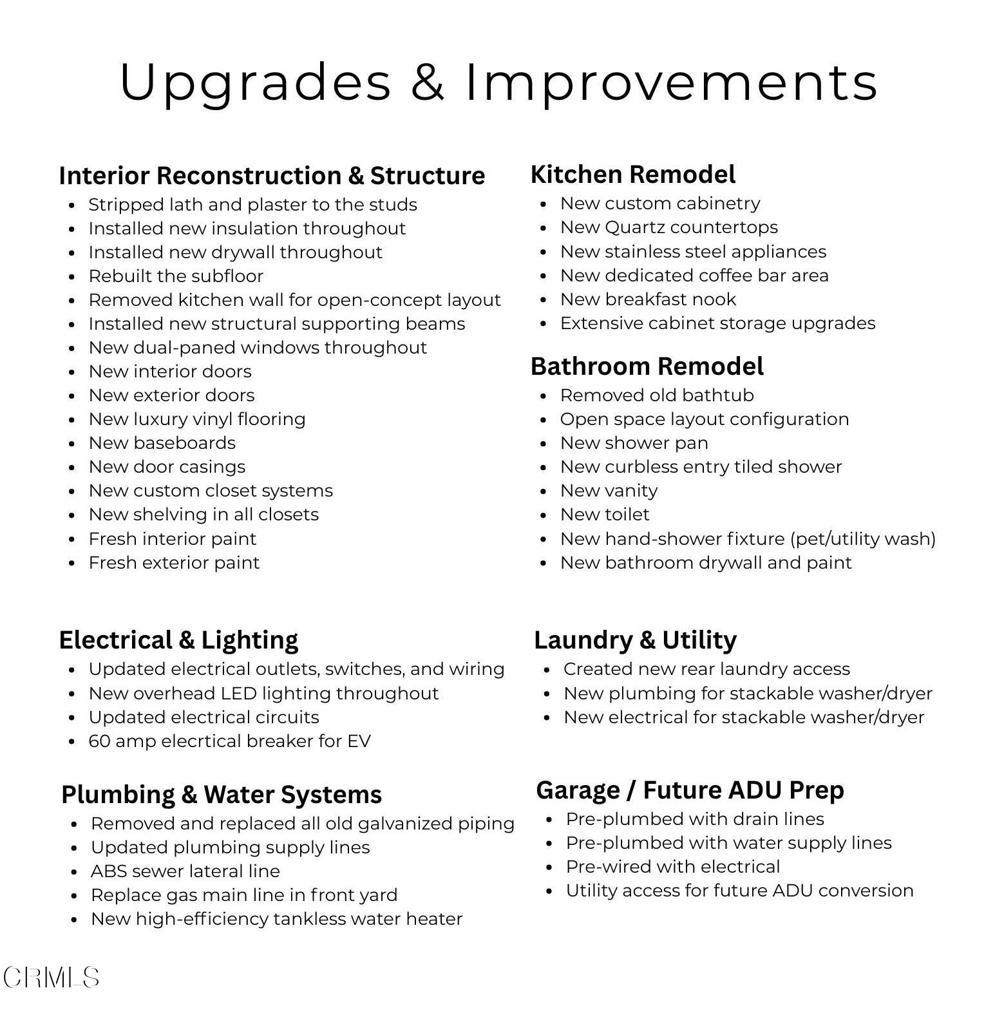 Over $100,000 in upgrades to this home!Welcome to this beautifully remodeled 2-bedroom, 1-bath bungalow offering 700 sq/ft of optimized living space. No expense was spared in the thoughtful renovation--every detail has been designed for both style and function. The remodel includes a fully updated kitchen with new cabinets, countertops, backsplash, and appliances, along with refreshed living and dining areas, a modern bathroom, laundry space, new windows, doors, flooring, recessed lighting, and a tankless water heater. The result is a bright, open home that lives larger than its footprint. Step outside and enjoy your private yard with two fruit-bearing trees--apple and pluot--perfect for summer picking. The spacious two-car garage was once a non-conforming living area; it has since been converted back to a garage, but the plumbing remains in the walls, providing an excellent opportunity for a future ADU conversion. This move-in ready home is perfect as a starter, a downsize option for empty nesters, or even a coastal getaway. Located just minutes from the beach, downtown, bike paths, and freeway access, it combines comfort, convenience, and lifestyle in one.