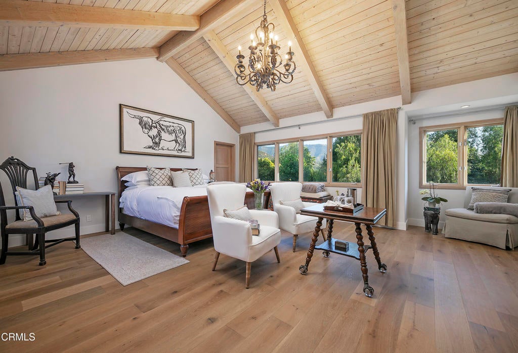 RemarksSpectacular 2024 remodel in prestigious Persimmon Hills Estate. A rare opportunity to acquire a gated 5.33-acre legacy property offering approximately 6,000 sq ft of refined living space, complemented by an exceptional 1,800 sq ft six-car garage and workshop. Tucked discreetly within the heart of downtown Ojai, the estate delivers an increasingly rare combination of true privacy, established landscaping, and immediate access to town amenities.The residence presents a timeless modern farmhouse aesthetic, thoughtfully curated by leading designers with an emphasis on enduring materials and architectural integrity. Features include Italian appliances, Brazilian stone, buck-skinned wood accents, marble slab showers, marble and travertine flooring, Douglas fir beams and detailing, cedar siding, and a distinctive all-copper roof, a testament to both craftsmanship and longevity. Smart-home technology, gated entry, and a secure private community provide comfort, discretion, and peace of mind.Designed to accommodate both elegant entertaining and everyday retreat, the home offers two primary suites, four fireplaces, a library, media room, living and family rooms, a wine cellar with tasting room, and a dedicated massage room. The expansive garage and workshop allow flexibility for collectors, hobbies, or future adaptation.Completed in 2026, a separate guest quarters or artist studio is privately positioned to capture elevated views, offering a secluded retreat ideal for guests, creative pursuits, or quiet work.The park-like grounds are supported by a private well and include a pool and spa, bocce court, volleyball court, multiple gathering areas and gazebos, a family orchard, and a nine-hole putting green with driving range. Extensive custom windows integrate the landscape into daily living, framing sweeping views of Topa Topa and Black Mountain.A rare and enduring Ojai estate offering privacy, craftsmanship, and location without compromise.