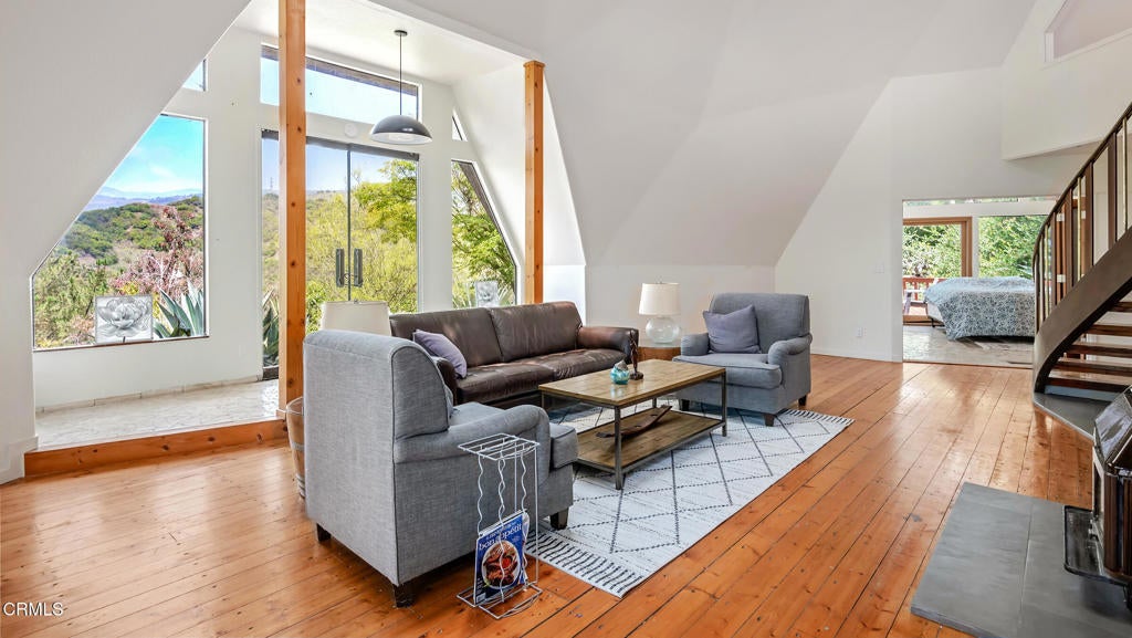 Price lowered by over $650,000! This 10 acre home is at the end of a scenic, private road and is surrounded by a wonderful, tranquil nature vibe. Great location about 10 minutes to Highway 101/Carpinteria and the beach, or 15 minutes to all the shops and restaurants of Ojai. One of the best values for a ranch you will be able to find. Features 2 to 3 acres of highly usable land near the base, perfect for horses, farming, or possibly a guest home and other structures. The existing house is a large, highly-artistic and spacious geodesic home. It features ~30 foot high ceilings in the main room, 4 bedrooms, 2 bathrooms, and an open floor plan. Relax on large wooden decks while enjoying the songs of birds and the rustle of wind high in the trees. Several hundred avocado, olive, and other specialty trees are planted throughout the property. Room for much more. Review the unbranded slideshow/virtual tour link for additional photos and information. This unique home is a bargain ranch with a soothing vibe that will put your soul at ease.