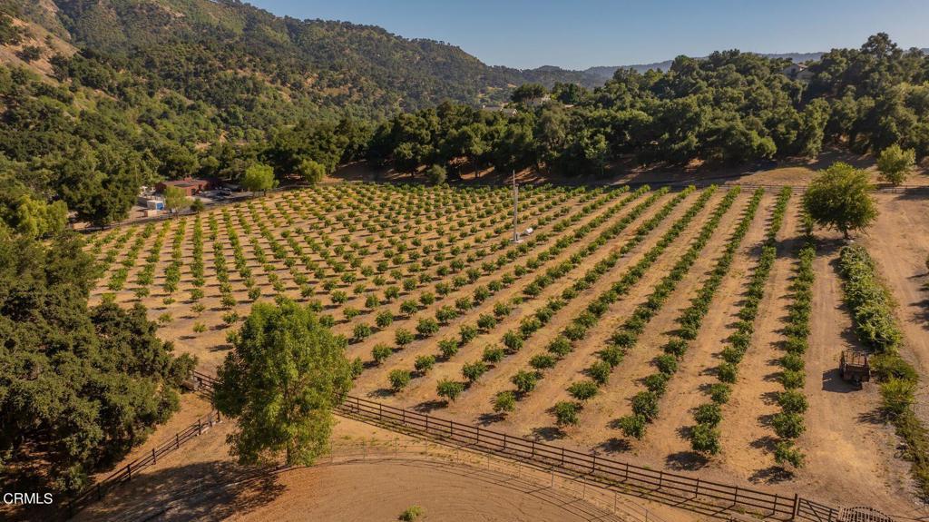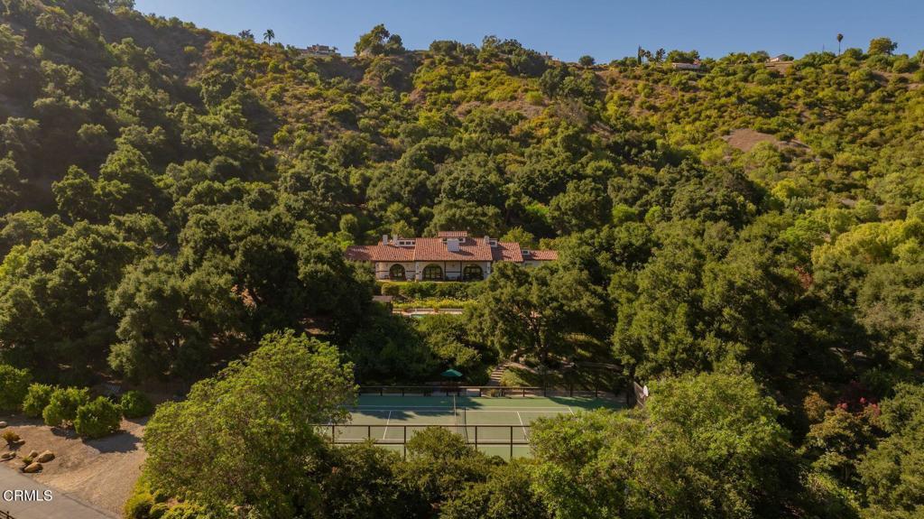 Oak Knoll Ranch presents a rare opportunity to own a quintessential and estate level Ojai compound - set across 22 acres spanning two legal parcels. Framed by sweeping mountain vistas and surrounded by remarkable privacy, this estate captures the natural beauty and peaceful character that defines Ojai living. Beyond the welcoming courtyard entry, the residence opens to dramatic vaulted ceilings with exposed beams, creating a warm yet expansive atmosphere. The thoughtfully designed floor plan includes four spacious bedroom suites, offering both comfort and privacy for residents and guests alike. The property is designed as a true compound, featuring a detached guest suite, a separate garage and utility structure, and dedicated ranch foreman's quarters adding additional flexibility. One can build another estate level home and guest house on the 2nd parcel, currently planted with lemons and other variety fruit trees being fed by a private well.The park like outdoor setting includes amenities that enhance both leisure and lifestyle. A pool terrace that canopies above the tennis court area, provides recreation against a backdrop of mountain views. For equestrian pursuits, the ranch includes a four-stall barn with tack room, arena, and hot walker, offering well-equipped facilities for horses or other livestock. Oak Knoll Ranch embodies the space, versatility, and understated elegance that define an exceptional Ojai estate -- a private retreat designed for both refined living and relaxed country enjoyment.