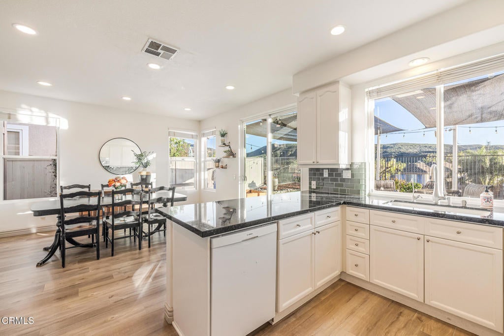 Welcome to 3118 Foxtail Court, a beautifully updated home situated on a cul-de-sac in the gated Lang Ranch area of Eagleridge in Thousand Oaks conveniently located near local schools and Oakbrook Regional Park.From the moment you enter, you'll appreciate the fresh feel created by new flooring and trim work throughout the downstairs and a flexible floor plan designed to adapt to your lifestyle. The versatile front living space functions seamlessly as a playroom, secondary living area, or formal dining room offering both comfort and practicality.The kitchen features updated lighting, creating a bright and inviting space for daily living and entertaining. Adjacent, the laundry room offers newer cabinetry for added storage and organization.Upstairs you'll find two secondary bedrooms with ceiling fans, a bathroom with tub/shower combo and adjustable shower head, additional linen storage, and an oversized primary bedroom. The primary suite includes two walk-in closets, an extended seating area or office space, and sweeping hillside views ideal for enjoying sunsets or seasonal fireworks displays. The attached bathroom has been thoughtfully remodeled with granite countertops, a sleek European glass shower enclosure, and modern lighting.Step outside to a serene backyard retreat with scenic openness and exceptional usability. Mature landscaping creates a private setting highlighted by established fruit trees orange, two lemon (traditional and Meyer), two apple (Gala and Fuji), nectarine, and dwarf lemon. A raised garden box is ready for vegetables or herbs, and a storage shed provides added functionality. The yard offers beautiful views while maintaining usable outdoor living space for entertaining, relaxing, or recreation.Major system upgrades include a new water heater (2022), furnace and AC compressor in excellent condition, upgraded irrigation components with durable brass fittings, and app-controlled irrigation management located in the garage.Additional highlights include built-in garage shelving, flush-mounted TV electronics, a whole house fan for energy-efficient cooling, and upgraded lighting throughout.The community offers an inviting pool, hot tub, and fence that was also recently done in 2023.Thoughtfully maintained and tastefully upgraded, this property blends comfort, functionality, and location offering an exceptional opportunity in Thousand Oaks.