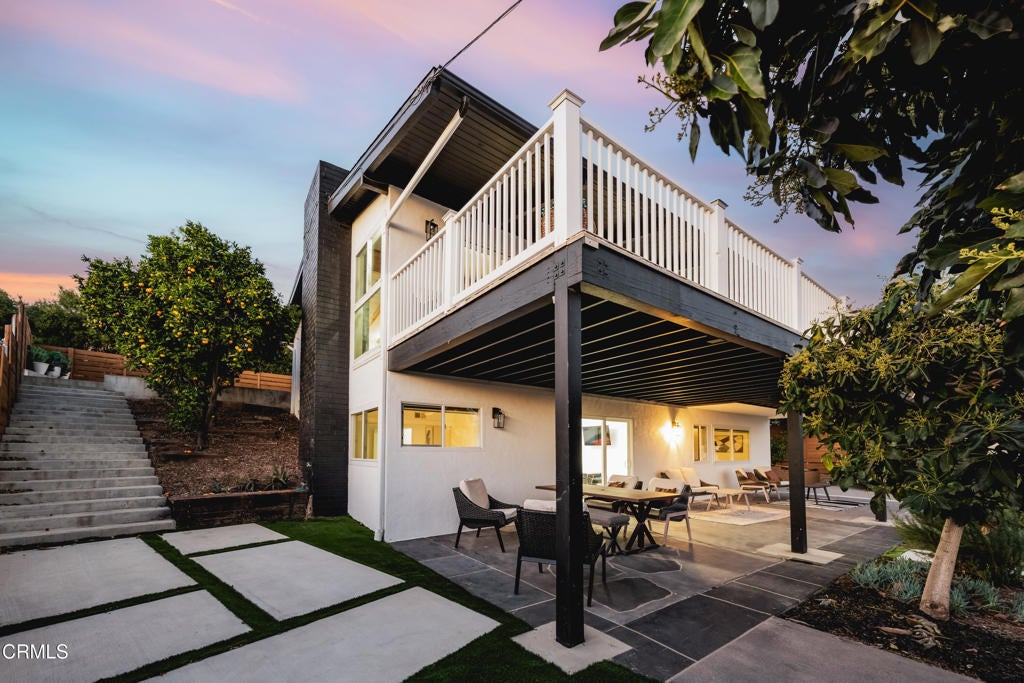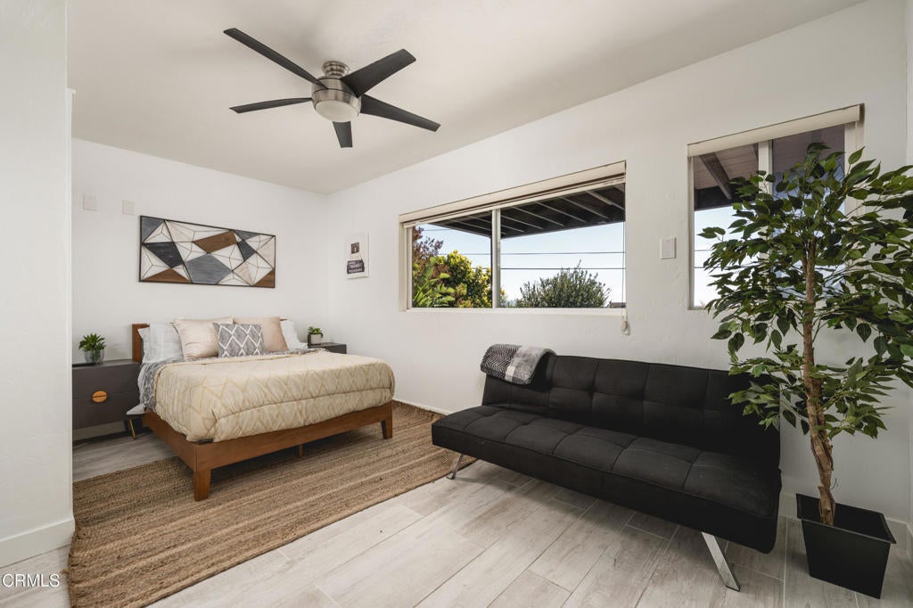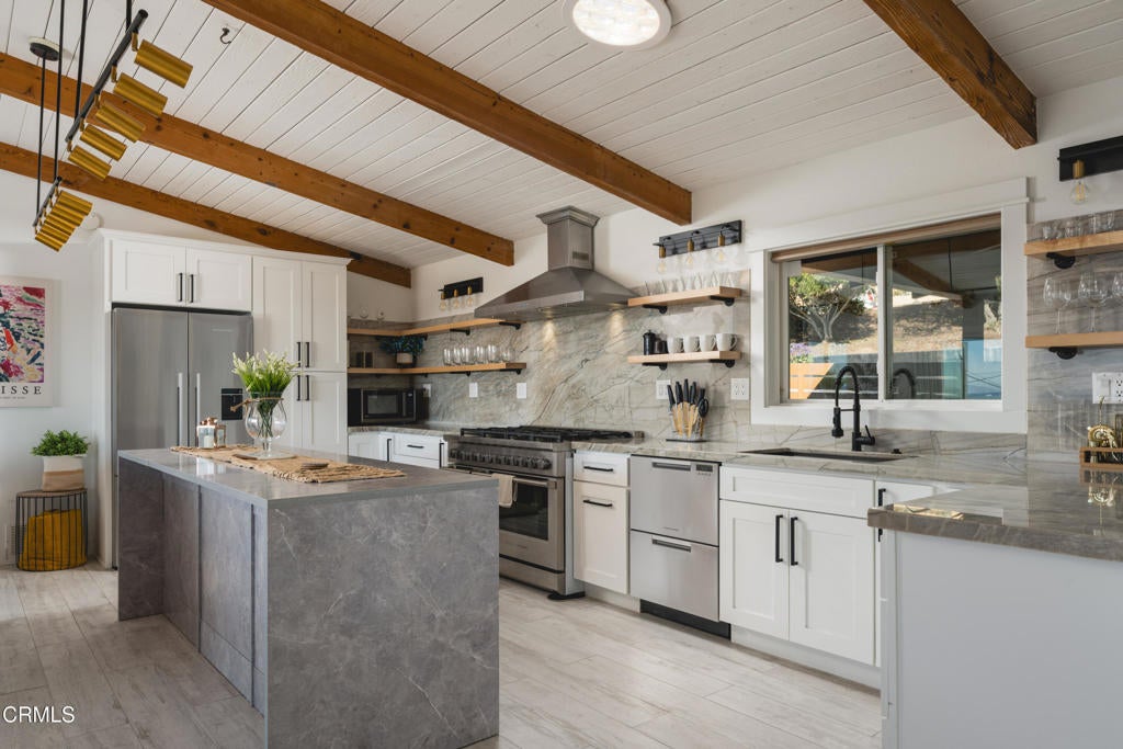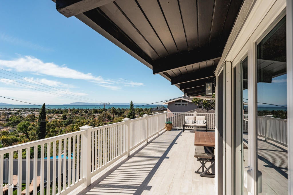 Casa Serena is a refined coastal retreat perched along a quiet one-way hillside street, offering sweeping ocean, Channel Islands, and city light views. Thoughtfully designed for indoor-outdoor living, the home features 3 bedrooms and 3 bathrooms and lives primarily as a single-level residence, with the primary suite, kitchen, living areas, and laundry all located on the main entry level.The light-filled great room showcases vaulted ceilings, wall-to-wall bi-fold glass doors, and a custom floor-to-ceiling quartzite fireplace, opening to an expansive view deck ideal for entertaining and everyday living. The chef's kitchen is finished with imported Brazilian quartzite countertops and backsplash, along with premium Fisher & Paykel appliances.The primary suite serves as a private sanctuary with ocean and city views, a balcony, and a spa-inspired bath featuring heated porcelain floors, dual quartzite vanities, a freestanding soaking tub, and a walk-in shower.The lower level offers two additional bedrooms with coastal views, a full bathroom, and a flexible den ideal for guests, media, or creative space.Outdoors, enjoy a heated pool and spa in a private, resort-like setting surrounded by mature landscaping. Additional features include Tesla SolarCity solar systems, a two-car garage with EV charger, and a generous private driveway.A rare blend of elevation, privacy, and effortless living just minutes from Ventura's beaches, harbor, and downtown.