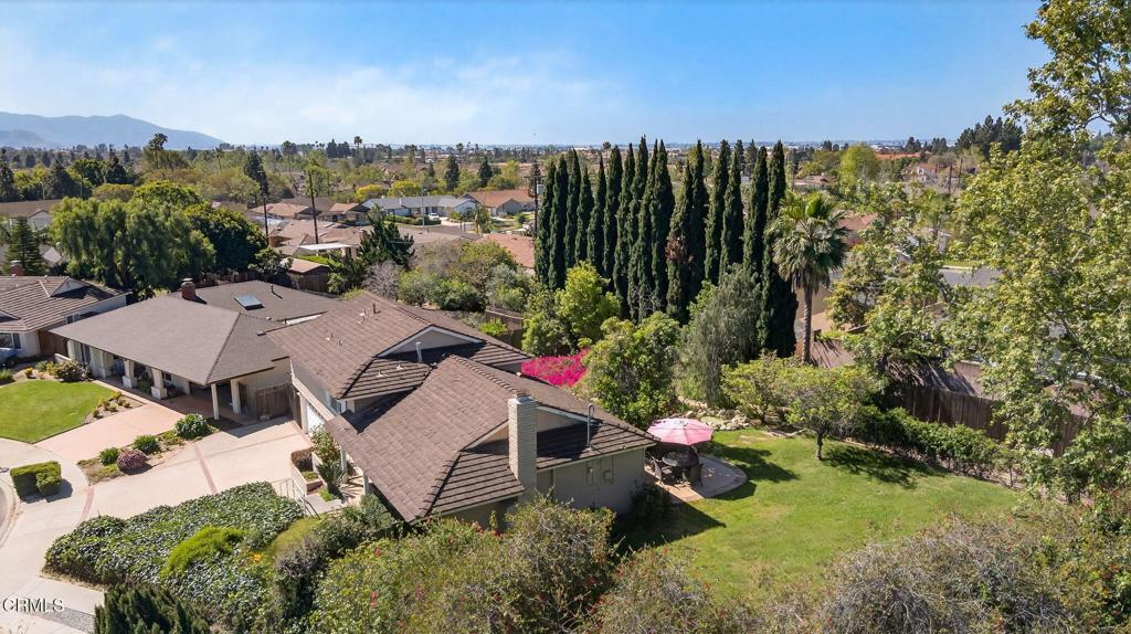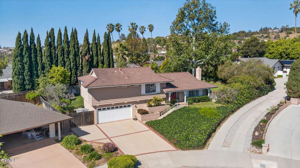Welcome to this a spacious tri level home tucked away on a quiet cul de sac in the desirable Camarillo Heights neighborhood. Set on an expansive 13,068 square foot lot, this inviting property offers a rare combination of space, privacy, and beautiful outdoor living. With 1,911 square feet of living space, the home features 4 bedrooms and 2.5 bathrooms and a flexible layout designed for comfortable living and entertaining. The tri level floor plan provides wonderful separation of spaces and offers exciting possibilities. The lower level presents an opportunity to create a separate living area, guest suite, or extended family space depending on your needs. The main living areas offer a welcoming feel with natural light, slider to backyard and a fireplace. Enjoy views of the backyard from the kitchen while preparing meals. Additional amenities include air conditioning and a two car garage with direct access to the home.Retreat to the backyard, a truly special setting that highlights the size and beauty of the lot. Flagstone patios and hardscape provide a wonderful place for outdoor dining, relaxing with friends, or enjoying warm Camarillo evenings surrounded by mature landscaping, and established gardens. A tranquil cascading pond adds a peaceful focal point within the yard, while fruit trees and open lawn areas offer endless opportunities to make the property your own. Located in the sought after neighborhood, the home enjoys a quiet residential setting while still being close to local parks, shopping, dining, and schools.