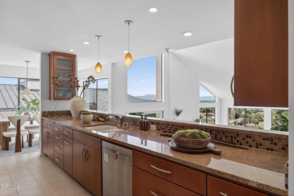 Perched in a phenomenal hillside neighborhood, this bright and beloved home offers style, comfort, and beautiful coastal views. Featuring approximately 3,300 square feet of living space, the residence showcases a hip, open floor plan with soaring ceilings, creating an airy, modern feel filled with natural light. The home offers 4 bedrooms, with one currently used as a home office, providing flexibility for today's lifestyle. The spacious primary suite serves as a peaceful retreat, complete with a private terrace showcasing ocean and island views and a generous ensuite bath. At the heart of the home is a sleek, updated kitchen overlooking the spacious family room, thoughtfully designed for both everyday living and effortless entertaining. The living and dining rooms enjoy coastal views, creating a beautiful setting for relaxing or hosting guests. Complementing the home are a balcony off one of the bedrooms, a terrace off the family room, and beautiful gated terrace gardens that offer inviting outdoor spaces. Two fireplaces add warmth and character to the living areas. Thoughtfully updated and move-in ready, this sunny, happy home is filled with charm and personality and ready for its next chapter. Welcome Home!