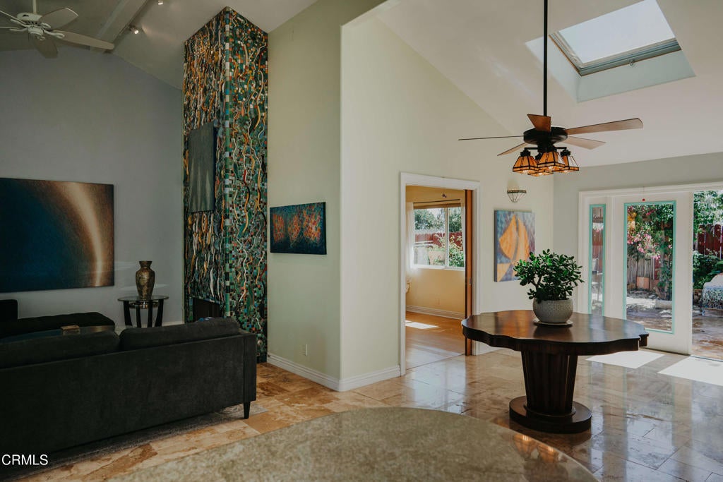 Truly one of a kind ARTISTIC GEM to call home.Priceless Value!Must be seen!Nestled in the beautiful City of Ventura, this artistic masterpiece is as beautiful as it is livable.Originally built in 1977, thoughtfully taken down to the studs by a prior owner & rebuilt new construction in 2005 as their dream home.Seller, is a well-known coastal artist who has lovingly put his artistic touches on this beautiful home over the last decade.He designed & made all of the hand-crafted & hand-placed tile throughout the interior & exterior.All of the tile was hand-formed, hand-fired & hand-glazed one at a time by the artist.Bringing in the pinnacle of the artists expression of tasteful creativity upon the canvas of an already high-quality home, he: tastefully & spectacularly adorned the 2-sided fireplace; added a beautiful backyard flowing bench; created a great room exterior front eave uniquely tiled as a classic beach awning; designed a custom mailbox with tiled address numbers; flowed his tile work into the kitchen backsplash & into the Master shower; he even made custom front yard pavers by repurposing Ojai ice cream containers.Here & there he selectively included European plates he first collected in Hungary during his pre-teens.His other art installations can be found throughout Ventura County (The Collection; Community Memorial Hospital; Seaward Avenue at the beach), as well as Huntington Beach, Lawndale & El Monte.There is simply not another home like this one.This home must be personally viewed to fully experience the priceless beauty the artist has incorporated throughout.7314 Wallaby exudes elegance, defines 'Turnkey' & says 'WOW'.An entertainer's dream, there are ample conversation areas both inside & out.Vaulted ceilings, skylights & French doors (with interior levolor's) bring light & air into this open & cheerful space.Gleaming Travertine marble floors everywhere.Eco-friendly Bamboo floors in the three rooms.Solid wood kitchen cabinetry, granite countertops & marble-top island.Wine fridge.Highly upgraded bathrooms.Smooth stucco exterior with concrete S tile roofing.This is a 3 Bedroom home if the Den meets your needs as an additional bedroom.Outside, you step into the perfect California outdoor space, an entertainers dream with custom tile bench & covered outdoor dining area.Seller has enjoyed what he felt was a safe, quiet & friendly neighborhood, with a linear park nearby.A one-of-a-kind hidden gem!Hurry, there is only one!