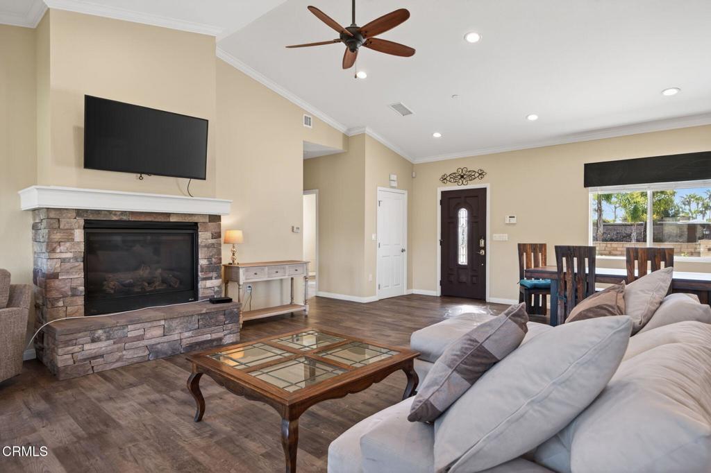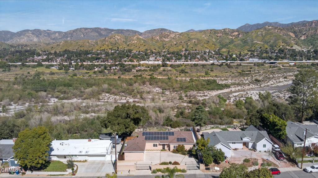 Nestled on a quiet cul-de-sac in one of the most desirable pockets of Shadow Hills, 10755 Wheatland Avenue offers a rare blend of tranquility, natural beauty, and thoughtful design. With limited street traffic, the setting is peaceful and private--interrupted only occasionally by the neighborhood's wandering peacocks.Framed by the stunning San Gabriel Mountains, this single-story home enjoys breathtaking sunrise and sunset views. Just below lies California's largest natural wash, a vibrant landscape alive with wildlife and endless opportunities for exploration. Designed with both comfort and function in mind, this newer-built home features soaring cathedral ceilings, a spacious great room with laminate flooring, recessed lighting, and a rustic fireplace that warmly anchors the living and dining areas. The gourmet kitchen flows seamlessly into the dining space, creating an inviting setting for everyday living and entertaining.The home offers two bedrooms plus a dedicated office that can easily serve as a third bedroom. The primary suite is a private retreat featuring a walk-in closet, an en-suite wet room, and direct access to the backyard where beautiful views await. The guest suite is equally well-appointed, complete with its own thoughtfully designed en-suite bath and private access to the rear yard. Additional highlights include a double attached garage, a circular driveway, paid-for solar, and a backup generator all enclosed in the security of electric gates - providing both convenience and peace of mind.