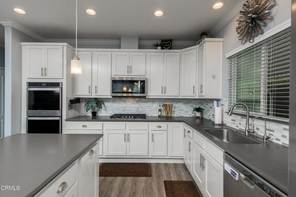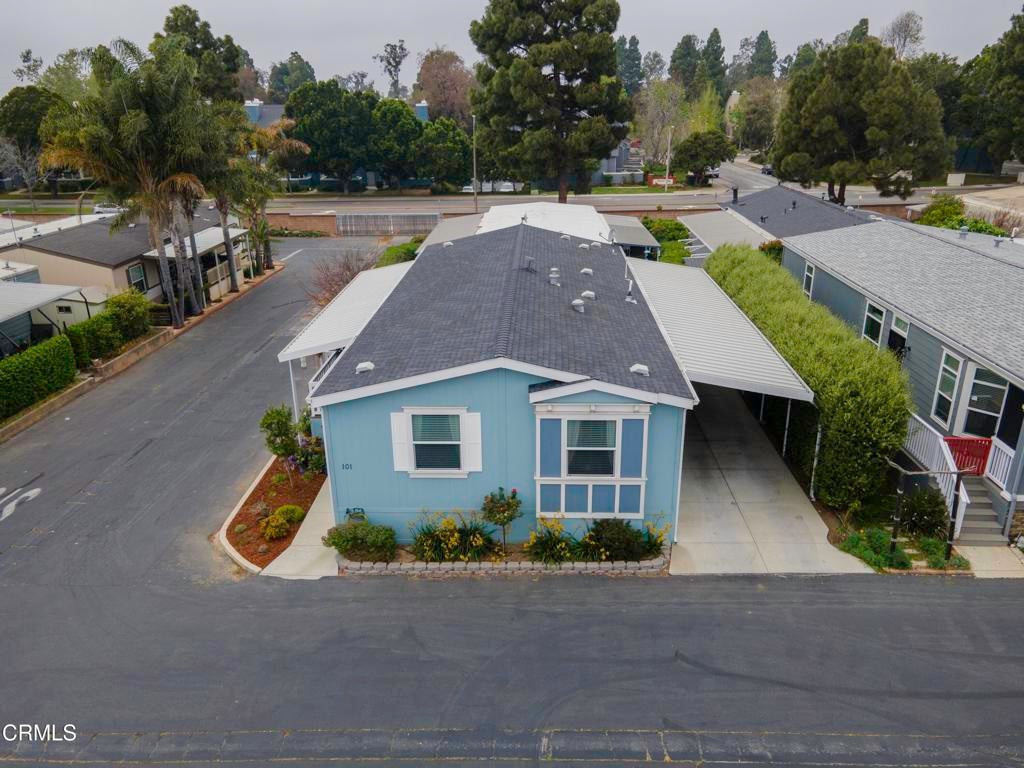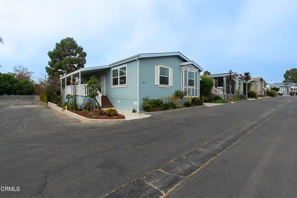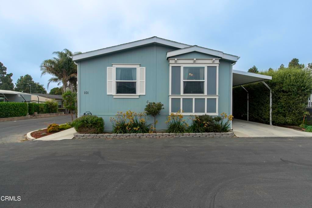 Beautiful, modern 2019-built manufactured home in Imperial Ventura Mobile Estates, conveniently located near the 101, 126 and Ventura Harbor. This well-maintained home features an open, airy floor plan with 9+ ft ceilings, recessed lighting and LVP flooring throughout. The spacious kitchen offers a large island with breakfast bar, double ovens, stainless appliances, tile backsplash and abundant cabinetry. The living and dining areas flow seamlessly, ideal for everyday living and entertaining. The home includes 3 bedrooms and 2 bathrooms, highlighted by a primary suite with dual vanities, walk-in closet and a large custom tiled walk-in shower. Additional features include a covered patio, two storage sheds and a 3-car carport. Community amenities include a pool, clubhouse and greenbelt areas.