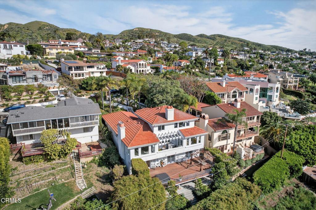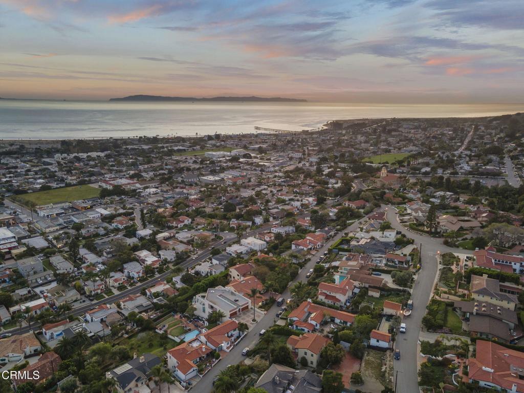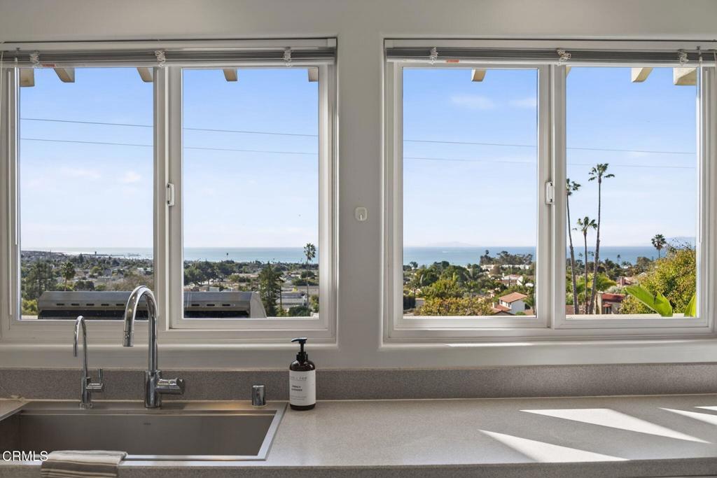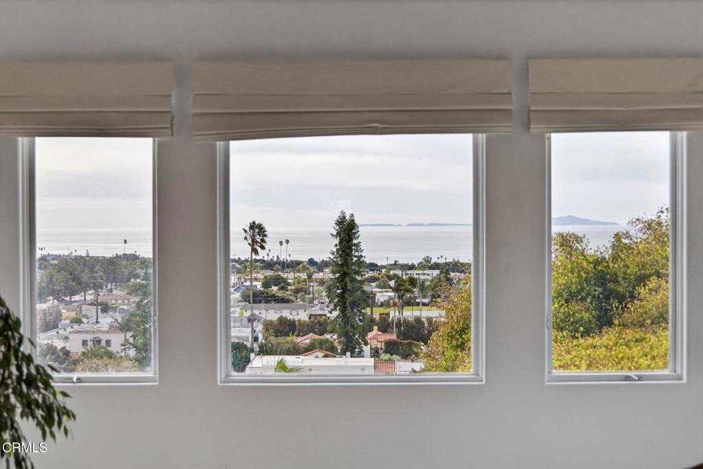 Unobstructed, south-facing ocean and island views take center stage in this Hobson Heights hillside retreat, where light, space, and coastal living come together effortlessly. This 4 bedroom, 3.5 bath home is located in one of Ventura's most sought-after hillside neighborhoods and offers a rare sense of calm and perspective, where mornings begin with soft coastal light and evenings unwind in pink sunsets over the Pacific. Designed with a modern Spanish influence, the approximately 4,100 sq ft residence is filled with natural light and oriented to embrace breathtaking views from nearly every room. The main level, easily accessible with just a single step, features ocean-view living and dining rooms with a fireplace, an open kitchen, and a balcony just off the main living spaces, perfect for morning coffee as the marine layer lifts or unwinding at sunset with the ocean stretched out before you. A bedroom and full bath on this level offer flexibility for guests, a home office, or multigenerational living. Upstairs, the private primary retreat captures sweeping views of the Pacific and Channel Islands, where you wake each morning to the horizon beyond. The spa-style bath places the soaking tub in the view, complemented by a fireplace and walk-in closet. On the lower level, two additional bedrooms, both with French doors, open to an expansive 1,000+ sq ft view deck, along with a spacious family room with bar, creating seamless indoor-outdoor living ideal for entertaining or relaxing. The 7,884 sq ft lot offers citrus trees, terraced landscaping, and a sense of privacy that is increasingly rare. Additional highlights include a 3 car garage, hardwired ethernet, smart home features, advanced security, and a 750 gallon rainwater system. Located in desirable Hobson Heights, known for its architectural charm, strong sense of community, and iconic hillside setting, this is one of Ventura's most coveted view neighborhoods, prized for its combination of character, location, and sweeping coastal vistas. The home is near beaches, C Street surf, downtown Ventura, Midtown shops and cafes, parks, schools, and the Ventura Hillside Preserve. The gentle chime of nearby church bells adds to the rhythm of daily life. This home was once owned by actors Rachel Ames and Barry Cahill. A rare opportunity to experience elevated coastal living.