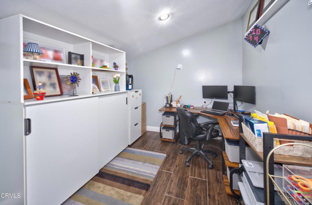 Welcome to this beautifully maintained and spacious home, thoughtfully designed for both comfort and functionality. Upon entry, you're greeted by a formal living room that flows seamlessly into a dedicated dining area, complete with a convenient coat closet. The main living areas showcase stylish tile wood-look flooring, while the inviting family room provides the perfect space for relaxing or entertaining. The kitchen offers durable tile flooring, ample workspace, and practical under-stair storage. The main level also features a versatile fourth bedroom currently used as an office, a full bathroom with a shower (ideal for guests or pool access), and an indoor laundry room with a sink for added convenience. Upstairs, the primary suite serves as a private retreat with carpeting, a spacious walk-in closet, and an en-suite bathroom. Additional bedrooms are generously sized and share a full hallway bath. A previously open den has been enclosed to create a fifth bedroom, along with an additional bonus room--perfect for a playroom, gym, or media space. Step outside into your own private backyard oasis, designed for year-round enjoyment. The saltwater pool and spa, built in 2021, are both heatable and ideal for relaxing or entertaining. The yard also features a storage shed with extra space and private rear access. Additional highlights include plantation shutters installed in 2018, RV access, and a newly installed garage door and motor (Installed in 2025) with a backup battery for operation during power outages. Best of all--no HOA and no Mello-Roos!