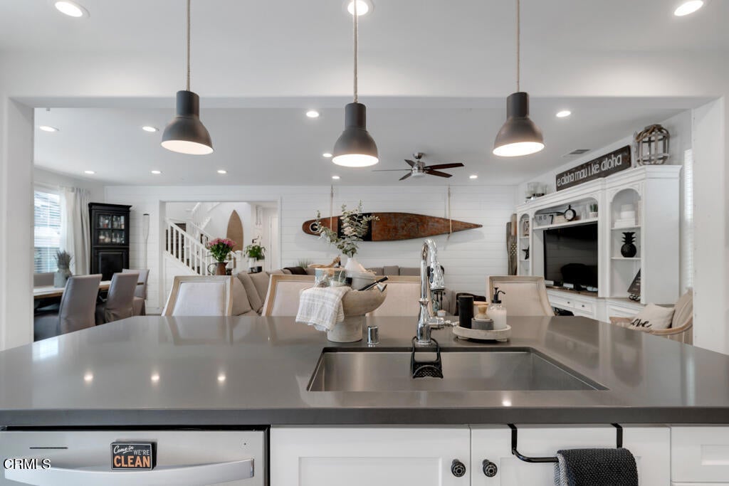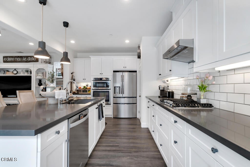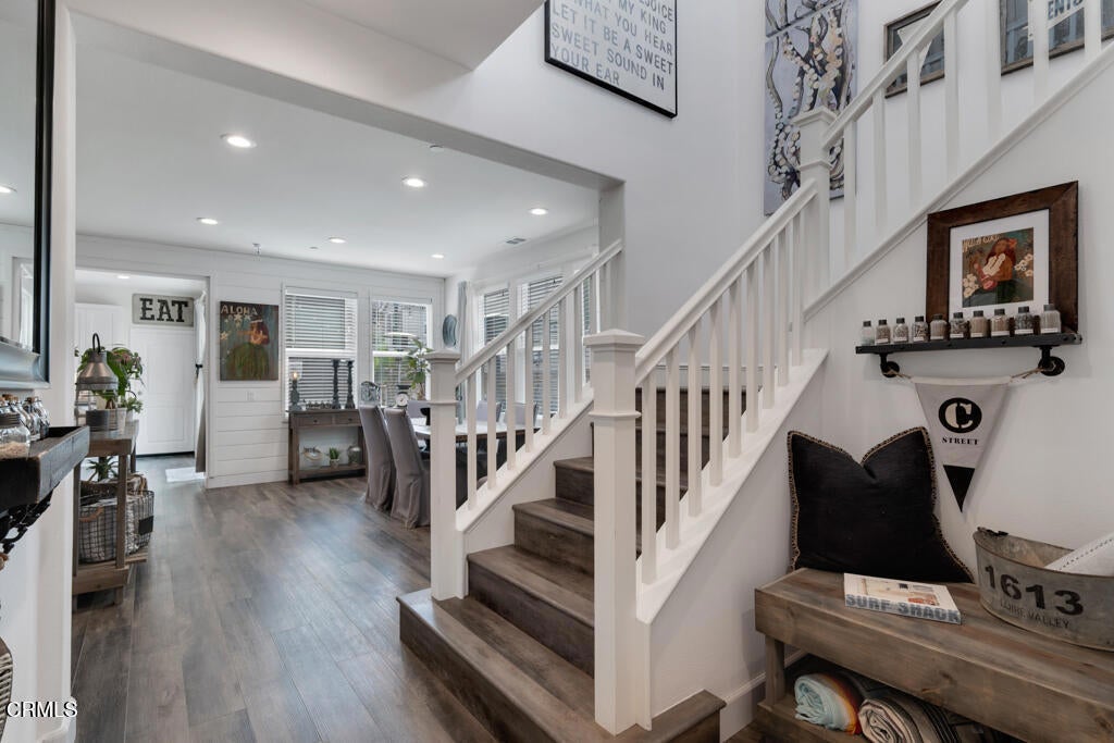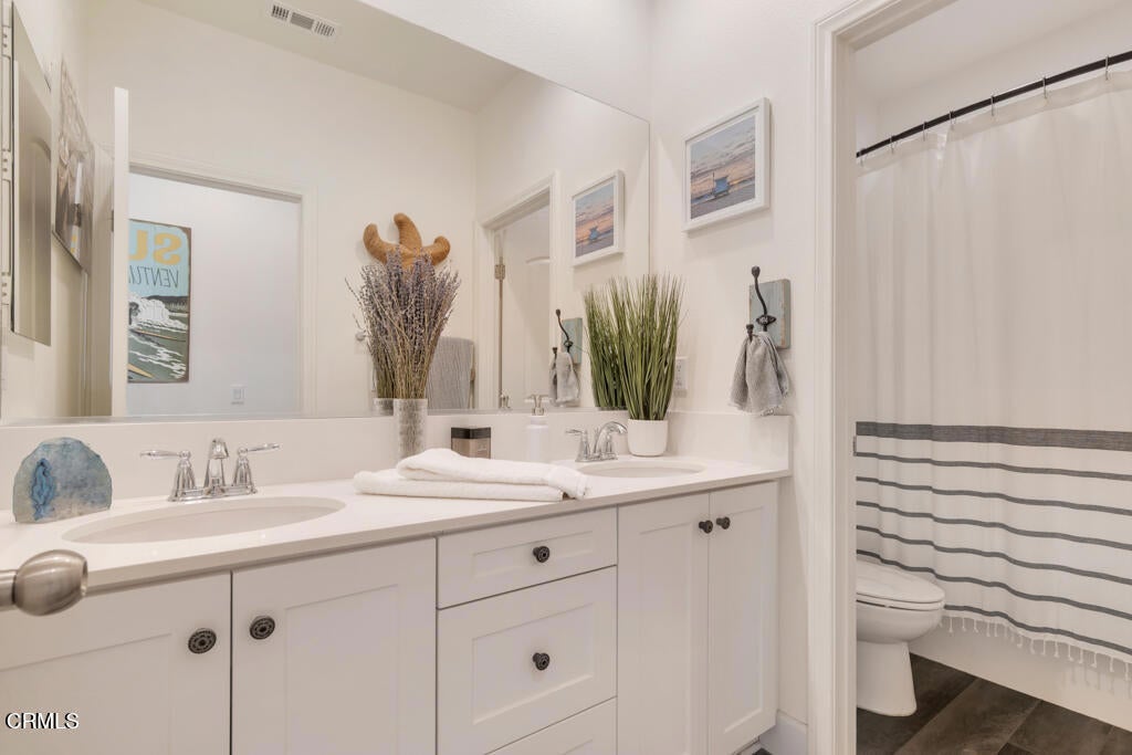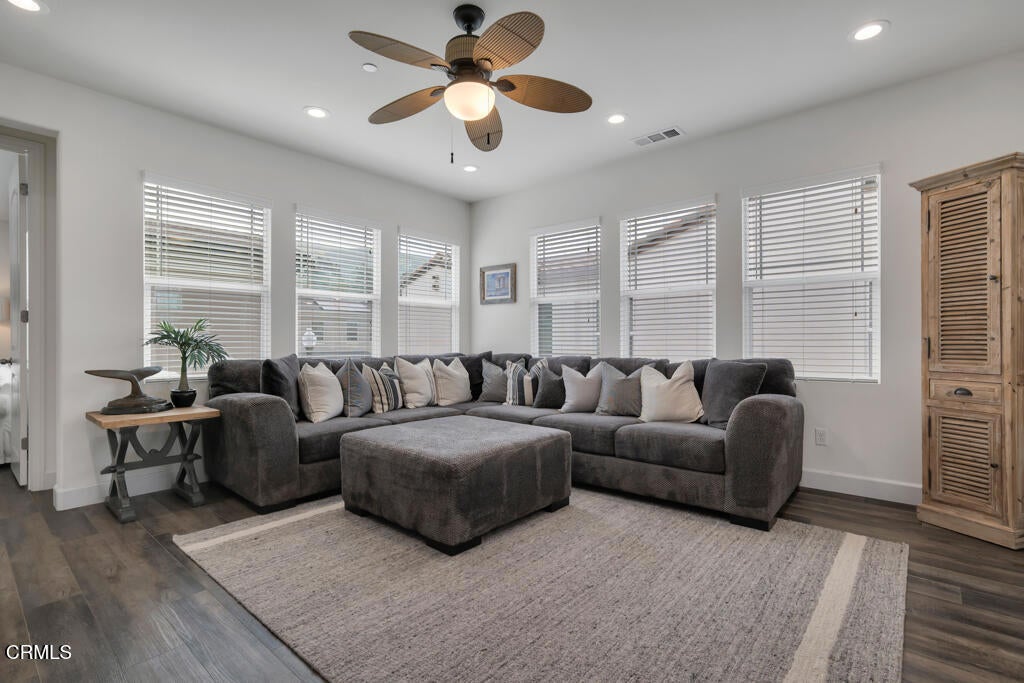 Some homes simply check the boxes. Others create a lifestyle. This Solana Heights home does both. Thoughtfully designed and tastefully furnished, it sits perfectly between the laid-back surf culture of Ventura's beaches and the scenic beauty of the Ojai mountains. Stepping onto the covered front porch feels warm and inviting. Inside, luxury vinyl flooring flows throughout - a clean, modern look while remaining durable for everyday living. At the heart of it all is the great room - w/ shiplap accent walls, it's a true gathering space designed for connection. The kitchen island, moody quartz counters, fun pendant lights, stainless steel appliances, and a crisp white subway tile backsplash bring together a sophisticated yet timeless kitchen design. The built-in oven, range top and hood, island sink, dishwasher and pantry make cooking feel effortless.Flexible spaces that adapt to your lifestyle include a bedroom and full bath w/ its own separate entrance and private gated side yard that can easily serve as a student studio or bachelor suite for potential rental income opportunity and a surprise bonus room w/ a lighted ceiling fan and sliding barn door offering additional space. Step outside to relaxed California living on a neutral paver patio w/ two pergolas and water feature. After a day at the beach, rinse off in the heated outdoor shower. The loft offers a moment to pause and catch a peek-a-boo view of the island and ocean and an ideal spot for relaxing in the evening or a play area for little ones while laundry runs in the nearby laundry room. The primary suite invites you to slow down -whether that means sinking into the soaking tub, enjoying the walk-in shower or taking in the mountain views. It's a space designed to recharge.Other features include a large walk-in closet in the master, built-ins for surfboards, tankless water heater, water softener, storage, community dog park, playground, picnic areas and easy access to downtown and bike paths leading to the beach and the Ojai Valley. Spend the morning surfing, the afternoon riding bikes through the preserve, and the evening relaxing on your festively lit patio or entertaining friends and family.This isn't just a home - it's Ventura living at its best. Tastefully furnished, it's ready for you to begin enjoying the lifestyle immediately.