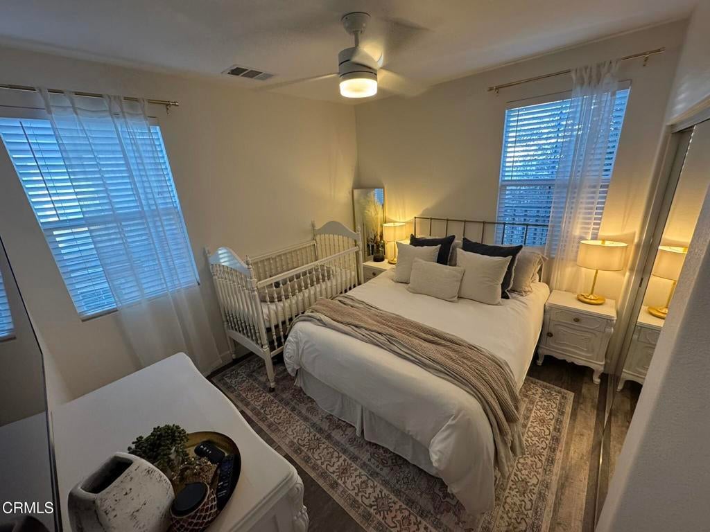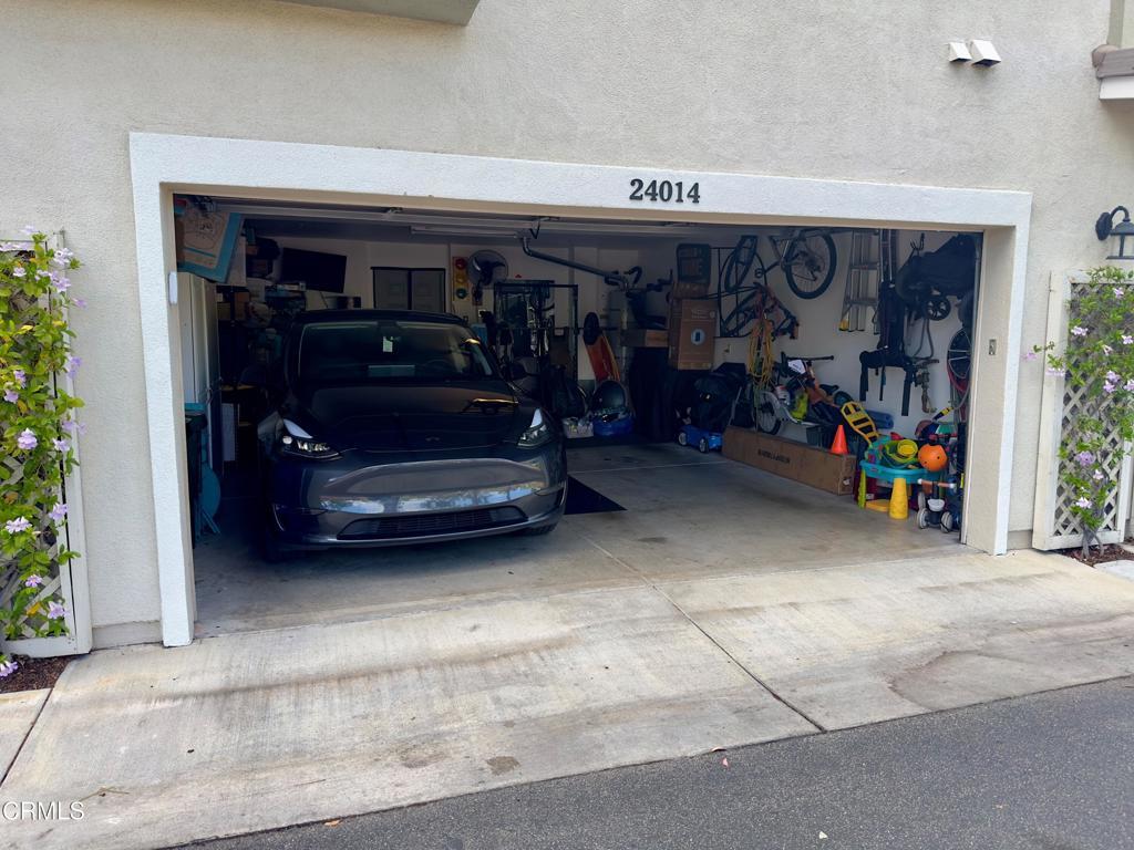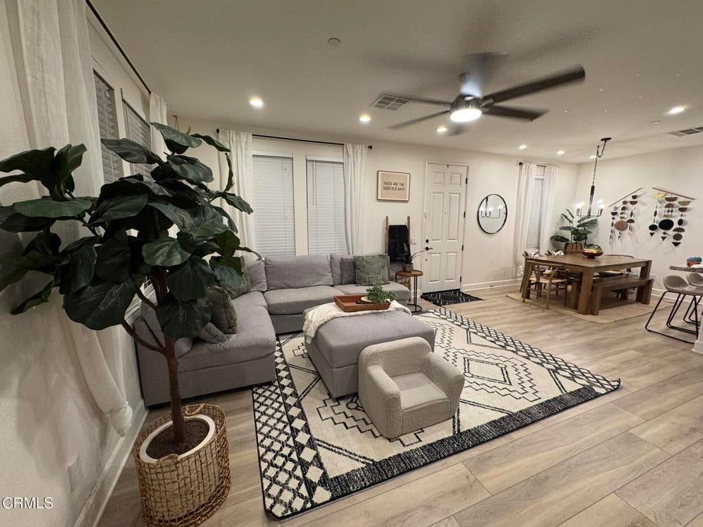 Make this beautifully maintained 3-bedroom, 2.5-bath condo--offering 1,420 square feet--your new home with NO MELLO ROOS. Thoughtfully updated throughout, the unit features a new air conditioning system (2025), new water heater (2025), a remodeled kitchen, Nest thermostat, updated lighting fixtures, as well as ceiling and bathroom fans.Step inside to an inviting open floor plan showcasing recessed lighting, laminate flooring, and a stunning custom-built entertainment center that immediately draws your eye. This standout feature includes a sleek mounted TV area framed by a modern geometric accent wall, a built-in electric fireplace, and stylish floating shelves--perfect for displaying for, photos, or additional storage while adding warmth and ambiance to the space.The adjacent dining area offers plenty of room for a full-size table, while the remodeled kitchen boasts granite countertops, a tile backsplash, stainless steel appliances, and a countertop bar for additional seating--ideal for entertaining. A nearby storage closet has been upgraded with abundant shelving, providing excellent pantry overflow and organization.The main-level bathroom features a vanity and bold black-and-white linen wallpaper, adding a touch of personality. You'll also find a convenient laundry room with storage cabinets and extra shelving.Upstairs, all three bedrooms provide comfortable living space. The spacious primary suite includes a stylish accent wall with a custom maple wood shelf--perfect for showcasing art or personal touches. The en-suite bathroom offers a soaking tub, separate shower, dual-sink vanity, and a toilet with bidet. Two additional bedrooms share a full bathroom; each includes mirrored closet doors, and one features an added accent wall.Completing the home is an oversized two-car garage with ample room for vehicles plus additional space currently used as a gym. Two white storage cabinets in the garage are also included.Front door features a Ring Camera Doorbell and kitchen includes a Reverse Osmosis System. Owner and listing agent are related.