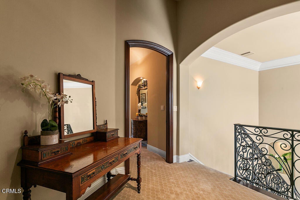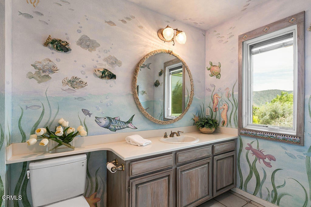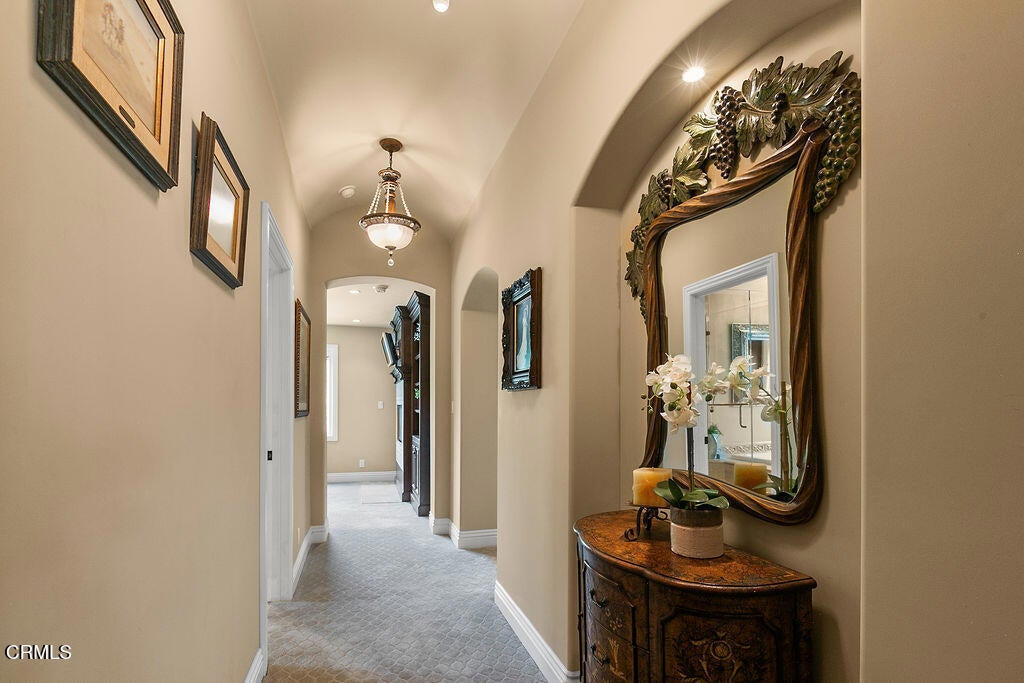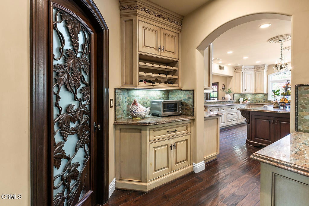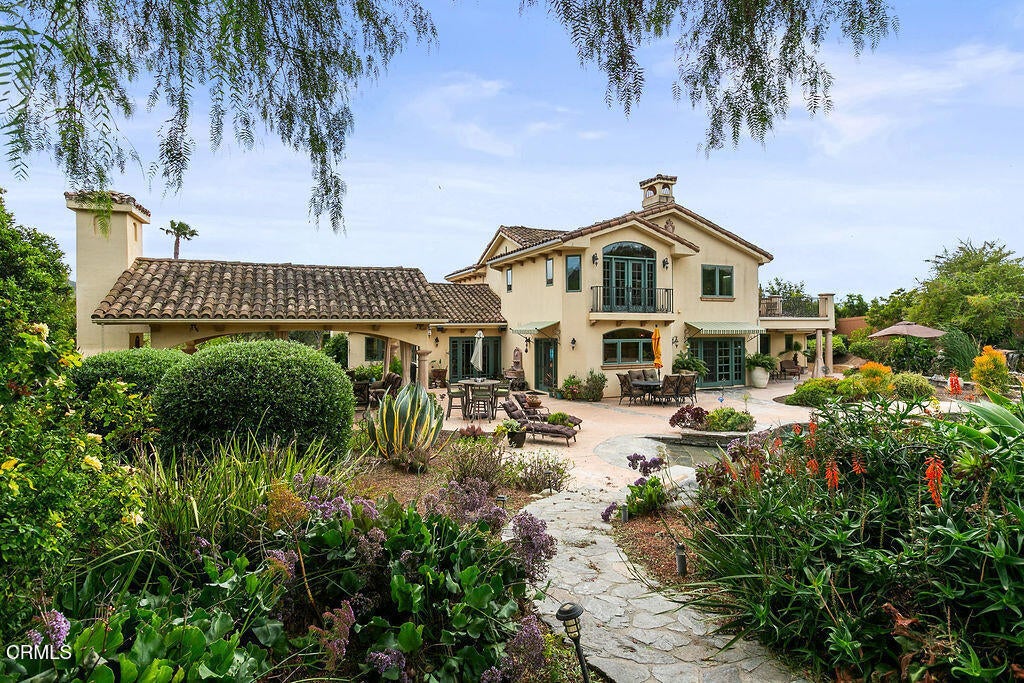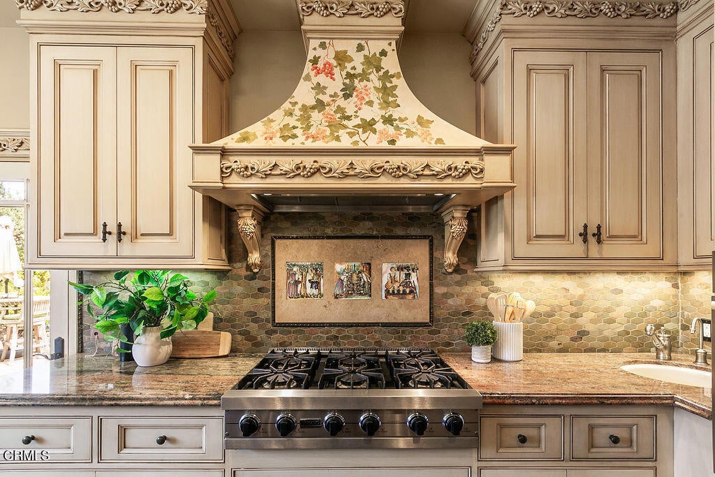 Rancho Las Brisas Estate Private Vineyard, Orchard & Resort Living in Santa Rosa Valley.Tucked behind gates of an intimate 25-home enclave of long-standing residents, this extraordinary estate offers a rare sense of community, privacy,& tranquility.Set on a secluded flag lot, a cobblestone driveway lined with fruitless olive trees leads to a residence designed for seamless indoor-outdoor living.This French Mediterranean-inspired estate features 5 bedrooms and 4 bathrooms, offering timeless elegance paired with exceptional craftsmanship. Inside, rich walnut wood flooring, travertine with inlaid mosaic details, crown moldings, wainscoting, and custom millwork create a warm yet sophisticated environment. 3 fireplaces, solid wood doors, Pella windows & French doors w/built-in blinds. Designed for both everyday comfort & entertaining, the home includes expansive living and dining areas, a welcoming family room, and a game room with wet bar and refrigerator. Hidden rope lighting, architectural ceiling details, and custom finishes enhance the ambiance throughout. The gourmet kitchen is a true centerpiece, featuring double Miele ovens, Sub-Zero refrigerator/freezer, 2 dishwashers, trash compactor, granite countertops, & oversized island w/ abundant storage & prep space. Butler's pantry w/beverage refrigerator, pullout storage, wine racks, along with dedicated wine room w/custom wine box wall, make this home ideal for entertaining. The primary suite is a luxurious retreat, complete w/ double-sided fireplace shared with a sitting room, domed ceilings, French doors opening to a private balcony. The spa-like bath includes a Jacuzzi tub, stone countertops, and refined lighting details.Resort-style setting. The grounds feature a sparkling pool, spa, and tranquil koi pond, surrounded by mature, drought-tolerant landscaping. Multiple outdoor living areas include covered patio and a stunning cabana with cast-concrete architectural elements, gas fireplace, and hookups for TV/audio.Fully equipped outdoor kitchen incl a stunning exposed wood beam ceiling, gas grill, wood-burning BBQs, & refrigerator.Adding to the property's uniqueness is a flourishing orchard with avocados, citrus, macadamia nuts, cherimoya, &additional fruit trees, along with established vineyard producing its first vintage, featuring 70 Cabernet Sauvignon vines and 4 Merlot vines, offering rare opportunity to enjoy a true farm-to-table and vineyard lifestyle.