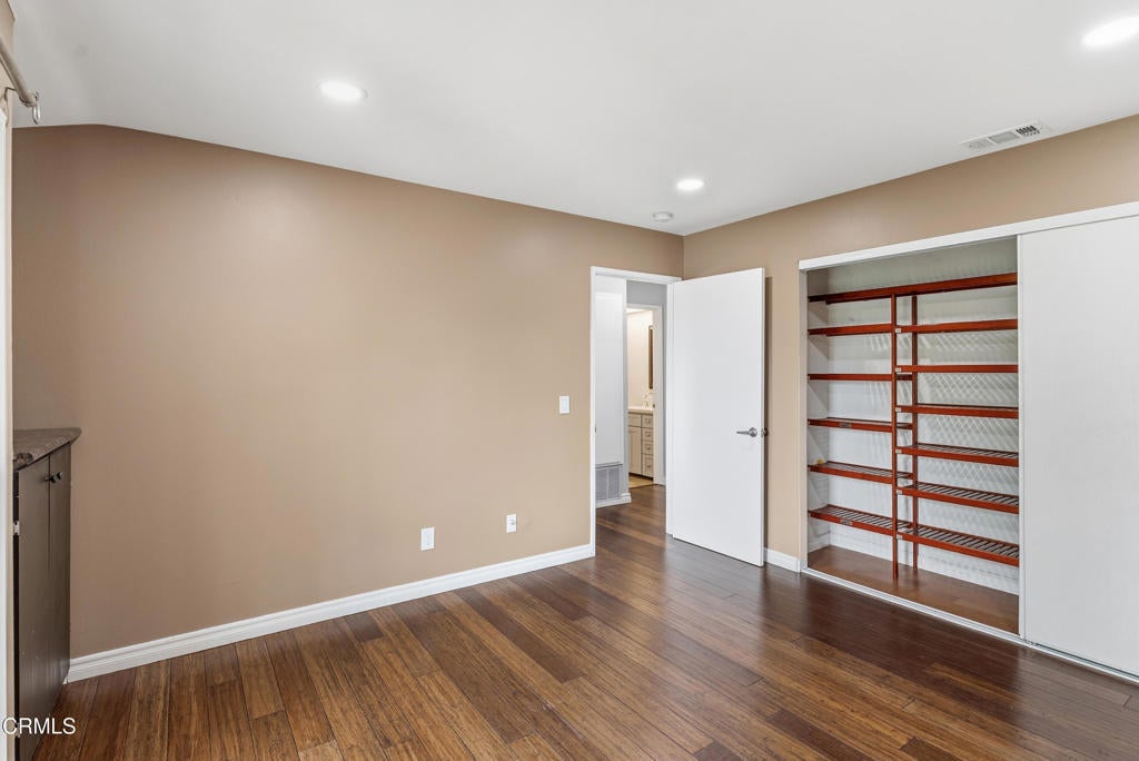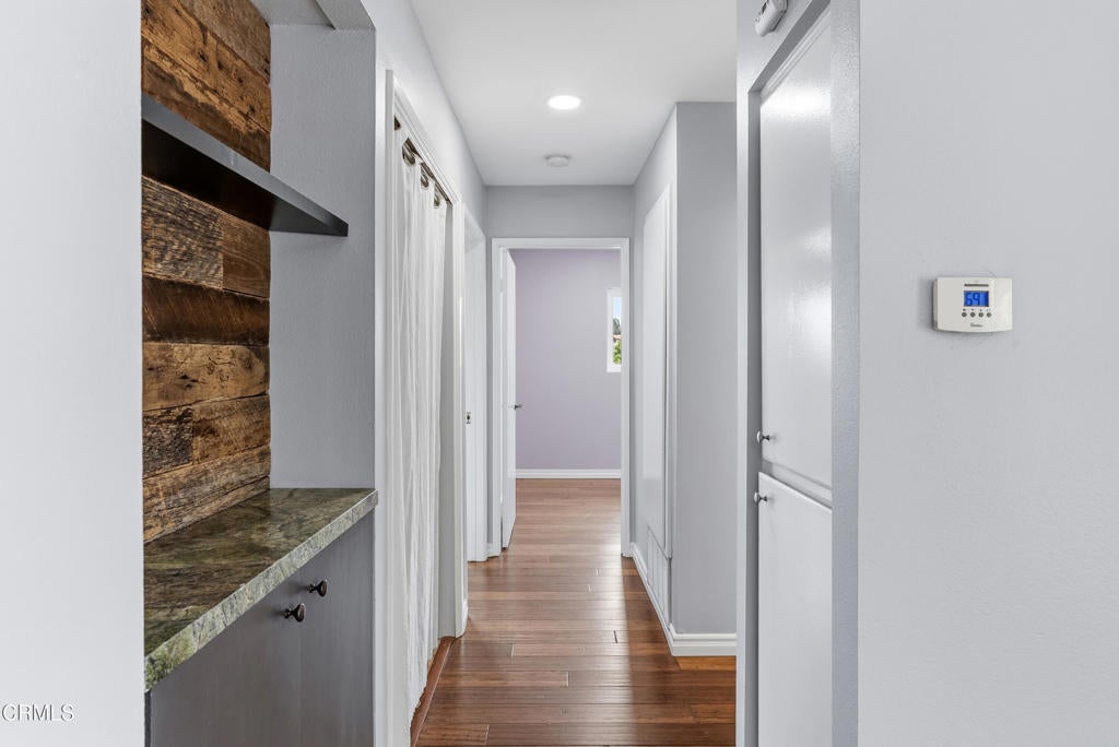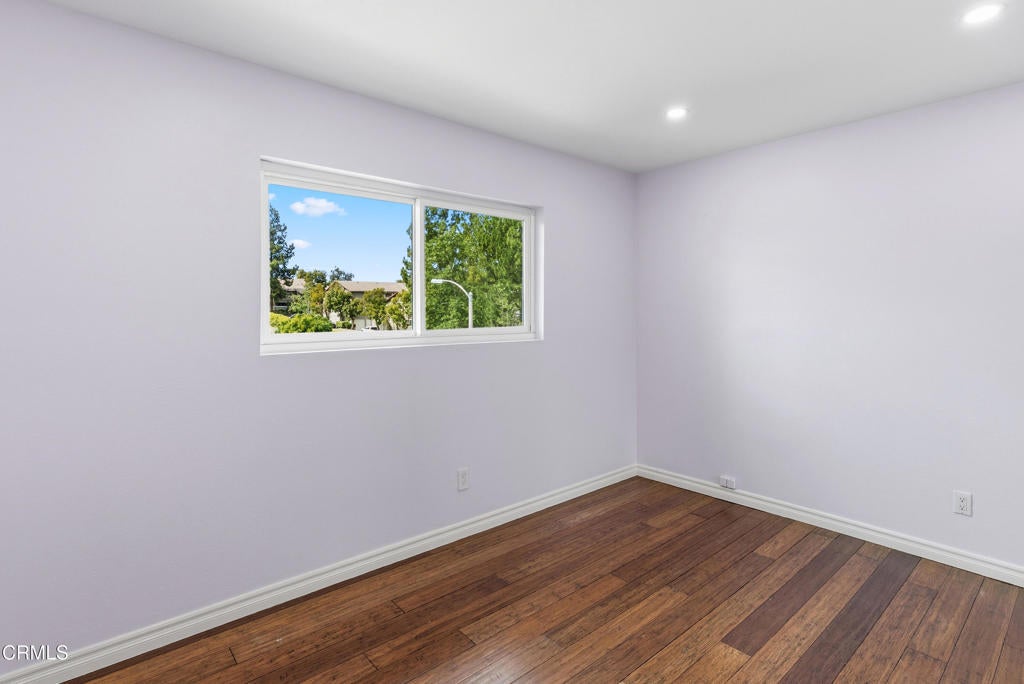 This tucked away upper-level condo in downtown Thousand Oaks offers a functional layout, spacious interiors, and privacy. The open-concept living and dining area features wide plank wood flooring, neutral tones, and sliding glass doors that lead to a private balcony, ideal for morning coffee or evening unwinding.The kitchen is bright and practical with ample cabinetry, granite countertops, and a skylight that brings in natural light throughout the day. Adjacent dining space connects seamlessly to the living area, creating an easy flow for everyday living or entertaining.Both bedrooms are generously sized with large closets, while the primary suite offers balcony views and added storage. The bathroom has been updated with clean, modern finishes for a fresh, move-in ready feel.Additional highlights include interior laundry area, recessed lighting, multiple storage options throughout and TWO assigned parking spaces. Located just minutes from shopping, dining, parks, and top-rated schools, this is an excellent opportunity for first-time buyers, or anyone looking for low-maintenance living in a central Thousand Oaks location.