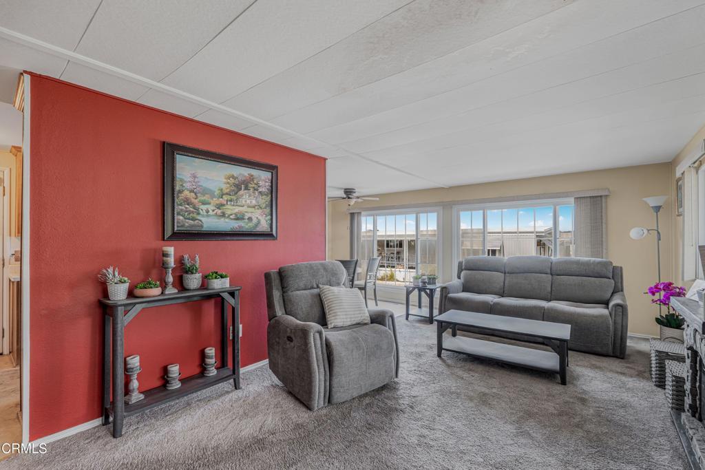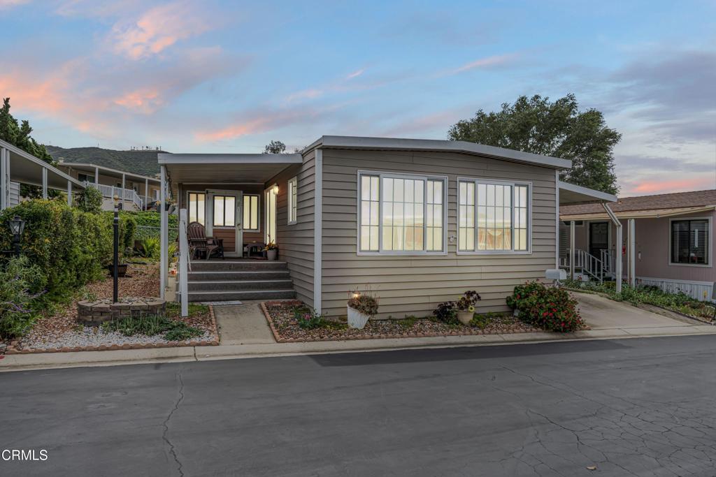 Welcome to this beautifully 2 bedroom, 2 bath home in the desirable Ventu Estates 55+ mobile home community. The spacious primary suite offers an oversized bedroom, a walk-in closet, and a tastefully remodeled bath featuring dual sinks, lighted cabinets, and a large mirrored vanity with built-in lighting.A generous attached sunroom, which can be used as a reading retreat, exercise space, and additional storage, adds even more versatility beyond the listed square footage. It is accessible from both the primary suite and the front porch.The extended width carport provides parking for up to three vehicles. Major improvements completed within the last 10 years include the roof, siding, kitchen, double pane windows, door, and a water heater.Ideally located just minutes from the freeway, shopping, and the Stagecoach Museum, this home offers comfort, convenience, and thoughtful upgrades throughout.