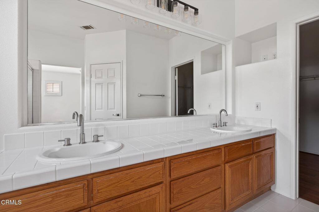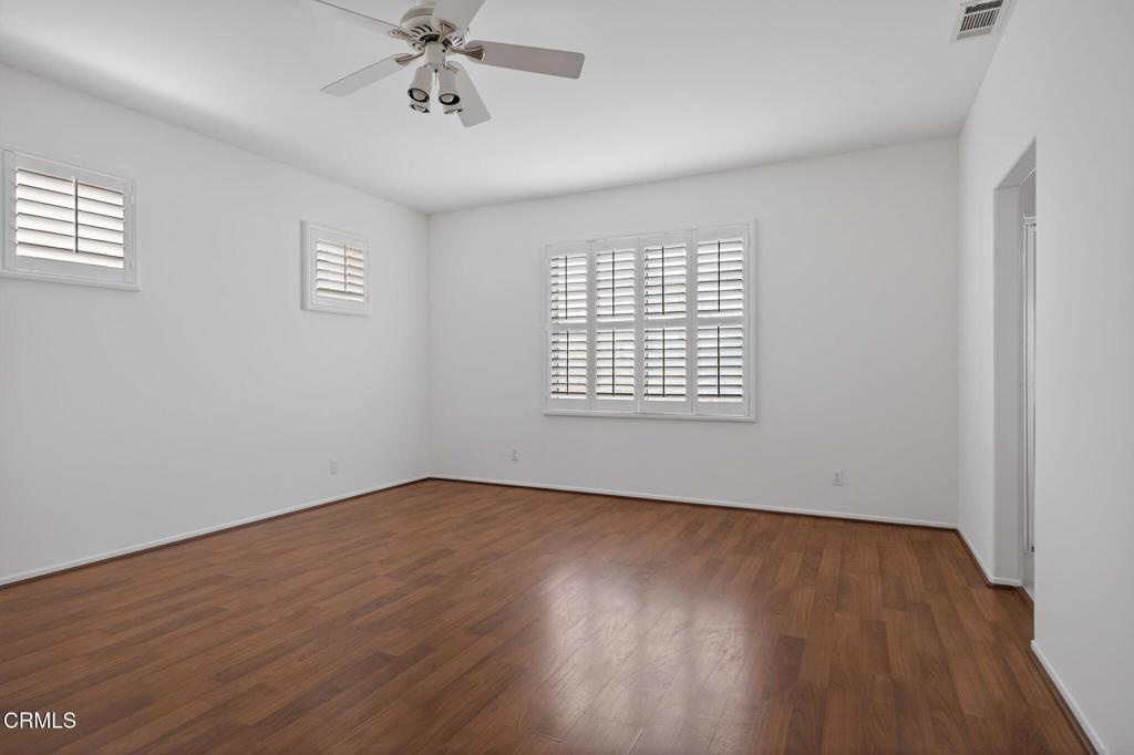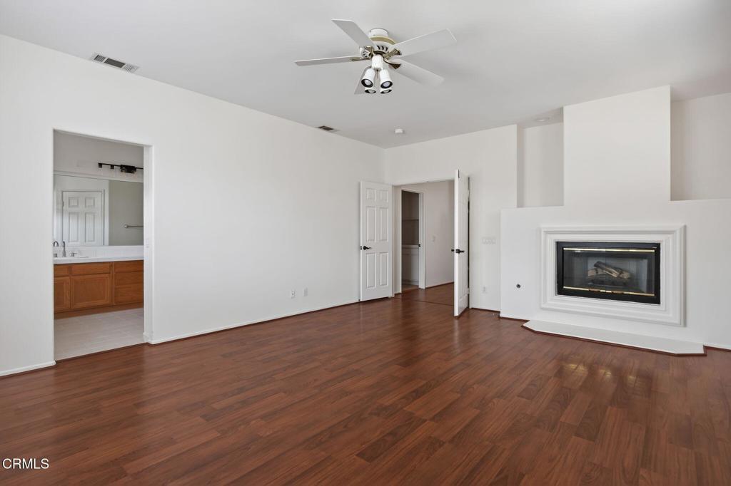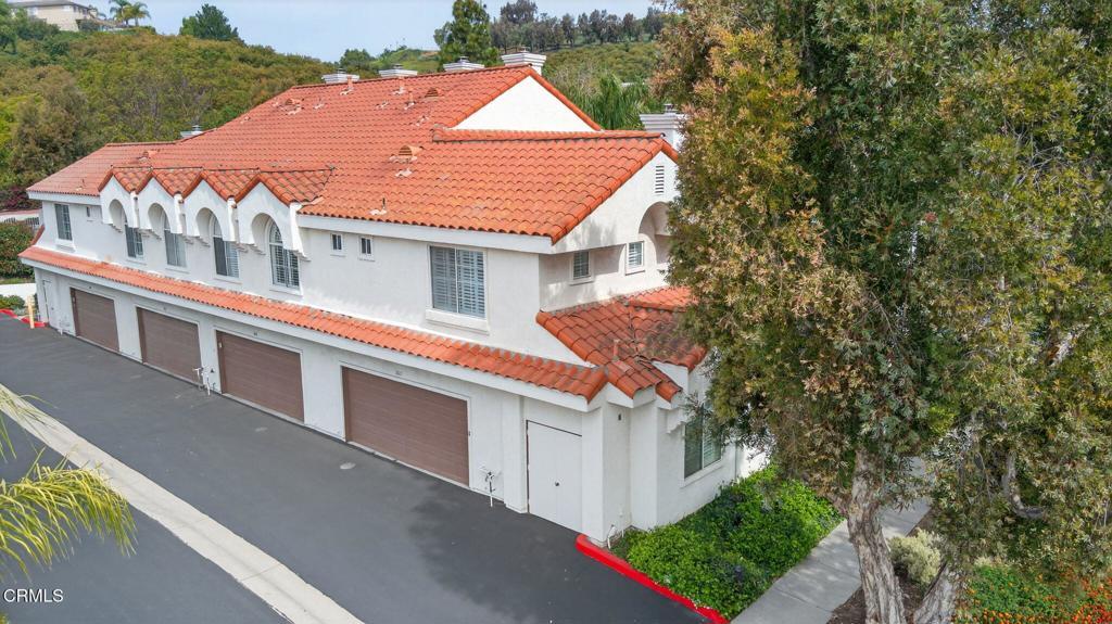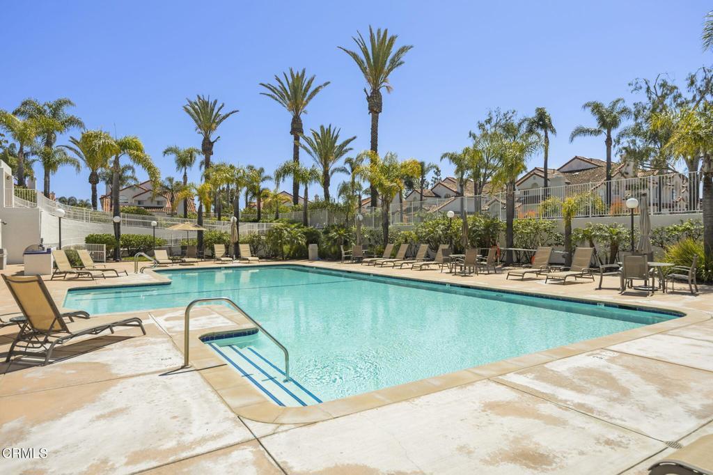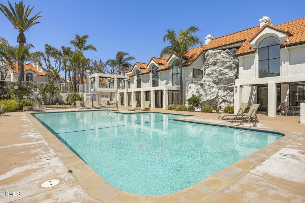 Welcome to Palm Colony, one of Camarillo's most desirable gated communities, offering a vibrant lifestyle and outstanding amenities. This prime corner location features 3 bedrooms, 3 bathrooms, and approximately 1,860 sq ft of well-designed living space.Step inside to vaulted ceilings and abundant natural light that instantly create the feel of a single-family home. The flexible floor plan includes a main-level bedroom or office with a full bathroom--ideal for guests or working from home.The updated kitchen showcases granite countertops and custom cabinetry, opening to the dining area and spacious living room with direct access to a private side patio--perfect for entertaining or relaxing. Tile flooring downstairs, wood-like vinyl upstairs, and custom wood shutters add style throughout.Upstairs, both bedrooms are private primary suites with en-suite bathrooms. The main suite offers a cozy fireplace and walk-in closet, creating a comfortable retreat. An upstairs laundry area adds everyday convenience.Enjoy a direct-access two-car garage, ample guest parking, gated entry, and beautifully maintained greenbelts.Palm Colony amenities include a pool, spa, tennis courts, racquetball, fitness center, and RV/boat parking--everything you need for an active lifestyle.Ideally located near the Camarillo Premium Outlets, dining, shopping, and easy access to the 101 Freeway.Some photos have been virtually staged to illustrate potential.