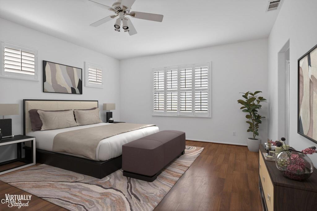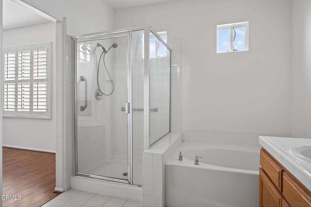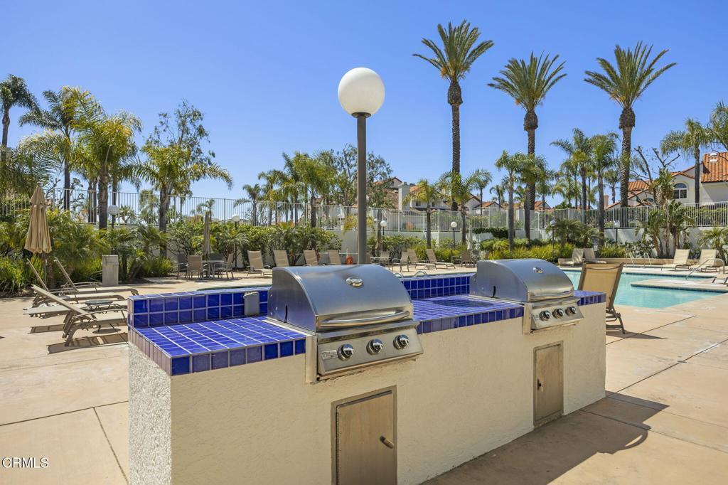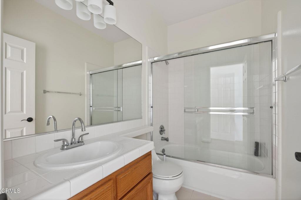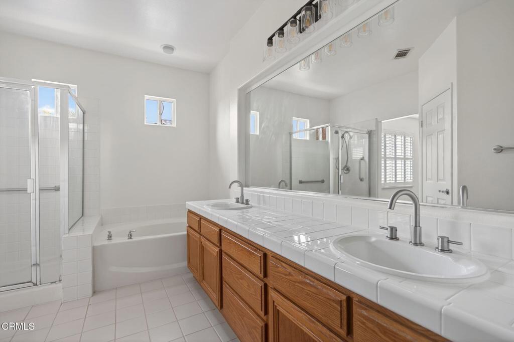 Welcome to Palm Colony, one of Camarillo's most desirable gated communities, offering a vibrant lifestyle and outstanding amenities. This prime corner location features 3 bedrooms, 3 bathrooms, and approximately 1,860 sq ft of well-designed living space.Step inside to vaulted ceilings and abundant natural light that instantly create the feel of a single-family home. The flexible floor plan includes a main-level bedroom or office with a full bathroom--ideal for guests or working from home.The updated kitchen showcases granite countertops and custom cabinetry, opening to the dining area and spacious living room with direct access to a private side patio--perfect for entertaining or relaxing. Tile flooring downstairs, wood-like vinyl upstairs, and custom wood shutters add style throughout.Upstairs, both bedrooms are private primary suites with en-suite bathrooms. The main suite offers a cozy fireplace and walk-in closet, creating a comfortable retreat. An upstairs laundry area adds everyday convenience.Enjoy a direct-access two-car garage, ample guest parking, gated entry, and beautifully maintained greenbelts.Palm Colony amenities include a pool, spa, tennis courts, racquetball, fitness center, and RV/boat parking--everything you need for an active lifestyle.Ideally located near the Camarillo Premium Outlets, dining, shopping, and easy access to the 101 Freeway.Some photos have been virtually staged to illustrate potential.