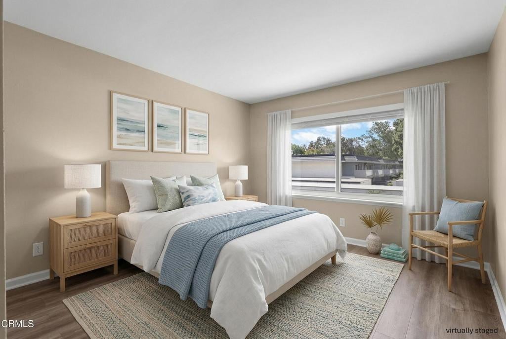 Step into this bright and inviting 2 bedroom, 1 bath penthouse level condo, offering privacy, natural light, and a fresh, modern feel throughout. The home has been thoughtfully updated with new luxury laminate flooring, fresh interior paint, and a refreshed kitchen and bathroom.The kitchen features new appliances, a stylish farmhouse sink, and updated finishes that make the space feel open and contemporary. The bathroom has also been upgraded, giving the home a cohesive, move in ready look.Enjoy the convenience of a shared garage with one dedicated parking space inside, plus one additional assigned space outside. The condo also offers on site laundry, making day to day living easy and efficient.Residents have access to two sparkling pools and a playground, creating a resort style environment perfect for relaxation or play. The location is ideal -- close to shopping, dining, and quick freeway access, making commuting and errands a breeze.This top floor condo blends comfort, updates, and convenience in a well-maintained community.Some pictures virtually staged