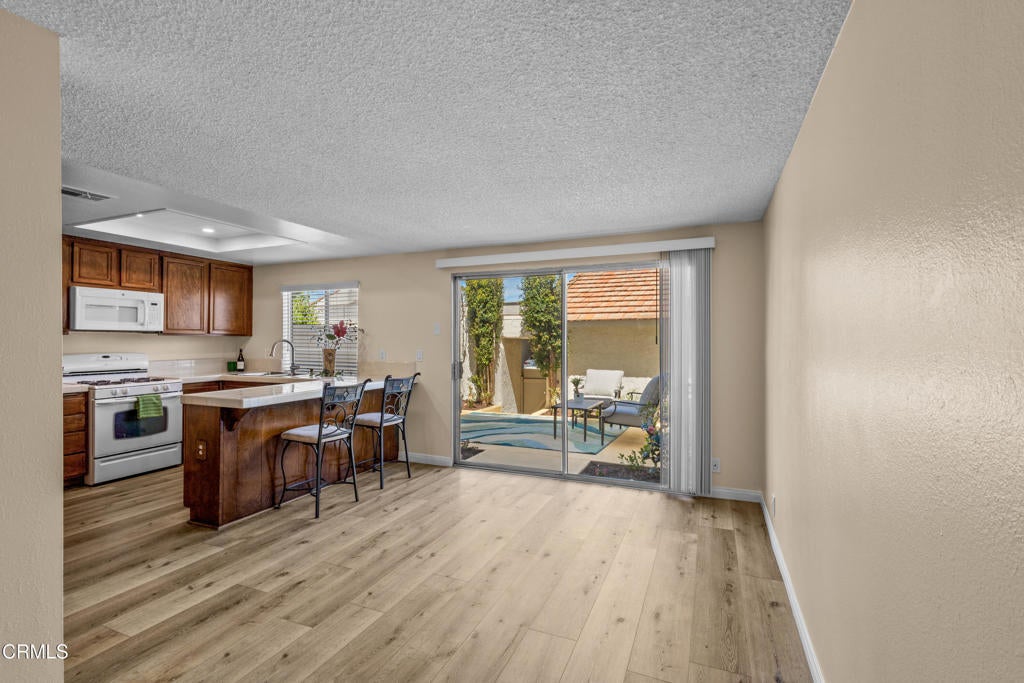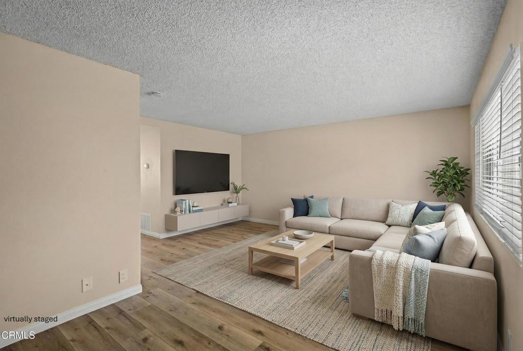 Welcome to Los Robles Townhomes, a highly sought after community tucked just behind the Los Robles Greens golf course pro shop. This is the largest model in the neighborhood, offering expanded living space and a rare blend of privacy, updates, and outdoor enjoyment.The home features 3 bedrooms and 2.5 bathrooms, with new flooring throughout and fresh interior paint that gives every room a bright, modern feel. The spacious living area opens to an enclosed courtyard, newly landscaped with a drip irrigation system--a perfect extension of your living space for relaxing or entertaining.Upstairs, the huge main suite includes an ensuite bathroom and generous closet space. Two additional bedrooms are well sized and share refreshed bathrooms. A dedicated laundry room provides extra storage options and everyday convenience.Parking is effortless with a 1 car garage with remote access, plus an adjacent covered carport that includes its own storage closet.The HOA offers two pools and a spa, all well maintained, giving the community a resort style feel. The location is ideal--close to shopping, hiking trails, and easy freeway access. VA buyers are welcome.Some pictures have been virtually staged.