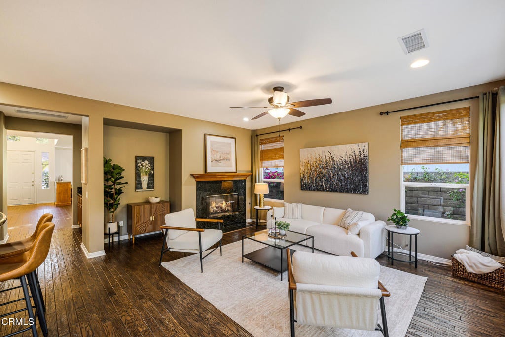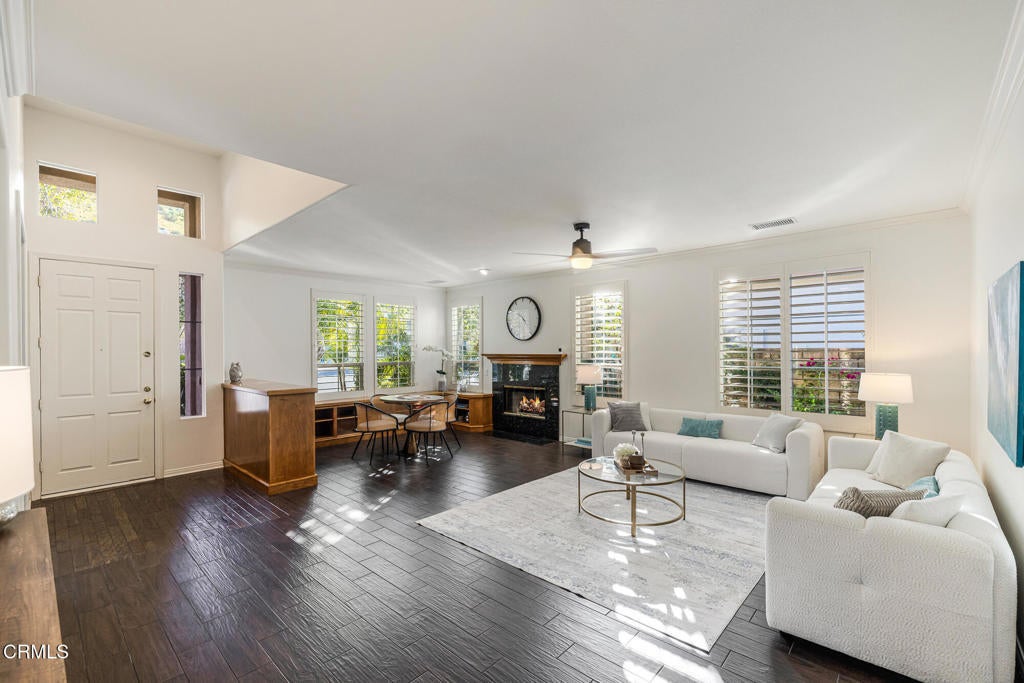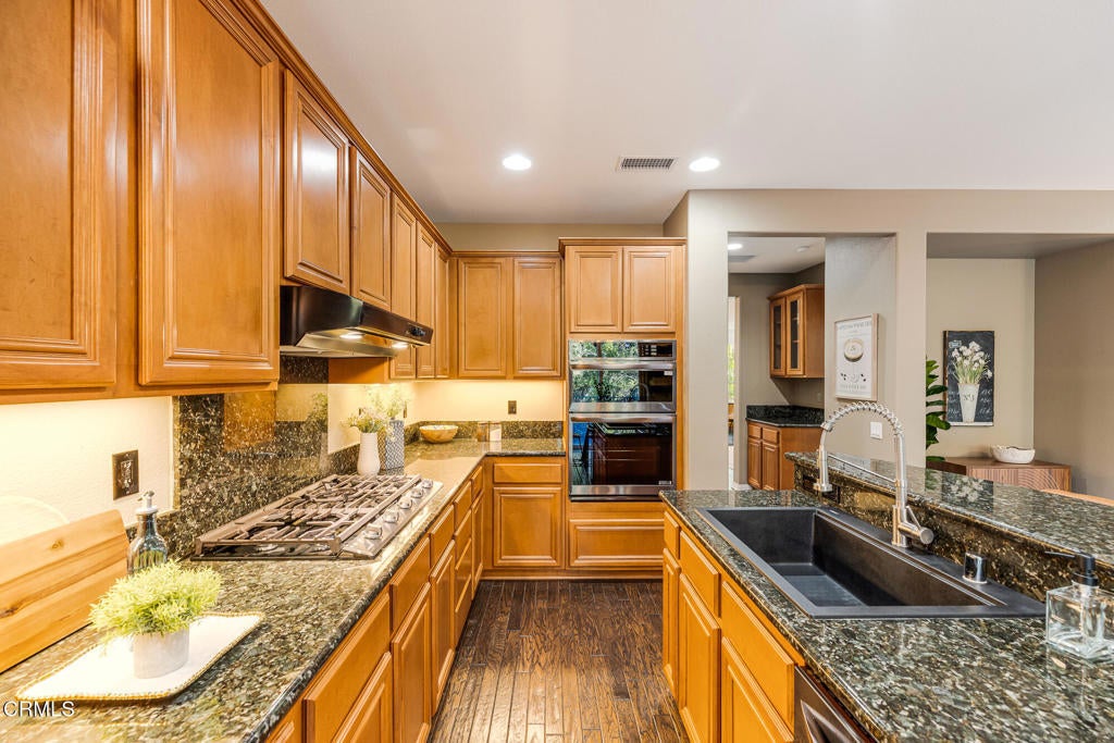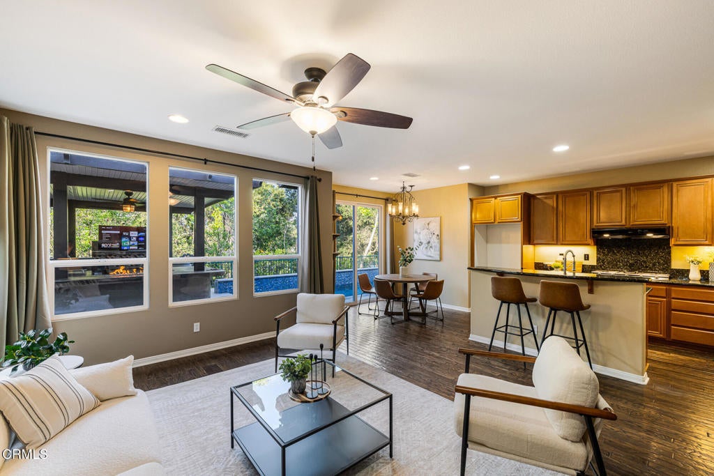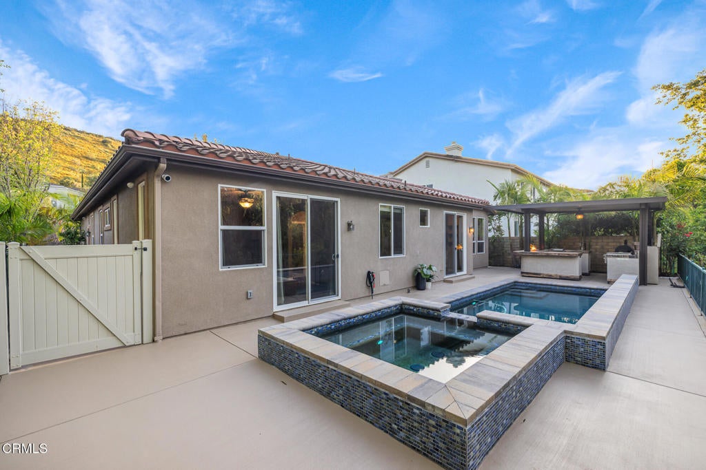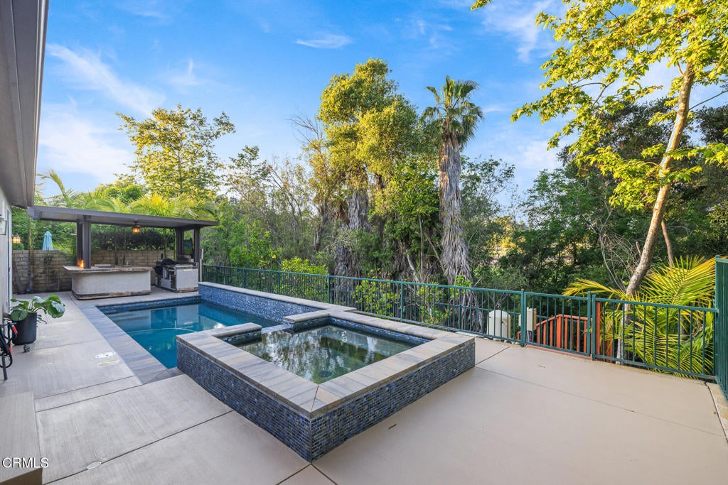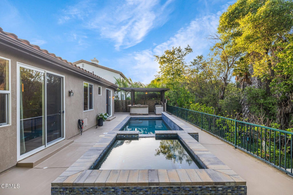 Welcome to this beautifully maintained, turn-key single-story home in Newbury Park featuring 3 bedrooms and 3 bathrooms on a private corner lot. This inviting home offers a spacious floor plan with two fireplaces, an upgraded kitchen, and a backyard designed for relaxing and entertaining. The backyard features a pool and spa, outdoor kitchen, BBQ area, and a peaceful creek setting directly behind the property. Inside, the home offers vaulted ceilings, two marble fireplaces, custom built-ins, plantation shutters, crown molding, recessed lighting, and fresh interior and exterior paint.The kitchen includes a spacious walk-in pantry, granite countertops, and brand-new appliances, including a 5-burner cooktop, convection wall oven, microwave, air fryer, new disposal, and granite sink.The primary suite features a large walk-in closet, oversized marble shower, jetted tub, and direct access to the back patio. The second bedroom includes a walk-in closet and en-suite bathroom. The third bedroom offers flexible use as a bedroom, office, or guest space.Additional features include double-pane windows, hardwood flooring in the entry, kitchen, and family room, plus new tile flooring in the primary bedroom, family room, and hallway. The home also has a new heating and air conditioning system, a fully redone roof, and professionally maintained landscaping with palms, fruit trees, and mature plants in the front and back yards.Modern upgrades include a Nest security camera system and drip irrigation with a Rachio Wi-Fi irrigation controller.Located near Cypress Park, local schools, grocery stores, restaurants, and hiking and biking trails, this home offers a wonderful combination of comfort, convenience, and outdoor enjoyment.