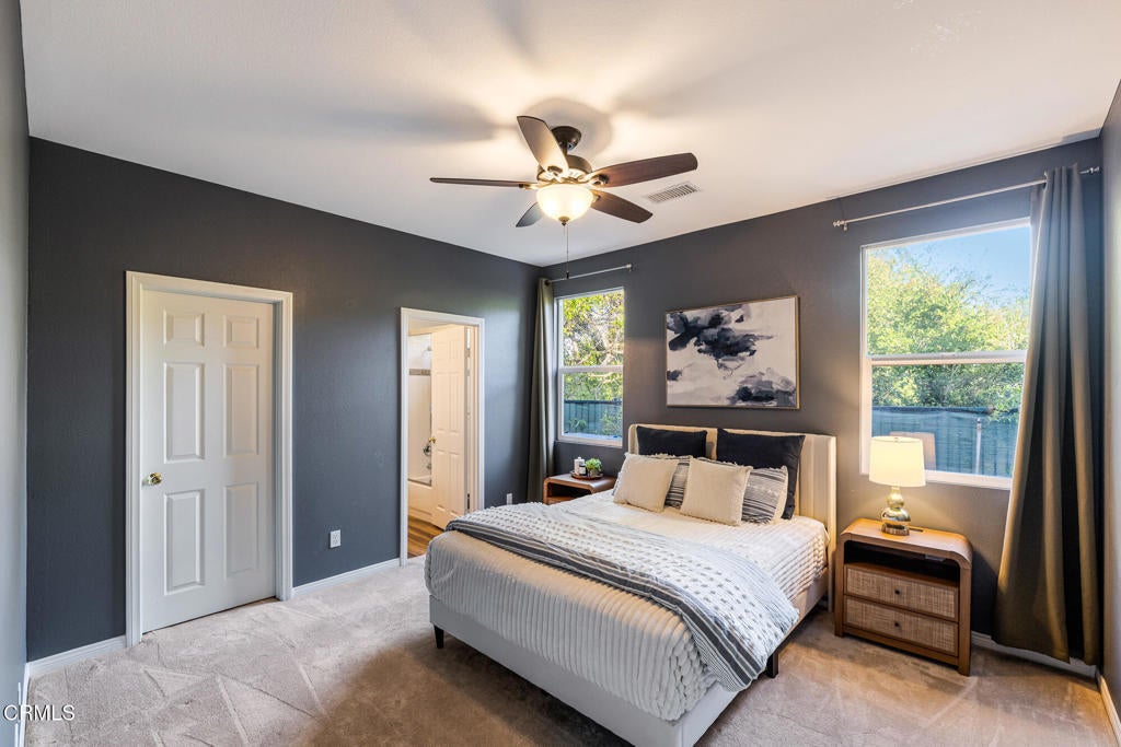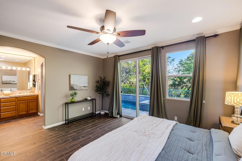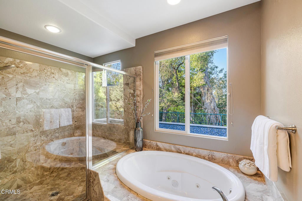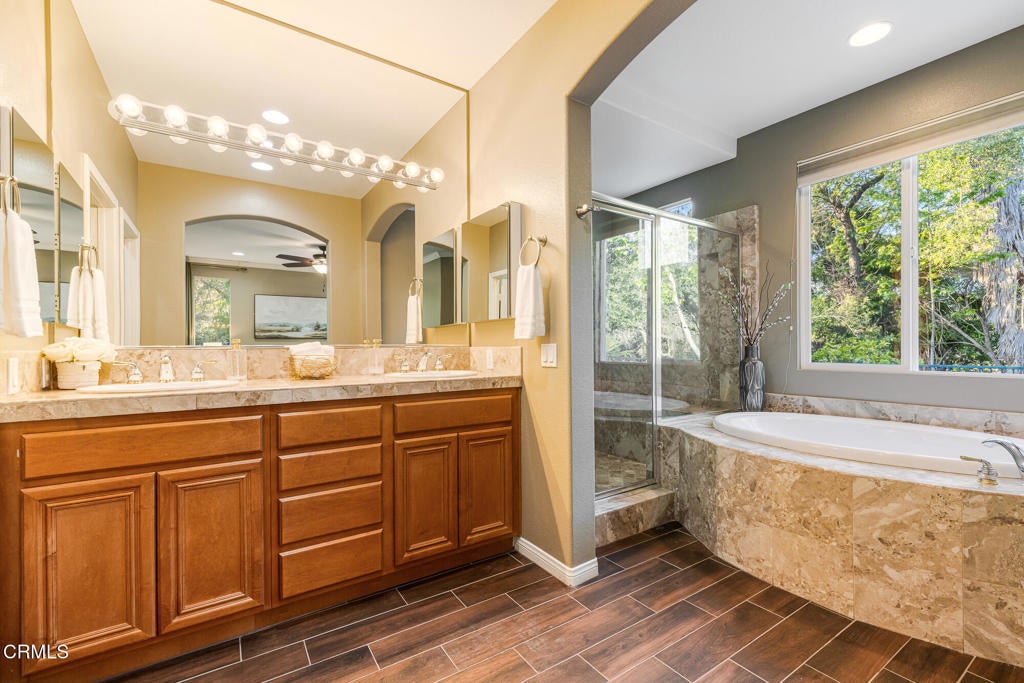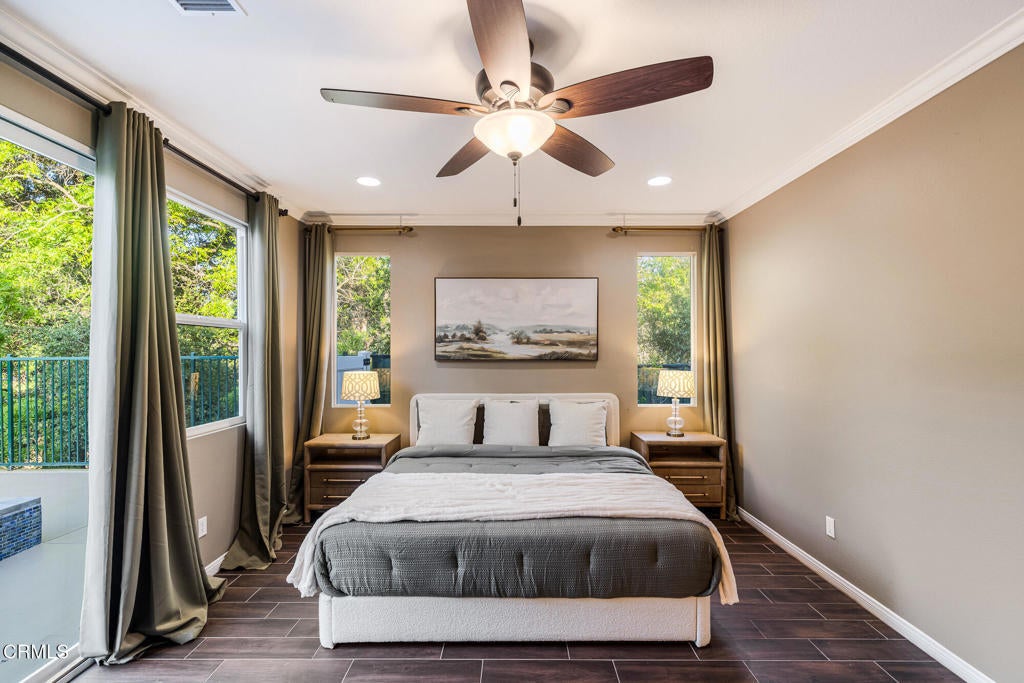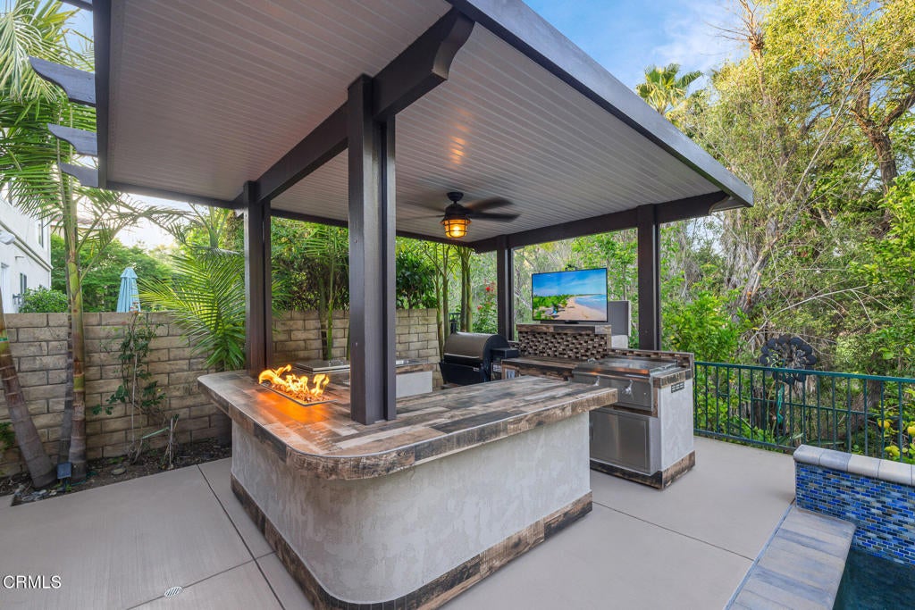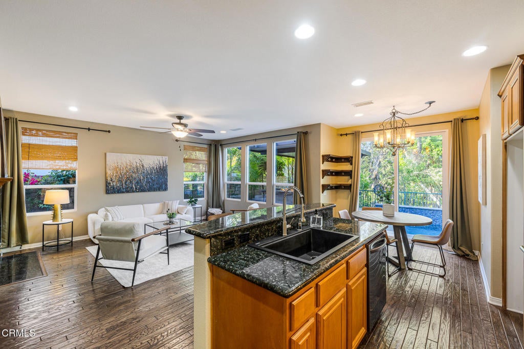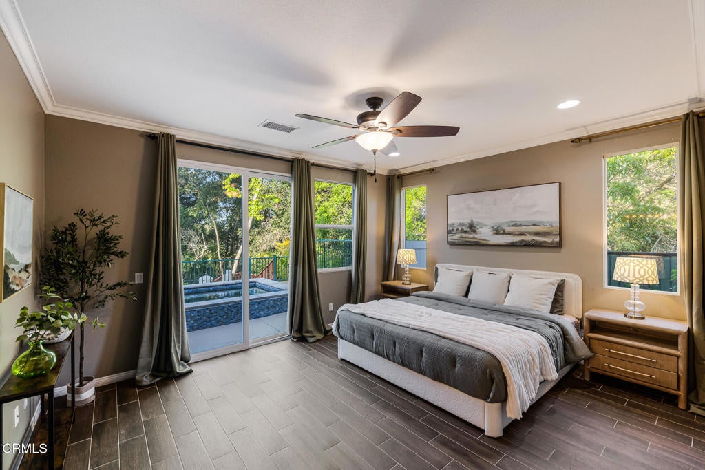 Welcome to this beautifully maintained, turn-key single-story home in Newbury Park featuring 3 bedrooms and 3 bathrooms on a private corner lot. This inviting home offers a spacious floor plan with two fireplaces, an upgraded kitchen, and a backyard designed for relaxing and entertaining. The backyard features a pool and spa, outdoor kitchen, BBQ area, and a peaceful creek setting directly behind the property. Inside, the home offers vaulted ceilings, two marble fireplaces, custom built-ins, plantation shutters, crown molding, recessed lighting, and fresh interior and exterior paint.The kitchen includes a spacious walk-in pantry, granite countertops, and brand-new appliances, including a 5-burner cooktop, convection wall oven, microwave, air fryer, new disposal, and granite sink.The primary suite features a large walk-in closet, oversized marble shower, jetted tub, and direct access to the back patio. The second bedroom includes a walk-in closet and en-suite bathroom. The third bedroom offers flexible use as a bedroom, office, or guest space.Additional features include double-pane windows, hardwood flooring in the entry, kitchen, and family room, plus new tile flooring in the primary bedroom, family room, and hallway. The home also has a new heating and air conditioning system, a fully redone roof, and professionally maintained landscaping with palms, fruit trees, and mature plants in the front and back yards.Modern upgrades include a Nest security camera system and drip irrigation with a Rachio Wi-Fi irrigation controller.Located near Cypress Park, local schools, grocery stores, restaurants, and hiking and biking trails, this home offers a wonderful combination of comfort, convenience, and outdoor enjoyment.