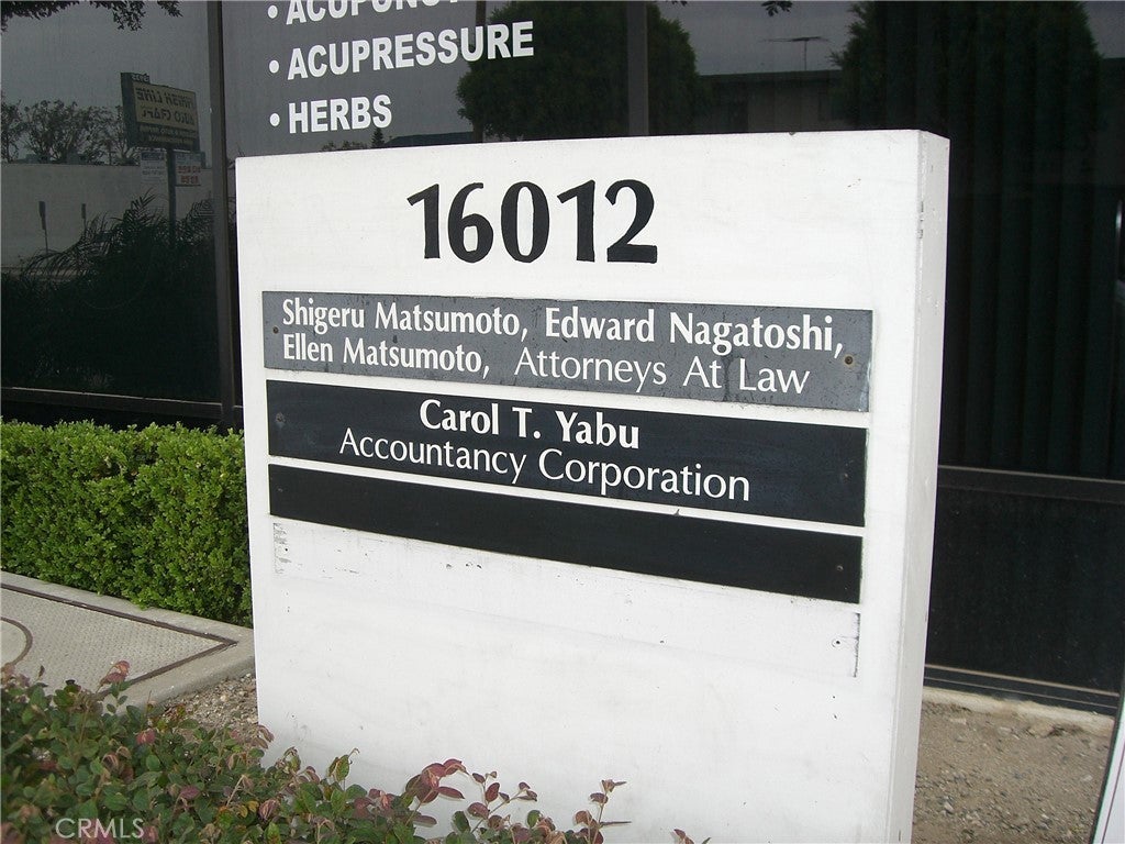 Multi-tenant office building in heart of Gardena. Very convenient location. Located on the busy street of Western Avenue, South Redondo Beach Blvd, North of 166th St. Near restaurants and shopping and is conveniently located in proximity to 110 and 405 Highway. Great Location! This office space is perfect for a start-up business, medical office, web designer, web business, accountant, etc.