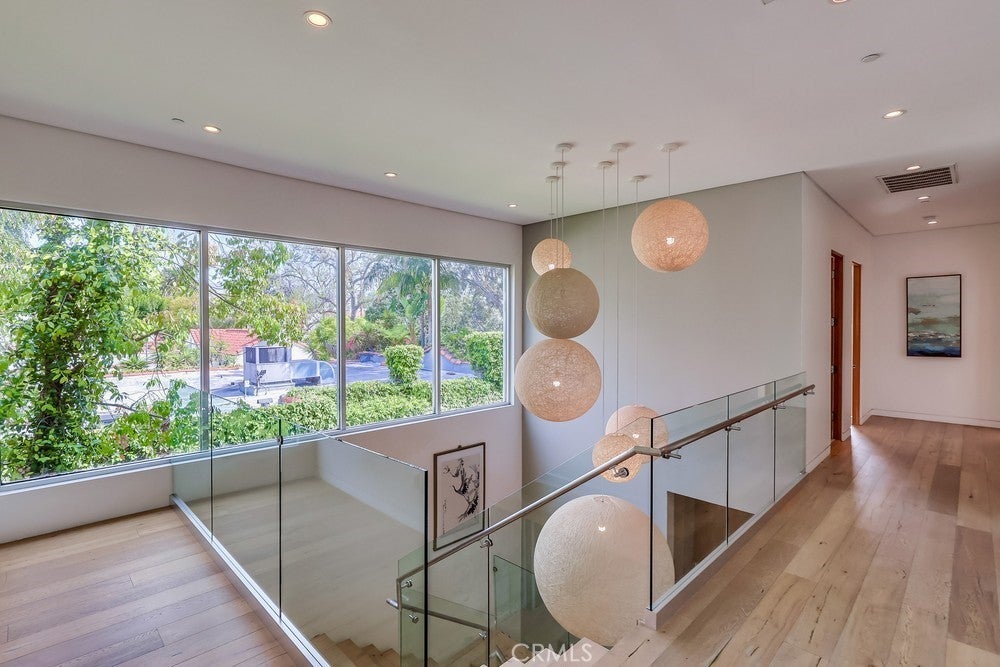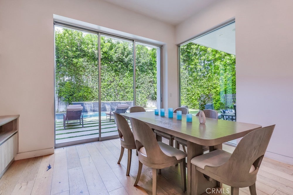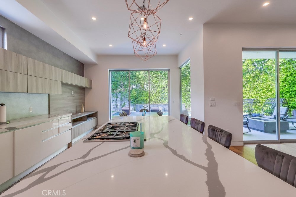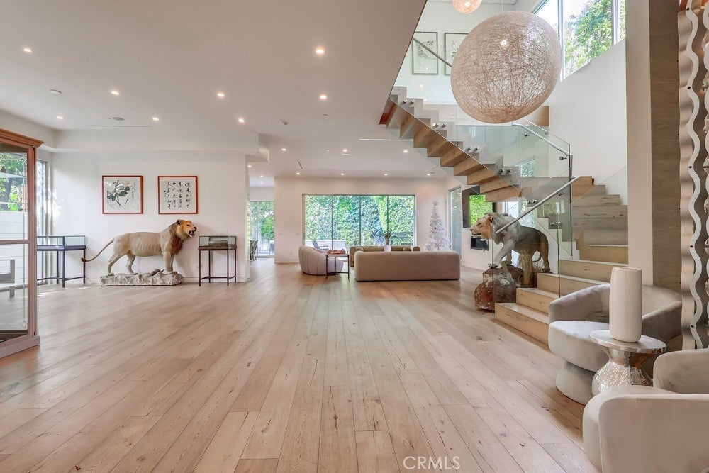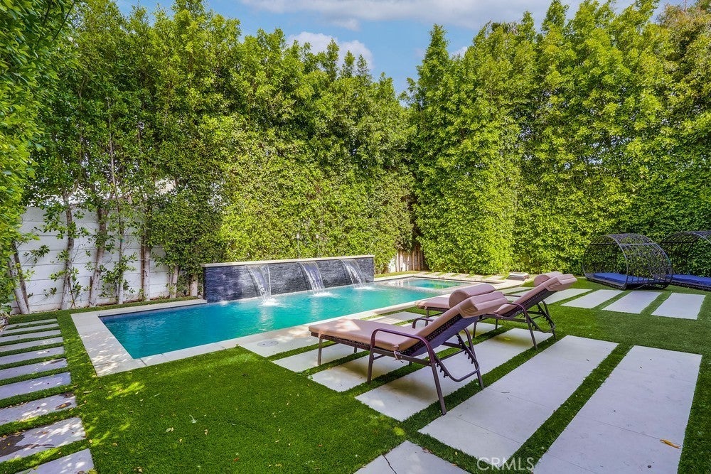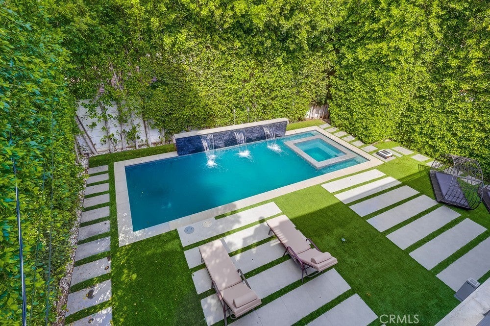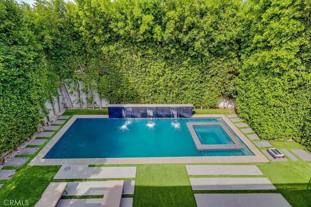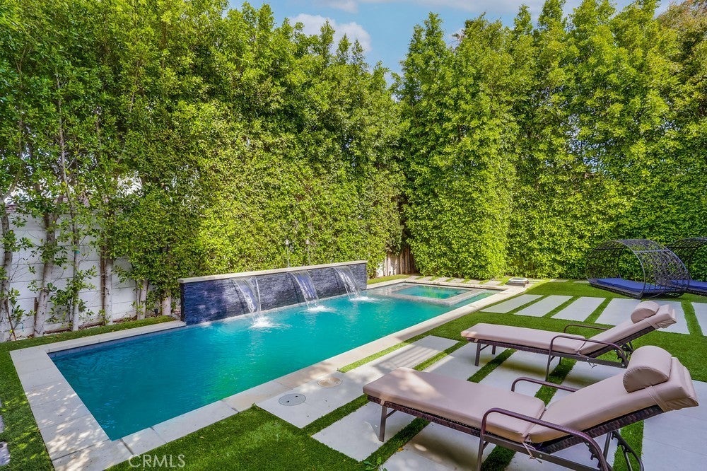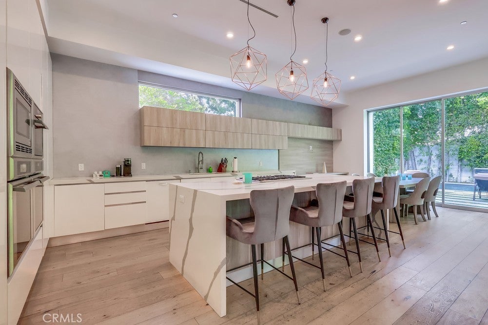 This exceptional residence showcases a thoughtfully designed floor plan with five spacious bedrooms and 5.5 elegantly appointed bathrooms, including a versatile ground-floor suite ideal for guests or home office needs. From the moment you step inside, you’re greeted by soaring 10-foot ceilings, gallery-style art walls, a sophisticated wine cabinet, and wide-plank European wood floors that exude warmth and refinement. The chef’s kitchen is a work of art in itself, featuring sleek European cabinetry, a dramatic center island, and state-of-the-art Thermador appliances. The expansive family room seamlessly connects to a lush, private backyard oasis—complete with a sparkling pool, spa, tranquil waterfall, and a stylish lounge area with a fire pit, perfect for indoor-outdoor entertaining or peaceful evenings under the stars. Floor-to-ceiling sliding glass doors flood the home with natural light, enhancing the open and airy ambiance. Upstairs, four luxurious bedroom suites each feature private balconies, while the primary suite serves as a true retreat, offering a serene spa-inspired bathroom with a soaking tub, an oversized walk-in closet, and an expansive private terrace. Mature hedging ensures exceptional privacy throughout. Equipped with a state-of-the-art smart home system controlled by iPad and an immersive Sonos surround sound system, every detail has been curated for modern luxury living. Ideally situated in the prestigious Melrose Corridor, this home places you just moments from Beverly Grove, West Hollywood, Larchmont Village, and Highland Park, with premier shopping, dining, and entertainment at your fingertips. it’s a refined lifestyle waiting to be experienced.