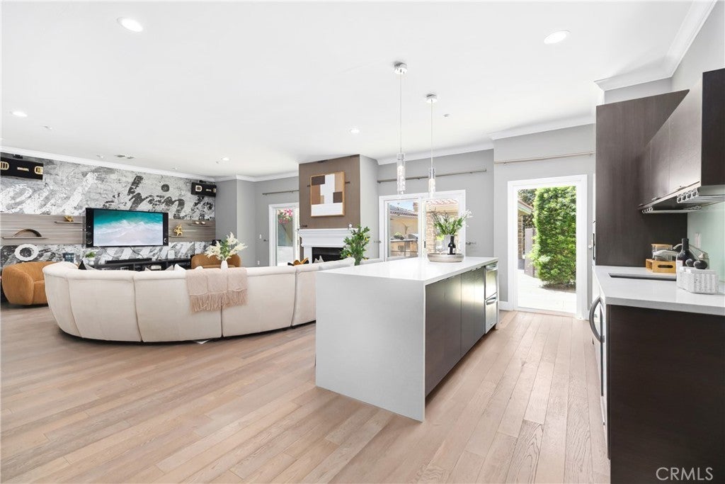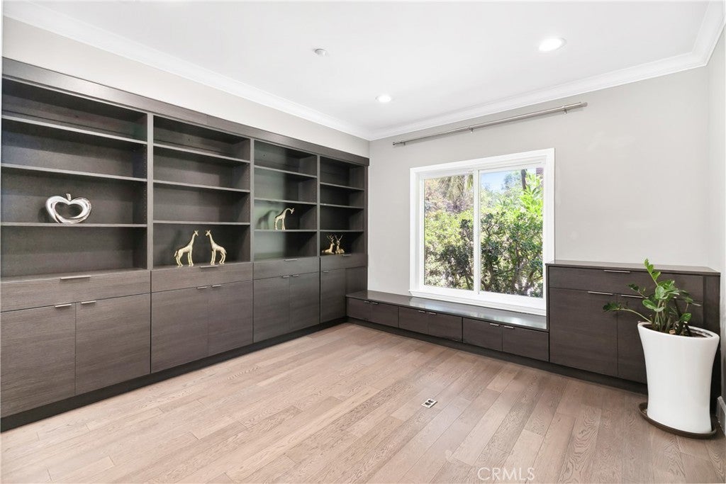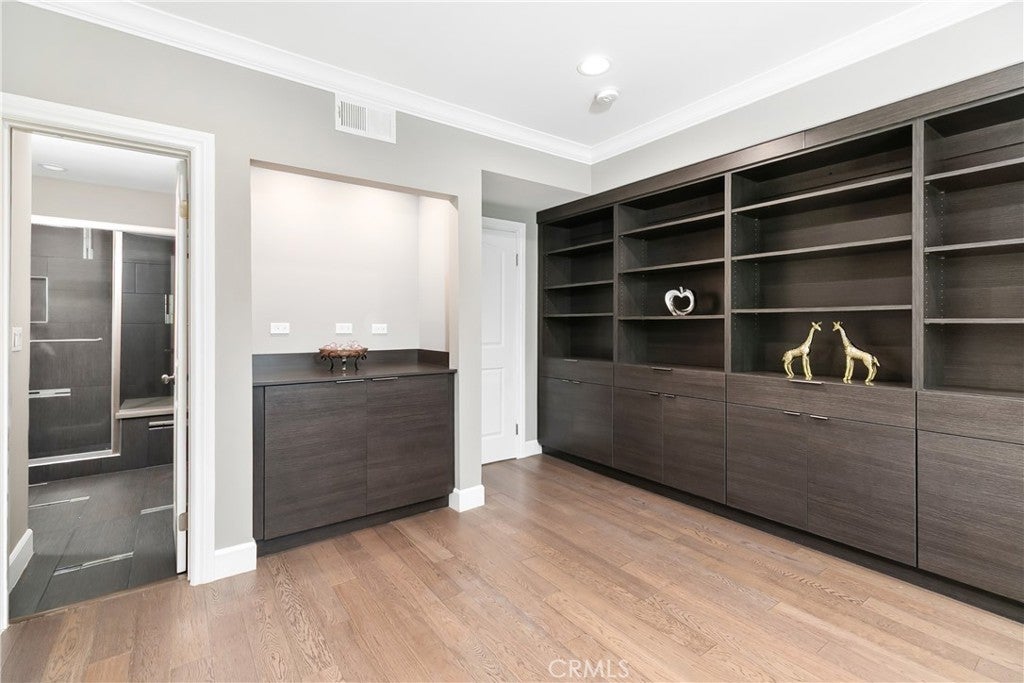 Breakfast Bar, Built-in Features, Balcony, Separate/Formal Dining Room, High Ceilings, Open Floorplan, Pantry, Quartz Counters, Recessed Lighting, Storage, Bar, Bedroom on Main Level, Entrance Foyer, Main Level Primary, Primary Suite, Walk-In Closet(s), Crown Molding