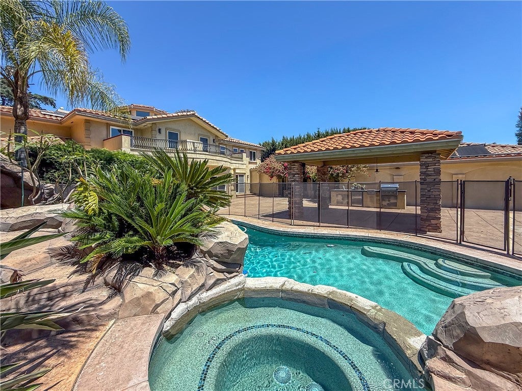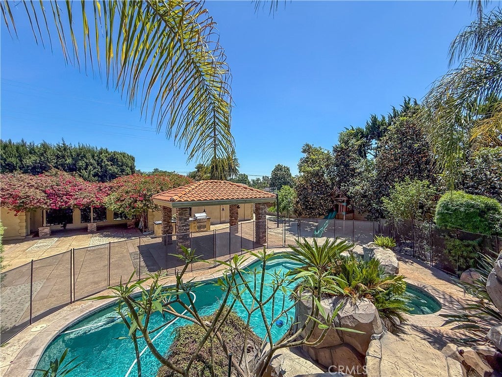 Welcome to 202 W Lemon Ave., a breathtaking estate in the heart of Arcadia, renowned for its award-winning Arcadia Unified School District. Situated on a sprawling lot behind an automated wrought-iron gate, this magnificent residence showcases timeless elegance, modern luxury, and over $1 million in custom upgrades. Designed with guidance from a Feng Shui master, the interior and exterior layouts harmonize energy and flow for prosperity and well-being. A circular driveway leads to a stately façade and a dramatic double-height foyer adorned with imported Italian crystal chandeliers and exquisite marble flooring. To the right, a soaring formal living room with fireplace and display cabinets flows into a charming piano room. A guest suite and refined office with dual desks and built-in shelves offer privacy and access to the serene backyard. At the heart of the home lies a spacious family room designed for upscale entertaining, complete with a sleek bar, KitchenAid fridge, Miele coffee machine, wine cooler, designer fireplace, and a striking TV feature wall flanked by sliding glass doors. A premium karaoke sound system adds to the fun. The formal dining room and cozy breakfast nook lead into a chef’s kitchen—featuring Thermador appliances, Sakura dual sterilizer, Fotile cooktop and hood, modern cabinetry, dual sinks, and a large laundry room. Another en-suite bedroom with elegant built-ins completes the main floor. An artful staircase leads to the second level, where a lavish primary suite awaits with vaulted ceilings, fireplace, dual walk-in closets, sitting area, and balcony views of the landscaped backyard oasis—complete with a custom pool, shaded pavilion, and pro-grade BBQ station. The spa-like bath features dual vanities, two private toilet rooms, a huge walk-in shower, and a jetted tub. Two more luxurious en-suite bedrooms provide comfort and privacy. Additional highlights include a three-car garage, fully paid solar panel system for energy efficiency, whole-house water softener, and two EV charging stations—one in the front yard and one inside the garage. Located within walking distance to top-rated Baldwin Stocker Elementary and in a neighborhood that has nurtured many Ivy League-bound students, this home offers rare educational and lifestyle advantages. 202 W Lemon Ave. is more than a residence—it is a sanctuary of prestige, harmony, and refined living in one of Southern California’s most desirable communities. Must See to Appreciate!