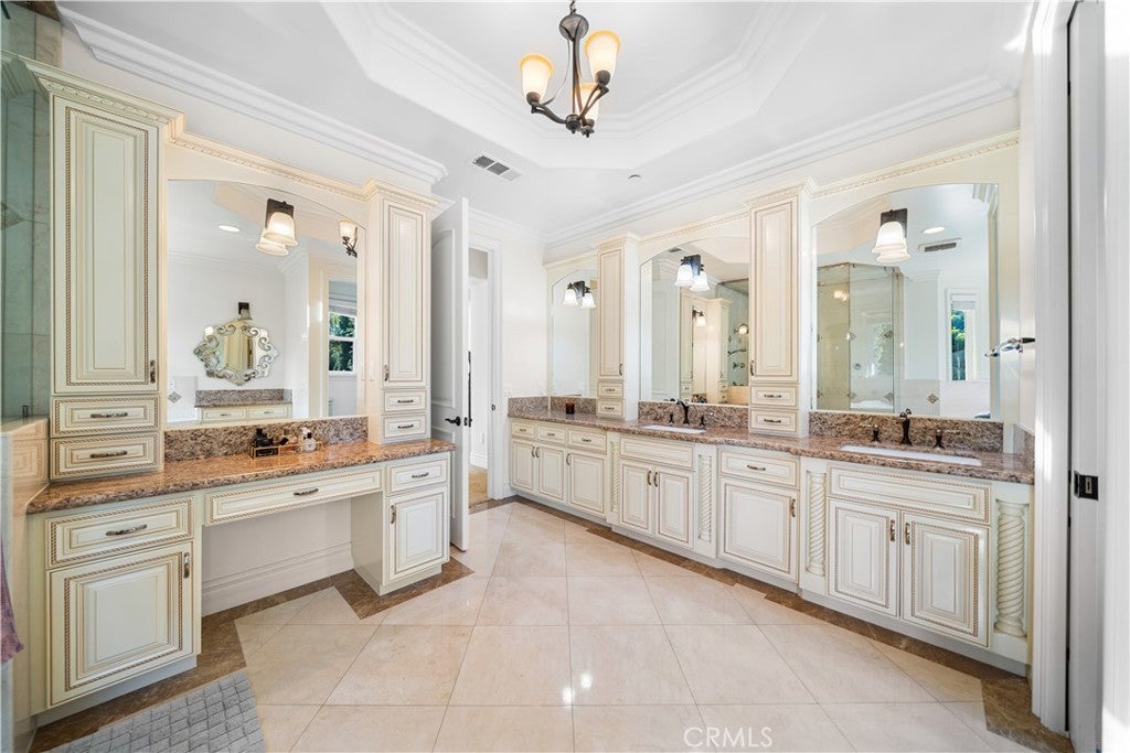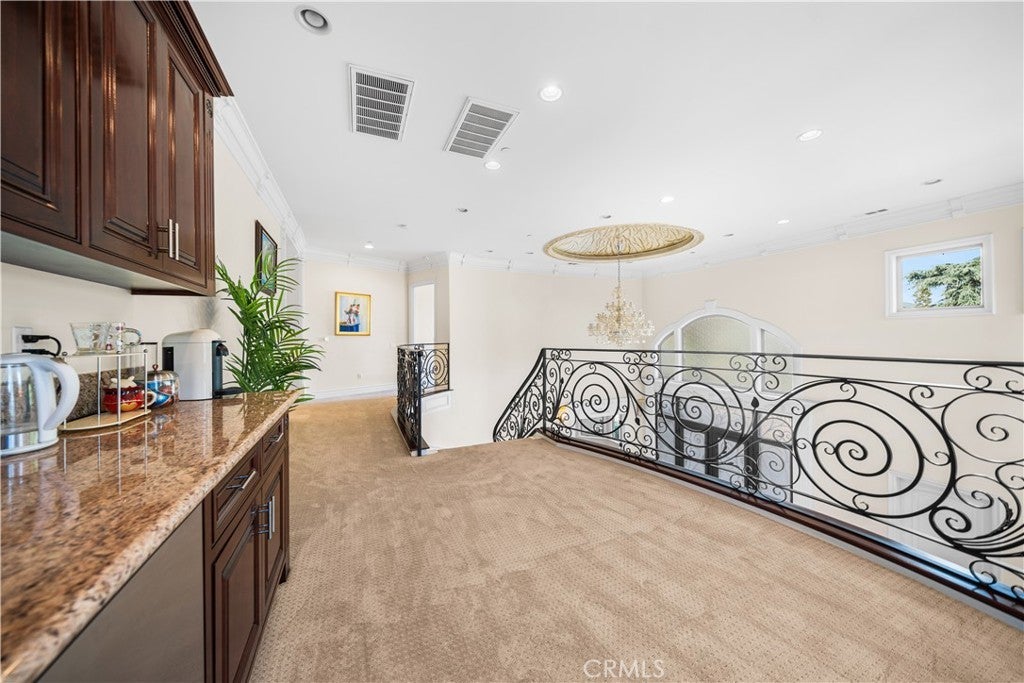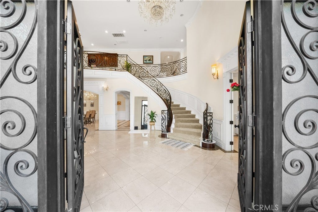 Don’t miss this rare opportunity to own a beautifully designed estate in Pasadena’s prestigious Michillinda Park neighborhood. Set on an expansive 18,516 sq ft lot, this remarkable residence offers approximately 5,953 sq ft of living space, featuring 6 spacious bedrooms and 7 bathrooms. The thoughtfully designed floorplan includes two main-level bedrooms ideal for guests or multigenerational living. The luxurious primary suite includes dual walk-in closets, a spa-style bathroom with a jacuzzi tub and steam shower, and a private balcony. Interior highlights include soaring ceilings, elegant chandeliers, custom woodwork, and marble flooring. The home is equipped with a spacious open-concept gourmet kitchen and a separate wok kitchen. Formal living and dining rooms, a family room, and a private office offer comfort and flexibility. Both the front and back yards are professionally landscaped with a year-round blooming rose garden. Peacocks are known to occasionally visit the grounds, adding charm and natural beauty to the setting. This is a rare blend of elegance, comfort, and tranquil outdoor living in one of Pasadena’s most desirable locations.