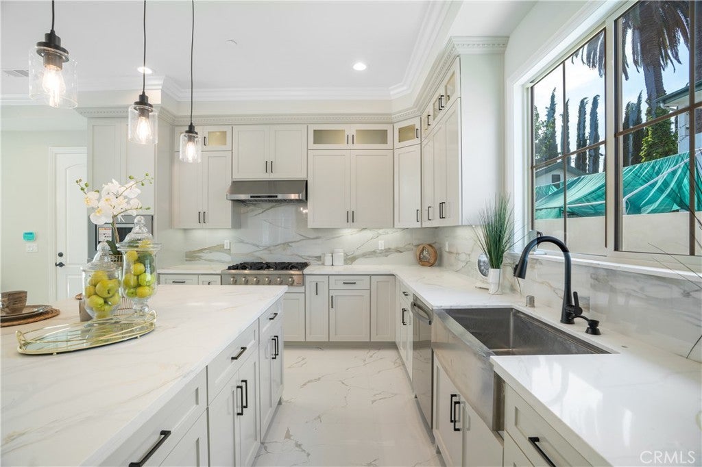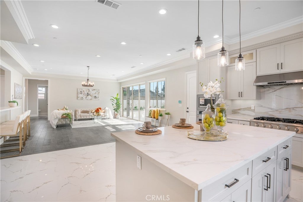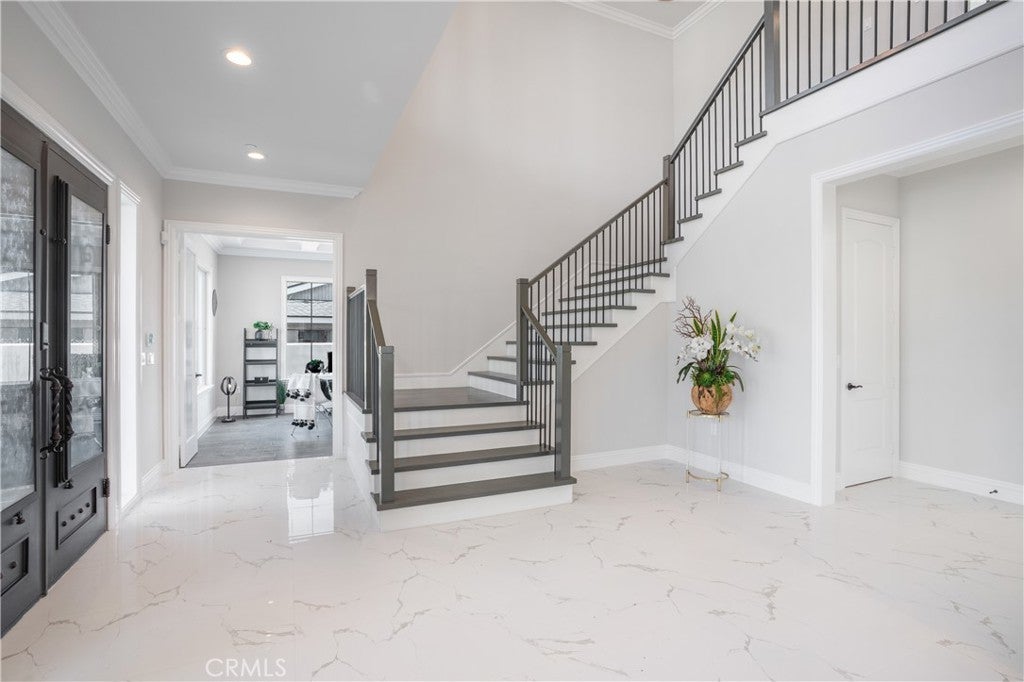 Arcadia School District!! The brand new home built in 2025! This unique custom two story home features 4 bedrooms, 4.5 baths, a specious home office, laundry room and 3 cars attached garage. The steps front porch takes you into double door entry into a high ceiling foyer, a stunning living room with a custom fireplace, exquisite formal dining room. The home has two kitchens, a chef's dream Wok room and a gourmet kitchen is an open concept with quartz center island counter top opens to a large family room filled with natural light through the double sliding doors, a breakfast nook area and a specious wet bar. The elegant iron staircase leads to the second floor features a luxurious master bedroom suite with a walk-in closet, double sinks, a soaking bath tub. ALL EN-SUITE BEDROOMS! and a very relaxing den for everyone. Super large balcony upstairs is a perfect sitting area overlooks the lush landscaping of the front home and mountain views. Modern light fixtures, crown moldings, tiles and hardwood throughout the interior. Security camera system and alarm system. Solar panel installations are fully paid off. There are so much more about this home that you have to come see for yourself!