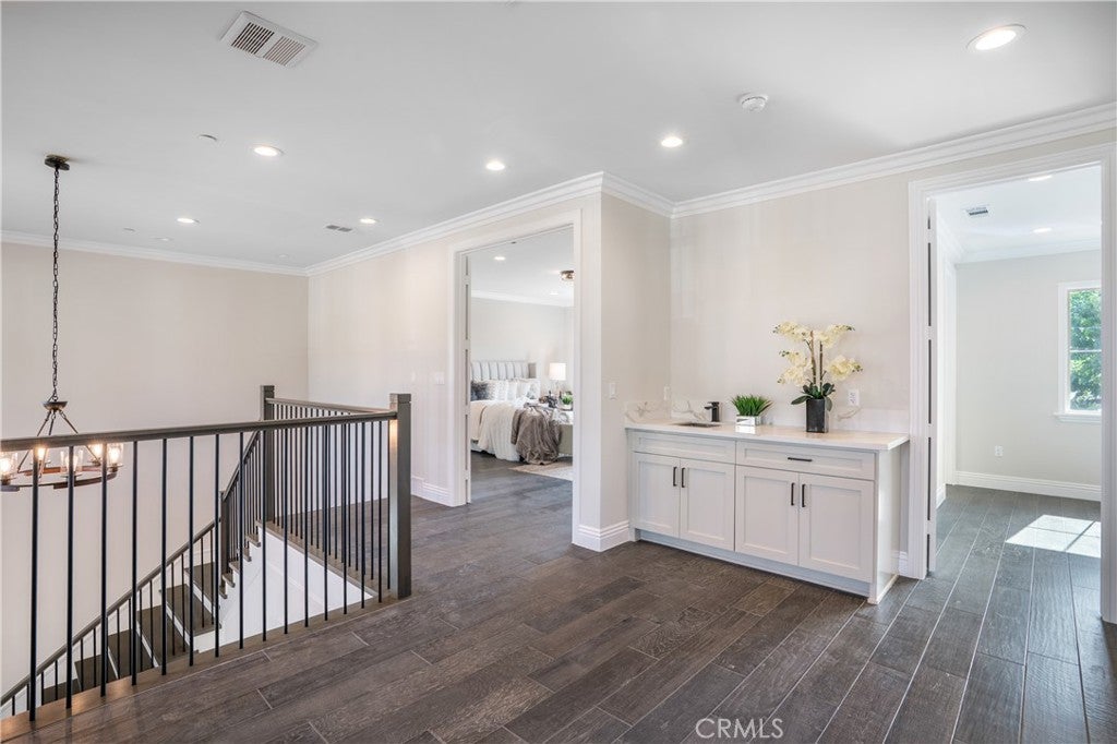 Wet Bar, Balcony, Breakfast Area, Crown Molding, Separate/Formal Dining Room, High Ceilings, Open Floorplan, Pantry, Quartz Counters, Recessed Lighting, Entrance Foyer, Loft, Walk-In Closet(s)