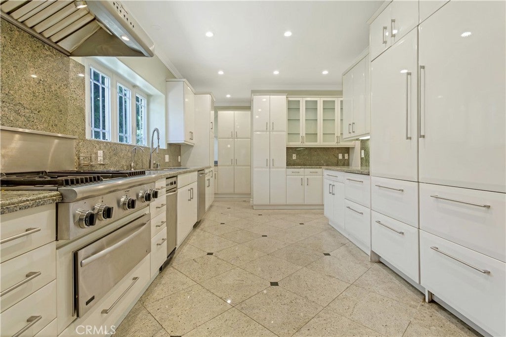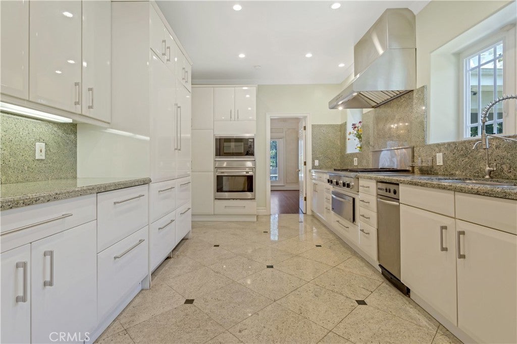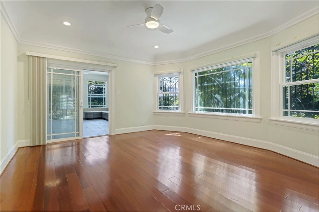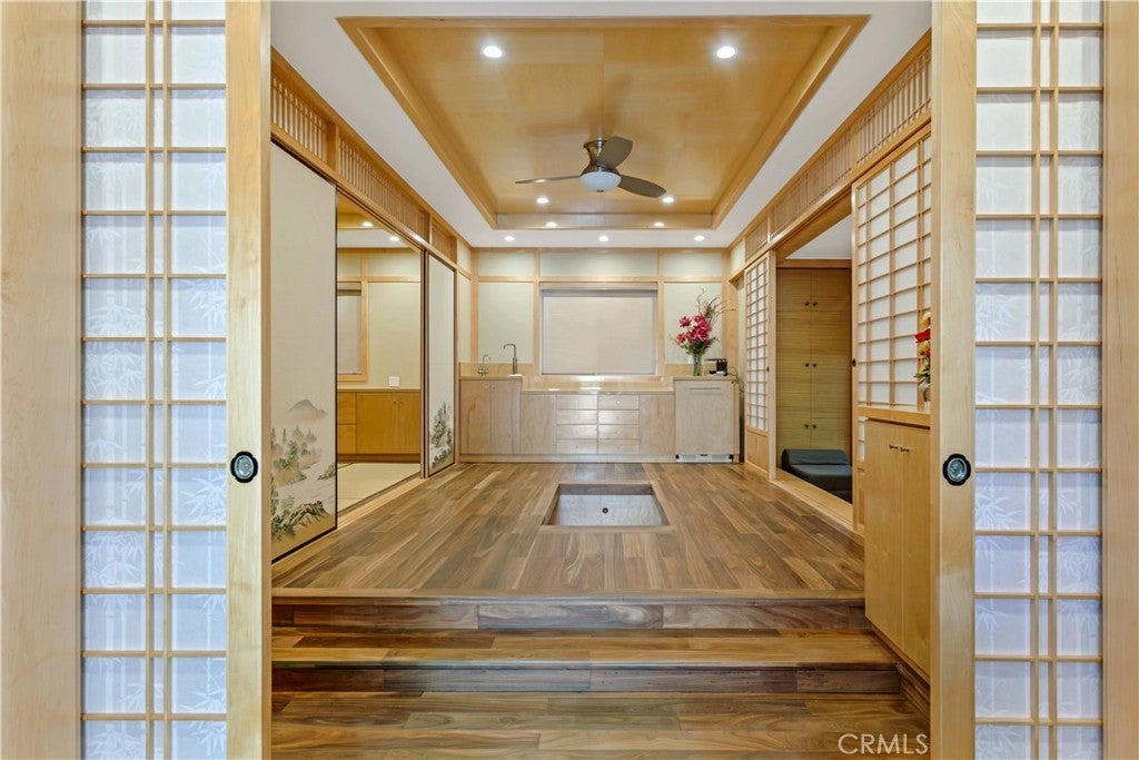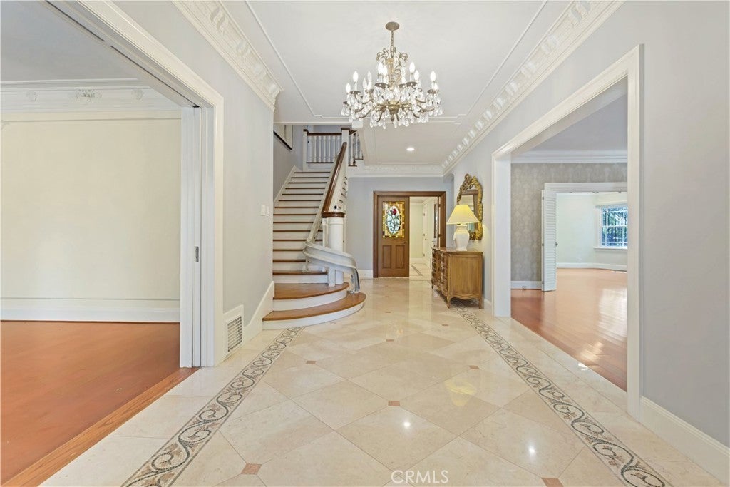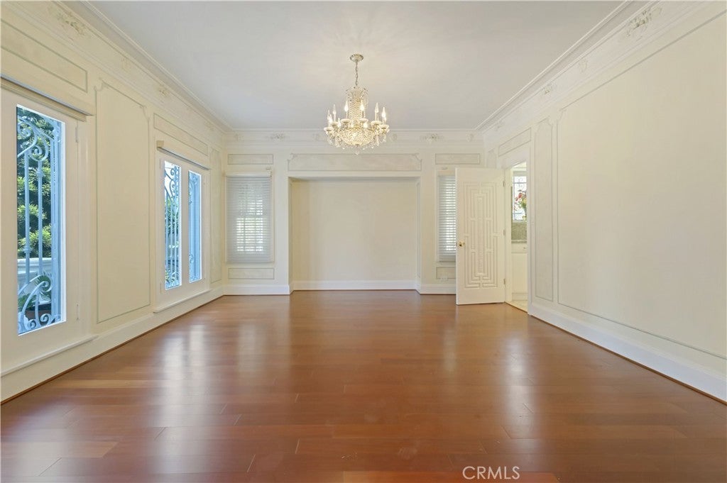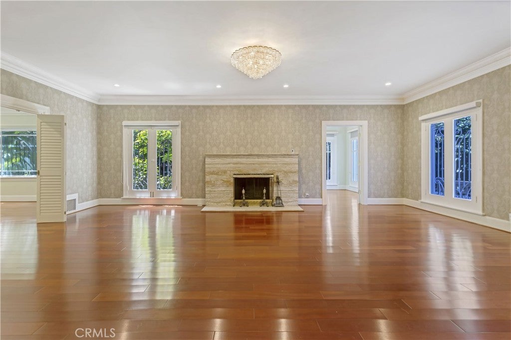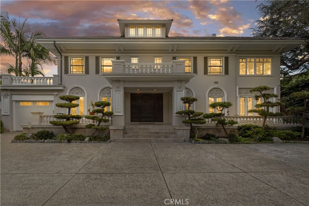 Seller Motivated! On the market for the first time in over four decades, this iconic Windsor Square estate is one of Hancock Park’s most distinguished and rare offerings. Located just moments from Larchmont Village and the prestigious Marlborough School, the gated 7,700-square-foot residence rests on an expansive and flat 16,900 sqft lot, masterfully combining classic architectural sophistication with modern upgrades designed for today’s lifestyle. From the moment you arrive, the estate makes a commanding impression. A wide circular motor court leads to a stately façade adorned with arched windows, custom wrought ironwork, and a balcony-topped portico. Manicured topiary and lush landscaping, while a tree-lined path meanders past curated boulders into a serene Japanese-inspired garden. A gated driveway passes through a porte-cochère that links the main residence to a detached garage and guest house. The entire property is enclosed with mature hedging, drought-tolerant landscaping, and secure entry gates for added privacy. Inside, the home exudes timeless detail and spacious comfort. Beautiful original elements like intricate crown moldings, polished marble and hardwood floors, and formal living and dining rooms have been thoughtfully preserved and enhanced. The main floor includes an elegant living room, a spectacular library or office, a warm family room, a formal dining room perfect for entertaining, kitchen, a guest bedroom includes a private ensuite bath, powder room, large laundry room, and a skylit gym complete the main level. Upstairs, four ensuite bedrooms offer refined comfort and privacy. The expansive primary suite is a true retreat, featuring a large private office, a luxurious ensuite bath, and a custom walk-in closet. Each bedroom is equipped with its own mini-split HVAC unit for tailored climate control. Above, a fully finished attic spanning approximately 1,474 square feet provides an additional sanctuary with Modern Japanese interior design, complete with an office nook, four walk-in closets, and a private bath. The detached 700-square-foot guest house mirrors this aesthetic with bamboo fencing, slate accents, and handcrafted woodwork, offering a serene, self-contained retreat with its own powder room, ensuite bath, reading area, and imported hardwood flooring.