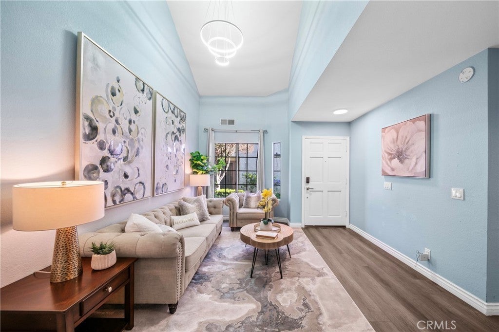 PRICE IMPROVEMENT!!! Welcome to Acacia Village, a tastefully upgraded condo located on the quieter inner side of the community. This inviting home features a spacious family room with high ceilings, LED pendent light, and a cozy fireplace, along with three generously sized bedrooms—each with vaulted ceilings and beautiful LED lights —and 2.5 beautifully remodeled bathrooms. Additional highlights include luxury vinyl flooring throughout, a two-car attached garage with direct access, and an in-unit laundry area. The remodeled kitchen is a chef’s dream, featuring granite countertops, soft-close cabinetry, stainless steel appliances, an overhead range hood, and an open connection to the dining area. The primary suite offers a walk-in closet, a remodeled 3/4 bath with dual vanities, and access to a generously sized private balcony. The second bedroom includes a full closet, while the third bedroom boasts a walk-in closet. The shared upstairs bathroom features a full tub. Community amenities include a large swimming pool, spa, BBQ area, and ample guest parking. Conveniently located near shopping, transportation, schools, and with easy access to the 10 Freeway, this property is a must-see!