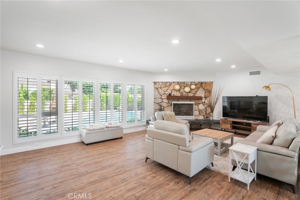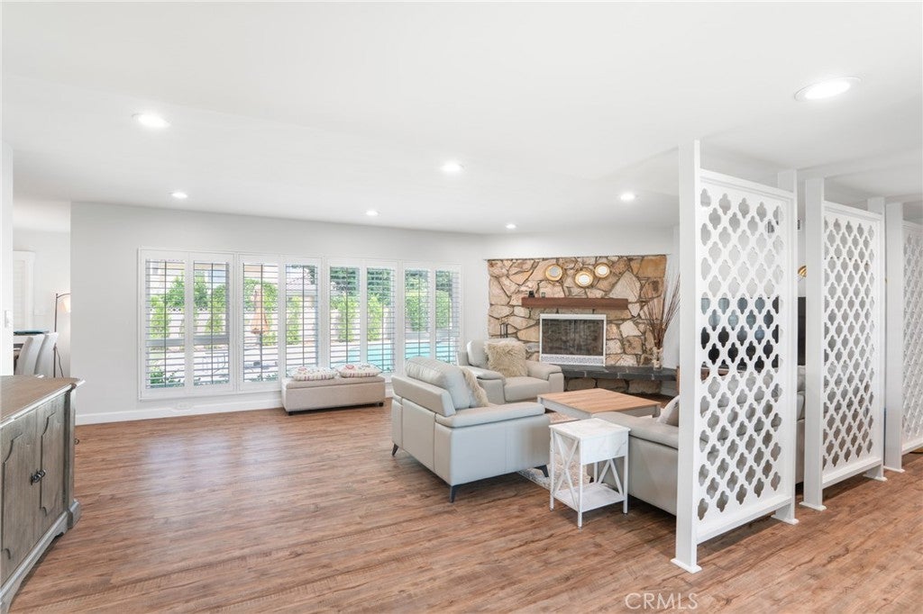 Welcome to this renovated single-story home!! nestled on a quiet street in Arcadia. This stunning home features a great curb appeal with a beautiful circular driveway. Step inside the double door entry to discover flawlessly remodeled modern amenities that harmonize with timeless design. With 3 bedrooms and 2.5 bathrooms, including a luxurious master suite, this home offers 2123 sq ft on a 9161 sq ft lot for comfortable living. Two attached car garage with opener adds convenience and security with direct access from the kitchen, easy to park and bring groceries in. Every corner of this home has been rejuvenated, large windows throughout the home fill with natural light while offering picturesque views of the beautiful outdoor pool. The formal living room features a cozy fireplace and specious dining area. The updated kitchen, embrace the updated quartz countertops including stainless steel appliances, refrigerator, stove, dishwasher, sink as well as all modern fixtures throughout. Step outside to a backyard paradise featuring a large pool that sets the tone for the elegance within, a perfect outdoor retreat for relaxing or family gatherings. Conveniently located near top-rated schools, parks, shopping, and dining. This beautiful renovated home is a rare find. Don't miss this incredible opportunity!