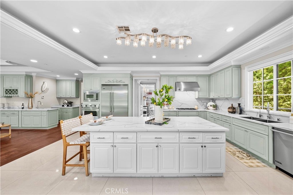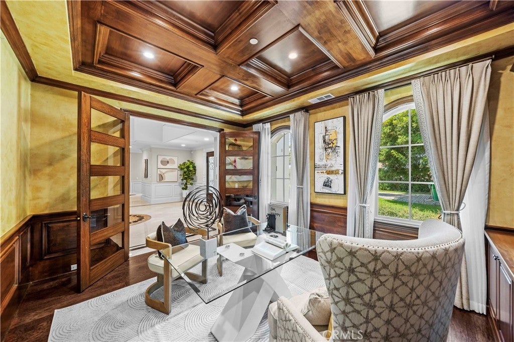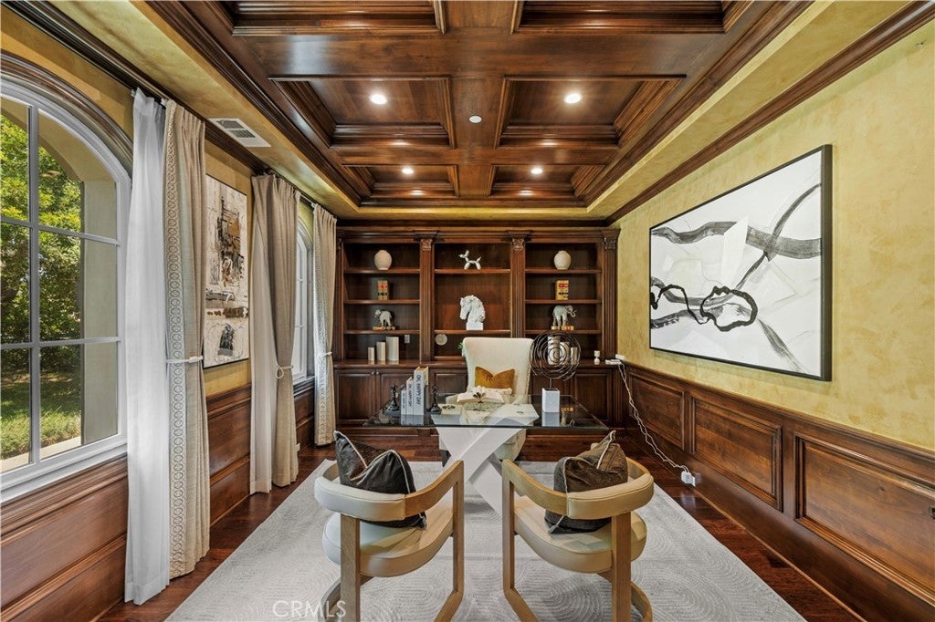 Situated on a serene, tree-lined street in one of Arcadia's most coveted locations. Boasting nearly 7,315 sqft of meticulously crafted living space on an expansive 15,000+ sqft lot, every detail of this custom estate exudes sophistication and comfort. Step through the grand double-door entrance into a breathtaking marble foyer with soaring ceilings, dazzling crystal chandeliers, and elegant domes, setting the tone for the opulence within. An exquisite, built-in library offers a quiet sanctuary, while the glamorous living room, complete with a designer fireplace, flows seamlessly into the formal dining room – perfect for entertaining. The gourmet kitchen is a chef's dream, featuring gleaming granite countertops, top-of-the-line stainless steel appliances (including a built-in refrigerator), a generous center island, breakfast nook, custom cabinetry, a dedicated pantry, wet bar, and even a separate wok kitchen. This thoughtfully designed home offers 4 luxurious suite bedrooms and 1 guest room plus 2 additional baths, including a convenient main-level guest suite with a Jacuzzi bathtub and shower. The upper level features a spacious master suite, complete with double sinks, a soaking tub, and two massive walk-in closets. The expansive open basement is an entertainer's paradise, featuring a state-of-the-art home theater with reclining chairs, a built-in projector, and a sound system, a dedicated gym room, a sophisticated wine cellar, and another wet bar. Beyond the exquisite interiors, this estate offers practical luxuries including an intercom system, alarm, night security cameras, tankless water heaters, a sunroom, custom-built cabinetry, and a 3-car attached garage with automatic gate access. The professionally landscaped front and backyards provide a beautiful setting, with ample room for a future pool. Enjoy the ultimate convenience with walking distance to elementary schools, shopping malls, restaurants, and supermarkets. This property is also located within the award-winning Arcadia School District. Don't miss the opportunity to own this Arcadia masterpiece. Schedule your private viewing today!