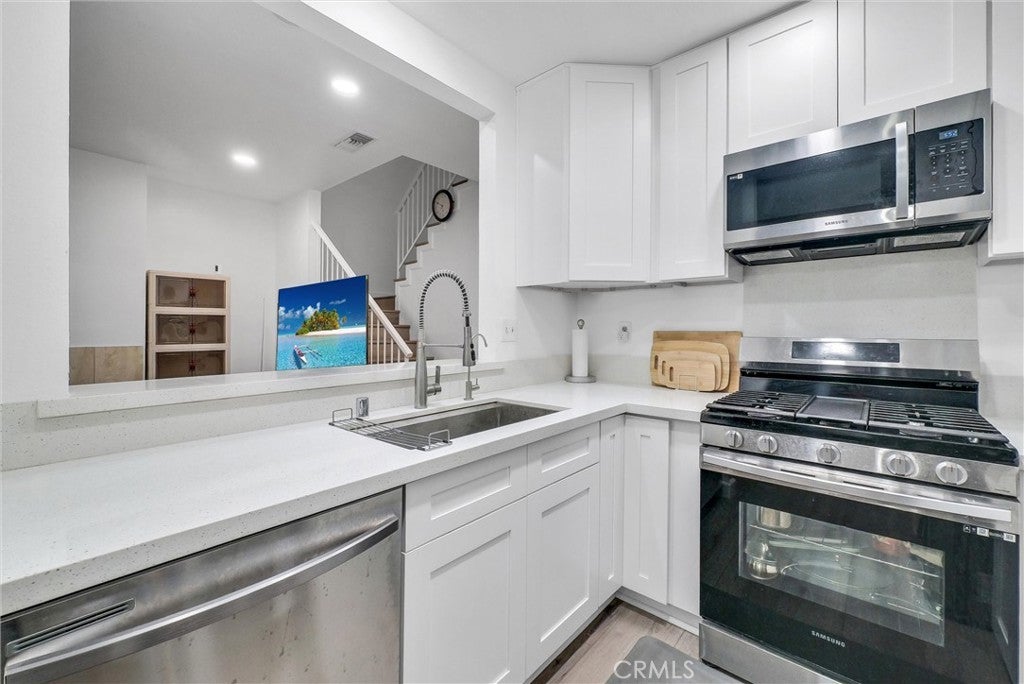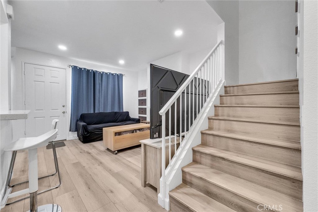 This renovated 3-bedroom condo has beautiful fixtures & finishes, along with lots of storage and a great location. The unit has a private front courtyard where you can grill up dinner or enjoy a quiet cup of coffee in the morning. When you enter through the front door, you'll find an open layout with fresh paint, recessed lighting, wide-plank LVP flooring (no carpets here), a cozy fireplace and two big windows that fill the main level with natural light. The renovated kitchen features stunning quartz countertops, white Shaker cabinetry, stainless appliances, a workstation sink, a dining nook and a breakfast bar overlooking the living room. The main floor also offers a powder room and has direct access to the 2-car garage – which includes plenty of storage space & the laundry area. Upstairs, you'll find the bedrooms plus a large loft that includes a skylight and floor-to-ceiling built-in storage. The primary bedroom boasts a spacious ensuite with dual sinks and a step-in glass shower. The guest rooms down the hall both have ceiling fans & ample closet space. This quiet condo community has a gated entry and offers residents amenities like a community pool, meticulously landscaped grounds & guest parking. You'll be just 2 minutes from all the shopping & dining along N Azusa Ave., with top-ranked schools all less than a mile from your front door. You can hop on both the 10 & 210 Fwys in less than 5 mins, or take the MetroLink (5 mins away) for an easy commute!