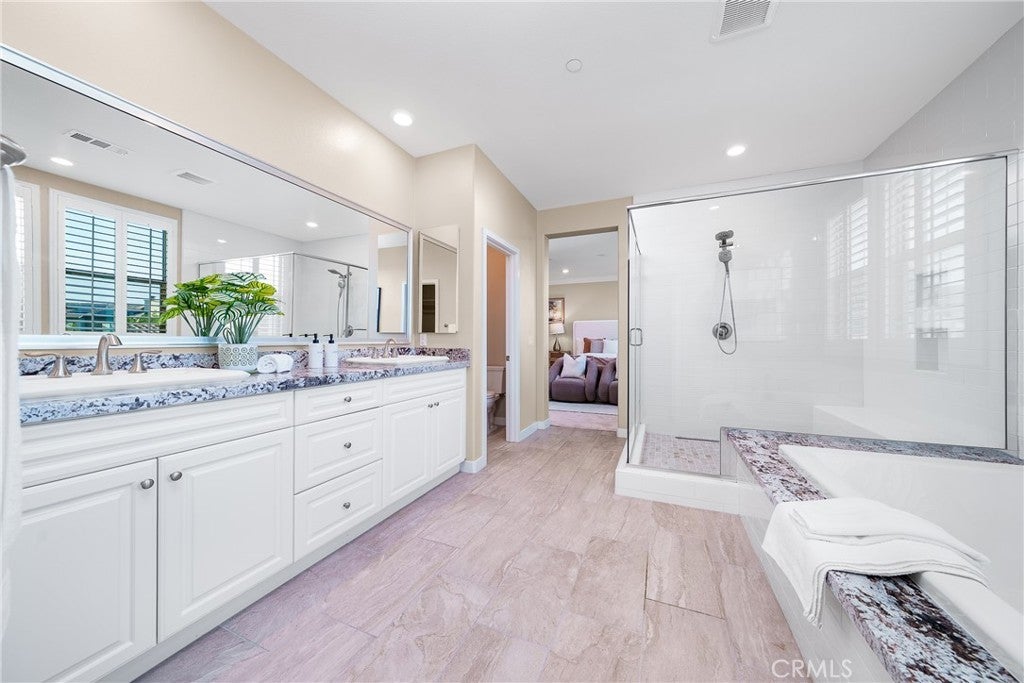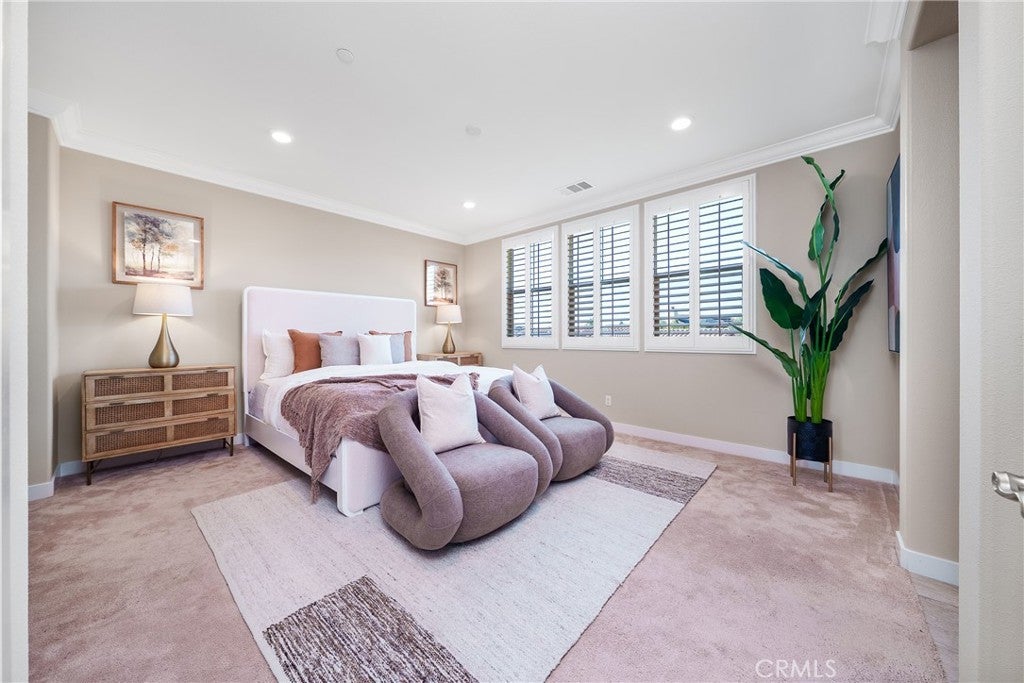 Welcome to this modern Mediterranean-style luxury home, ideally located near a community park and elementary school. Upon entry, you’ll find a office on the right. A hallway leads to the spacious great room, where large sliding glass doors fill the living area with natural light. The upgraded kitchen features elegant cabinetry, high-end appliances, and an extended center island that adds both function and style. One of the standout features of this home is that all five bedrooms have their own bathrooms. The upstairs balcony and the private, generously sized backyard enhance the sense of space and privacy. This is a rare opportunity to own a home with such exceptional qualities — don’t miss it!