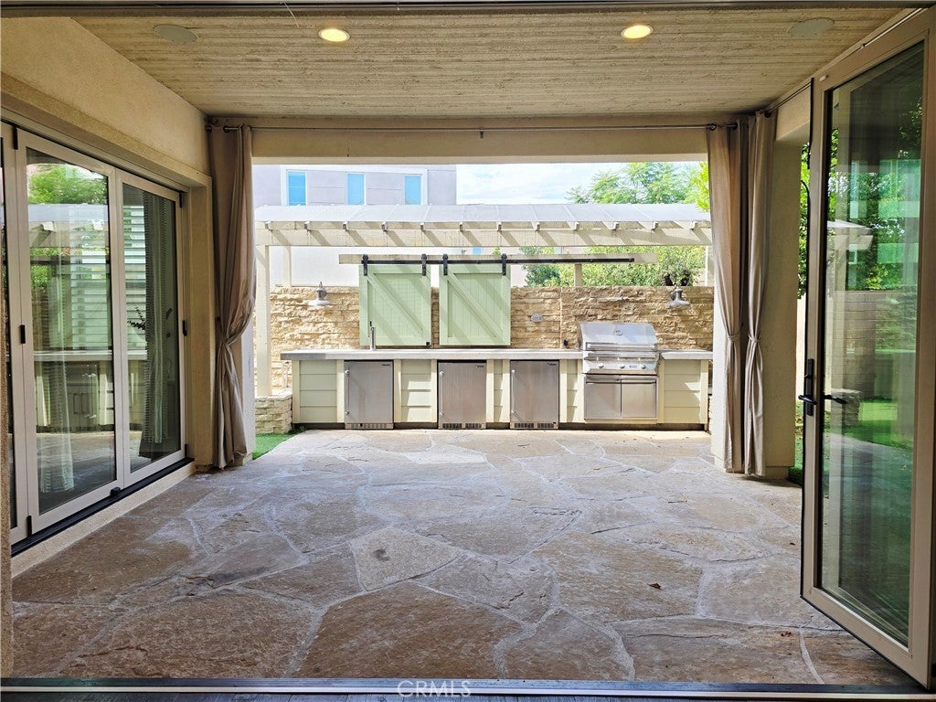 Discover the award-winning, fully upgraded model home at the heart of Beacon Park in Great Park. This contemporary residence spans nearly 3,000 sq. ft. features 4 bedrooms and 4½ bathrooms within an open-concept layout. Step into the expansive living room perfect for movie nights or entertaining with built-in ceiling Bluetooth surround sound. The gourmet kitchen showcases an oversized island, extensive counter space, custom cabinetry, a large pantry, and stainless-steel appliances to satisfy every culinary ambition. Rich hardwood flooring flows throughout the downstairs, leading you to a cozy backyard oasis complete with a BBQ bar and patio seating. For added flexibility, a private downstairs suite offers its own living area, full bathroom, and separate entrance ideal for guests or a home office. Upstairs, the luxurious master suite invites you to unwind with a generous walk-in closet, while a spacious laundry room enhances daily convenience and overall home value. Sunlight pours in through abundant windows, illuminating the home and framing picturesque neighborhood views. Level 2 EV Plug Ready! Don’t miss your chance to call this dream home in Irvine’s Great Park your own!