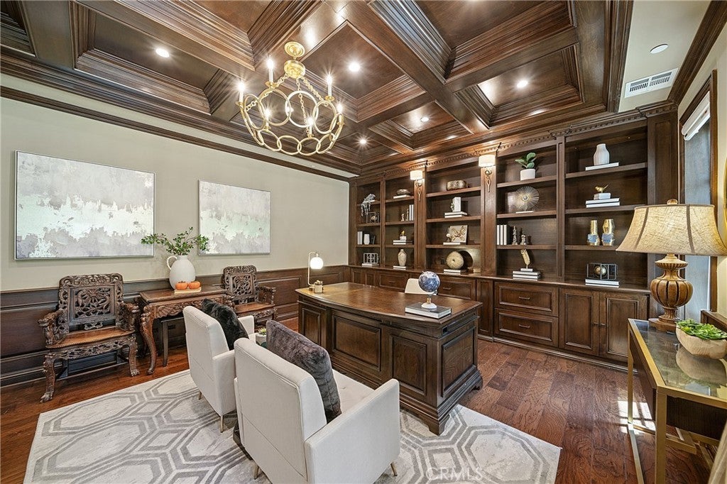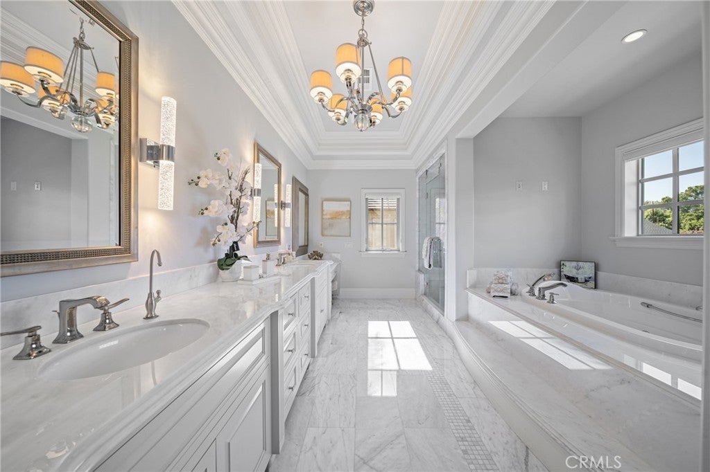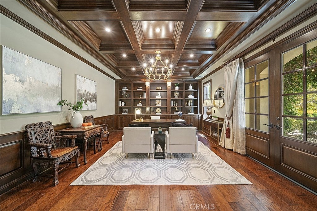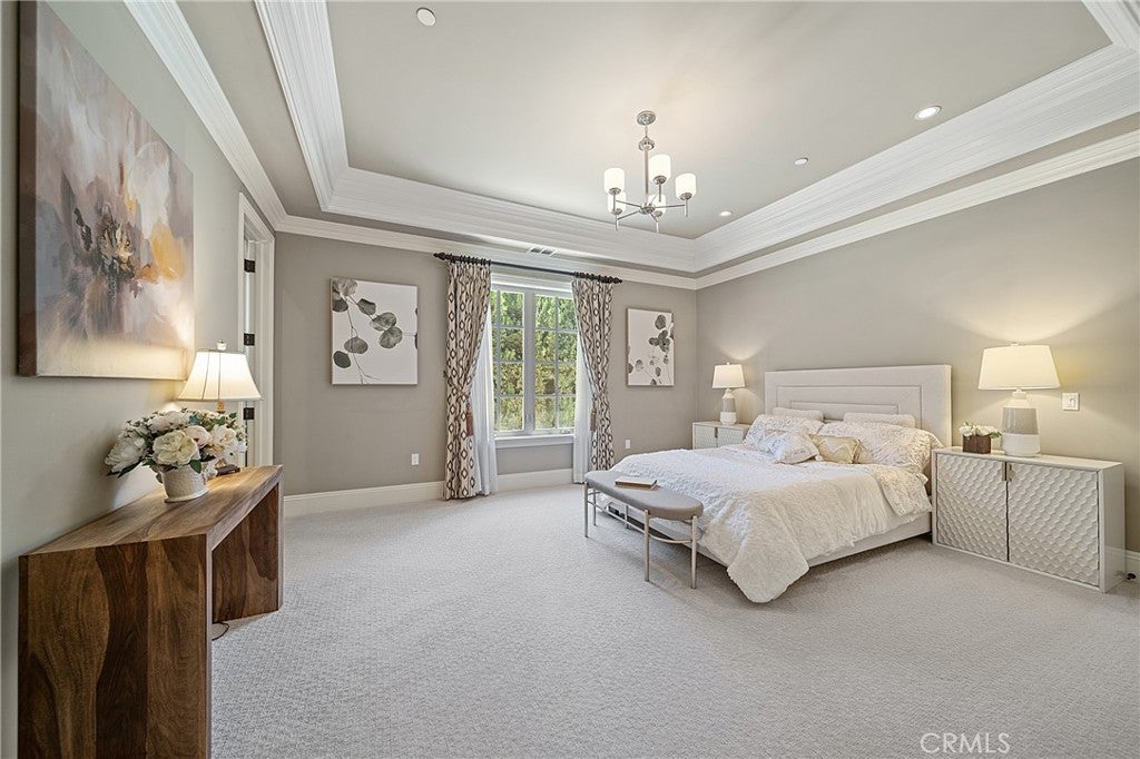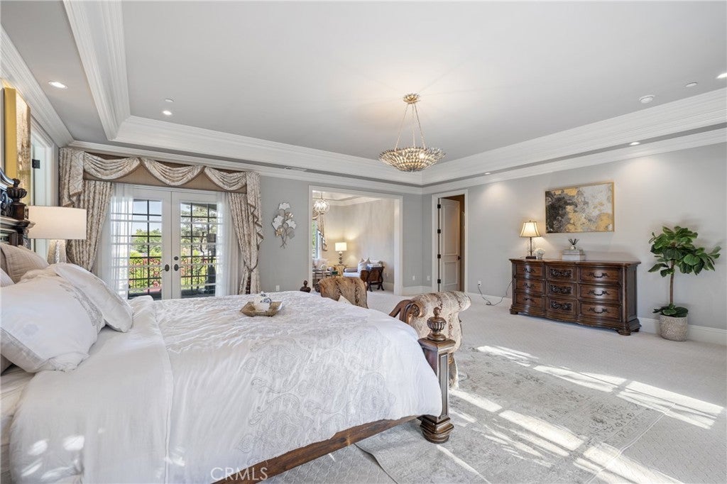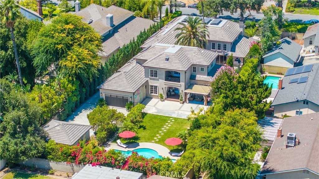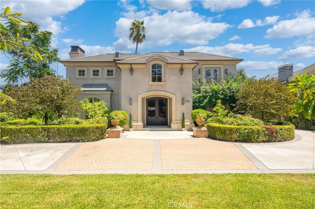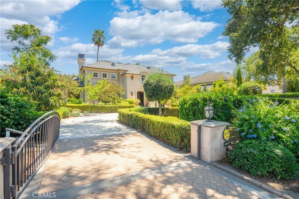 Spectacular Contemporary French Estate, designed by renowned architect Robert Tong, in Prestigious Tree-Lined Neighborhood completed in 2015. This exquisite estate home is nestled in a quiet, prestigious neighborhood, offering an exceptional blend of luxury, sophistication, and meticulous craftsmanship. Built with the highest quality materials and an eye for every detail, this residence delivers timeless elegance and modern comfort. Inside, the home welcome you with soaring two-story grand foyer features a chandelier with motorized lift, an elegant spiral staircase, and elevator access to all levels, boasts circular dome ceiling adorned with double and triple crown moldings, designer light fixtures, and custom casement windows. Flooring includes marble, travertine, rich hardwood, and carpet throughout. The formal living room impresses with 2-story ceiling and a fireplace, while the private library includes custom built-ins. Additional spaces include a game room with custom wet bar, formal dining room, and a spacious family room with views of the exterior courtyard—complete with fireplace—and the serene rear yard. Entertainment is elevated with a state-of-the-art theater room equipped with immersive surround sound. The gourmet kitchen is a chef’s dream, featuring a large central island, Wolf Professional Series appliances, Subzero refrigerator, custom cabinetry, separate wok kitchen, and a generous walk-in pantry. Every bedroom is a suite. Each bedroom is a private suite. The luxurious master suite offers a private sitting area, a large balcony, and an terrace with sweeping views of the backyard. It also features a huge walk-in closet with custom organizers and a spa-like bathroom with a Jacuzzi tub and steam shower. Additional features includes a wholehouse water softener system. Outside, the professionally landscaped yard showcases a sparkling heated pool and spa, plenty of fruit trees, gazebo, perfect for relaxation or entertaining. Additional amenities include full security alarm and surveillance system, paid solar panels, a four-car garage, gated U-shaped driveway for easy access and additional guest parking. Don't miss the opportunity of lifetime to call this Home!