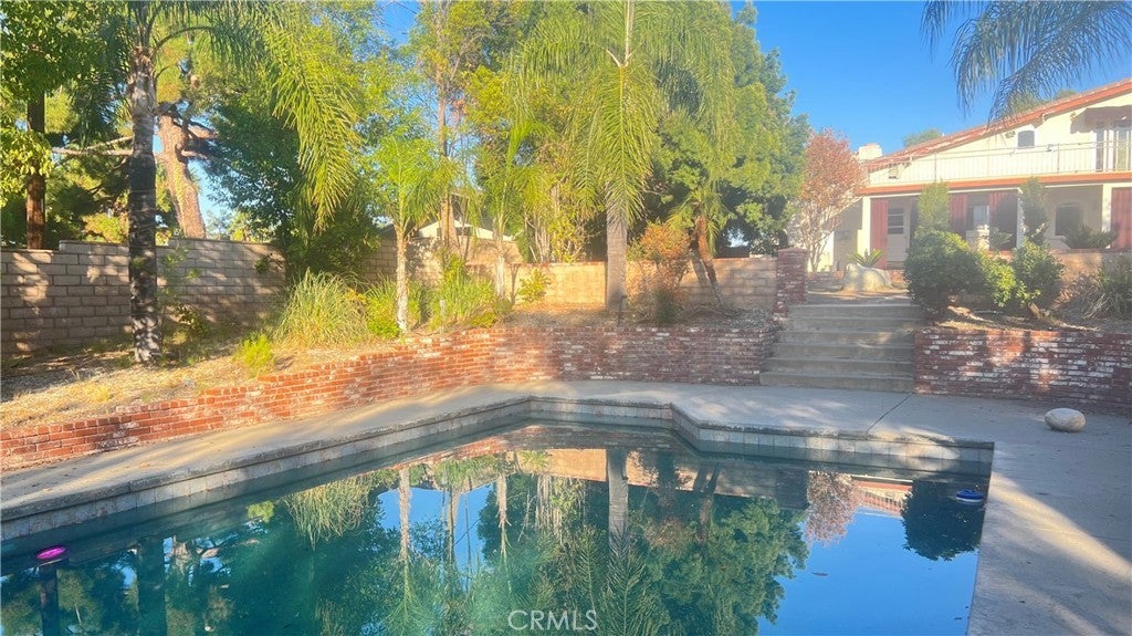 Own your own paradise. This custom home sits on .59 acre with lots of privacy. Enter through the double 8' Mahogany doors into large entry with vaulted ceilings, custom hand distressed hardwood floors, upgraded carpet, kitchen with granite counters, center island and custom Italian marble back splash, Alder wood cabinets, crown molding, brick fireplace in living room with custom mantle, guest bath with Travertine and custom tiles, second full bath has jetted tub and Travertine, MBR with French doors to balcony with awesome view of back yard and Cleveland National Forest, walk-in closet, MBR bath with granite, dual shower heads and separate claw bath tub. Separate laundry room, pebble tech pool, stream with water fall, large covered patio, 2 gazebos. This home is truly unique and serene. Your renters will love the privacy.
