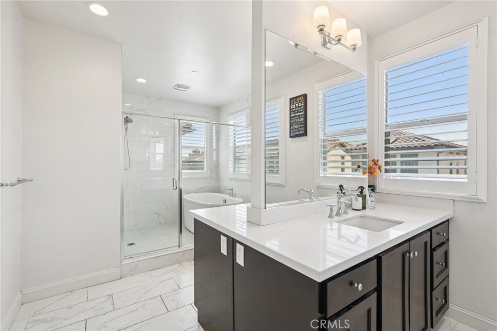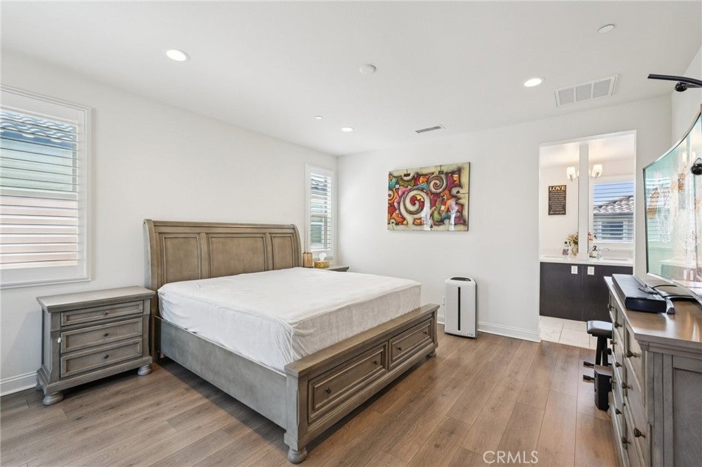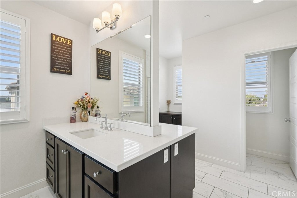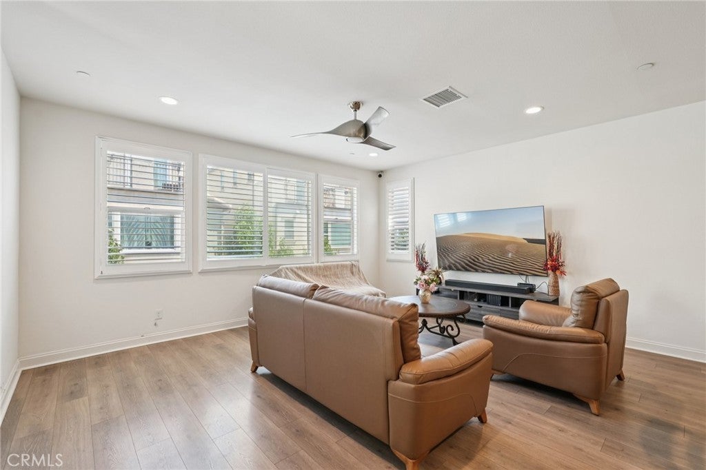 GATED • PAID OFF SOLAR INCLUDED • NO MELLO-ROOS • LOW HOA FEE Welcome to Pacific Villas—Baldwin Park’s newest gated community, where luxury meets convenience. This stunning 4-bedroom, 4.5-bath Plan 3 home offers a thoughtfully designed layout with each bedroom featuring its own private full bath, plus a stylish powder room on the second floor. The first floor includes two bedrooms, perfect for guests or multigenerational living. The second floor features the gourmet kitchen, dining area, spacious living room, laundry room, and a third bedroom. The top floor is reserved for the private primary suite, complete with a relaxing retreat, a generous walk-in closet, and a spa-inspired bath with dual vanities, a luxurious free-standing tub, and a spa shower. Enjoy your own spacious balcony with neighborhood views. Upgrades include paid-off solar panels, Kona cabinetry, quartz countertops with designer backsplash, hand-set ceramic tile flooring, and premium electrical enhancements,Kitchen island with bar seating creates the perfect space for entertaining. and plantation shutters for a timeless touch. Community amenities feature a gated entrance, scenic paseo, and private dog park