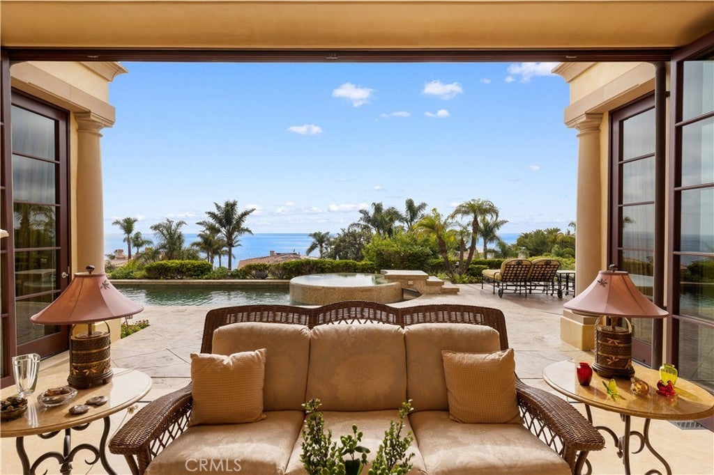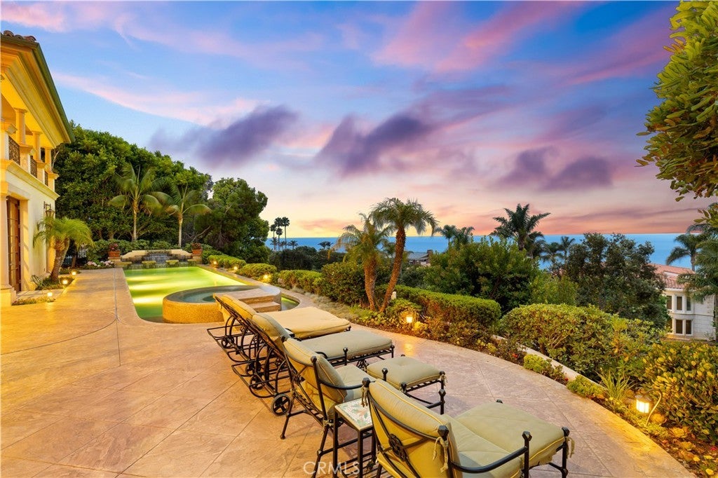 This stunning Mediterranean estate defines luxury within the prestigious Lunada Pointe enclave, radiating timeless sophistication. Spectacular ocean panoramas embrace every major bedroom and living area, capturing quintessential Southern California coastal living. An exclusive stone-paved driveway leads up to a grand, two-story mansion, designed by an award-winning architect. Inside the foyer, a bright skylight and matching wrought-iron railings frame custom-made furnishings, realized by an esteemed local interior designer. Through the ocean-front sunroom (loggia) is a resort-style backyard with a heated pool and jacuzzi, rendering a seamless indoor-outdoor lifestyle. Accented with an al fresco dining pavilion with a state-of-the-art barbecue station, the endearingly decorated landscaped gardens create a true coastal sanctuary that aligns with the glow of sunset beyond the Pacific Ocean horizon. Inside, the chef’s kitchen features a massive center island crafted from warm-toned marble and adorned with modern built-in appliances, a prep kitchen, and versatile dining spaces; designed for both casual gatherings and formal entertaining. The cozy but stately living room features a fireplace elevated by stone relief wall decorations and a functional wet bar. Adjacent is an extraordinary executive office lined with dark wood built-in bookshelves overlooking impressive views of the garden and ocean. In the same corner of the home is an suite guest bedroom with private garden access. This upscale property offers exceptional entertainment and relaxation spaces: a newly refurbished family room for movie nights, a spacious home theater with a billiards table for large gatherings, and a playroom and intimate music room for private enjoyment. Each suite bedroom is embedded with a character of elegance, comfort, and functionality. Located just moments away from the Terranea Resort, Golf Club, and scenic costal trails, 64 Laurel Drive is a fully furnished lifestyle masterpiece in one of Rancho Palos Verdes’ most coveted neighborhoods.
