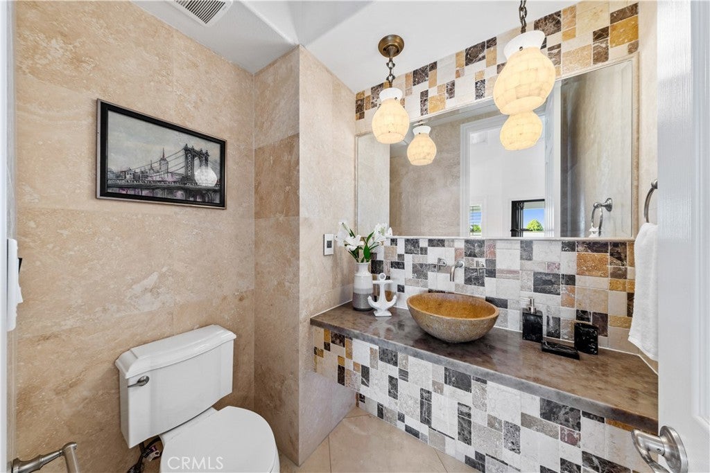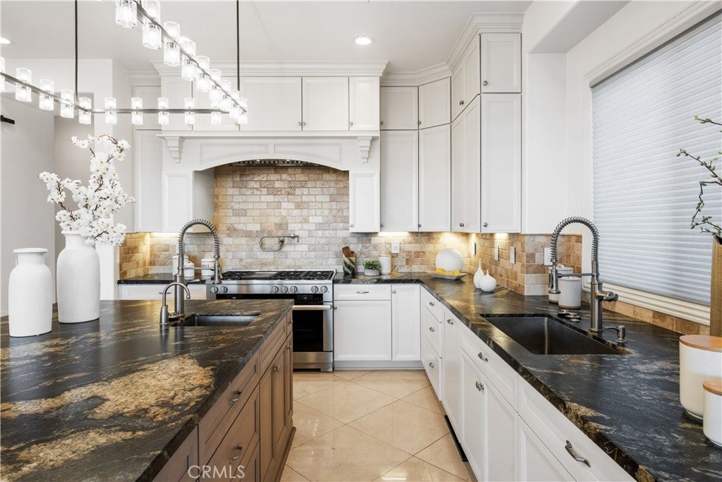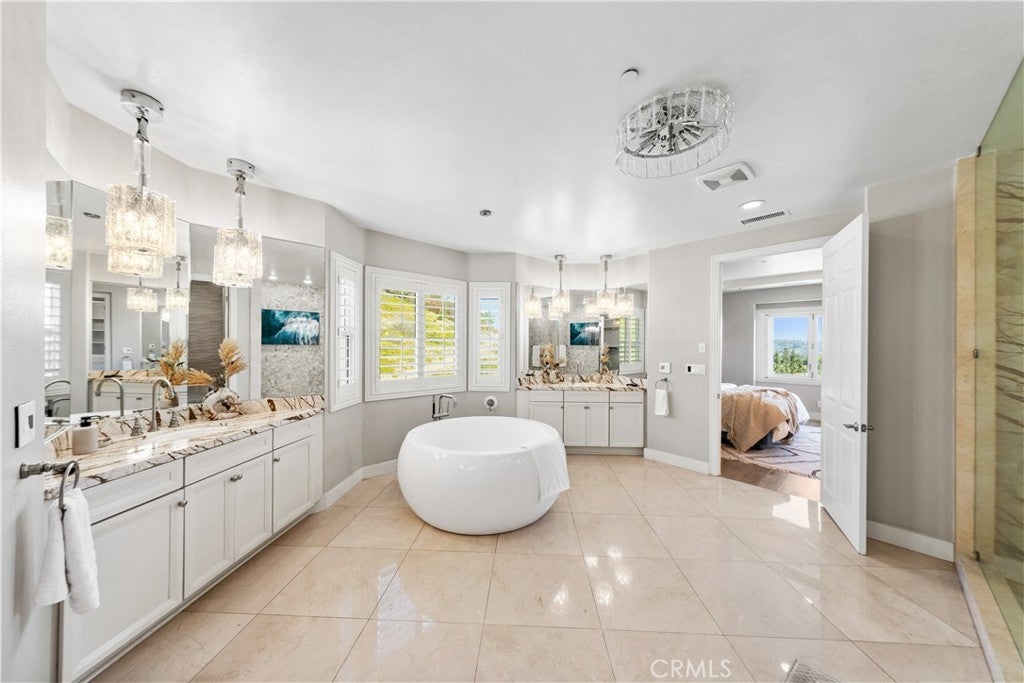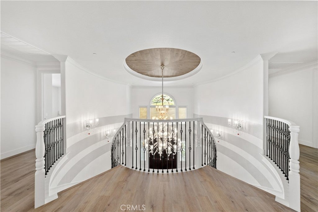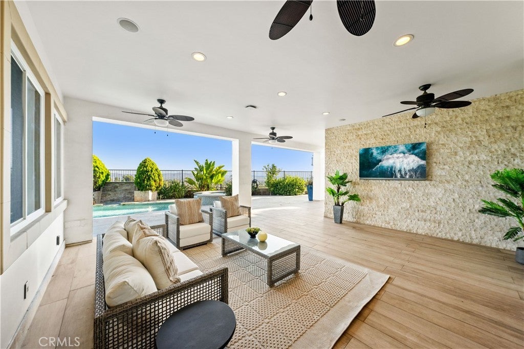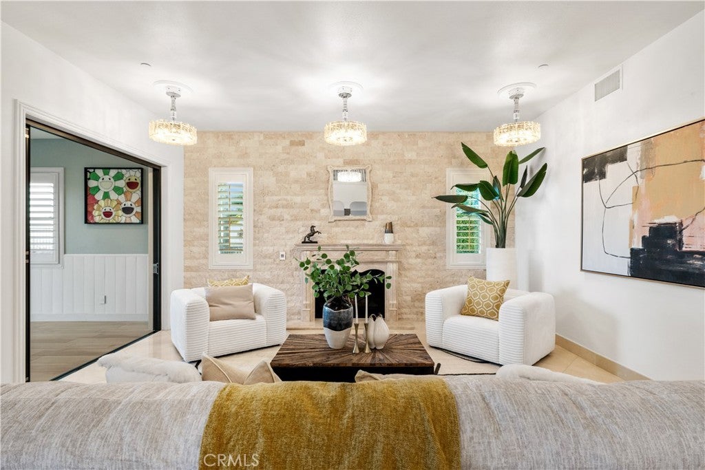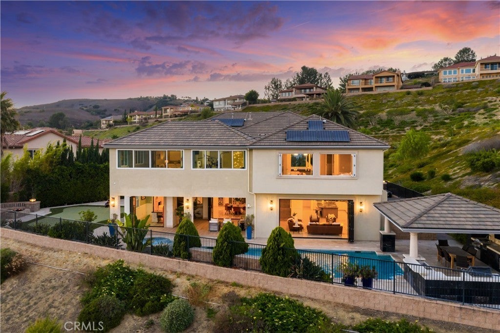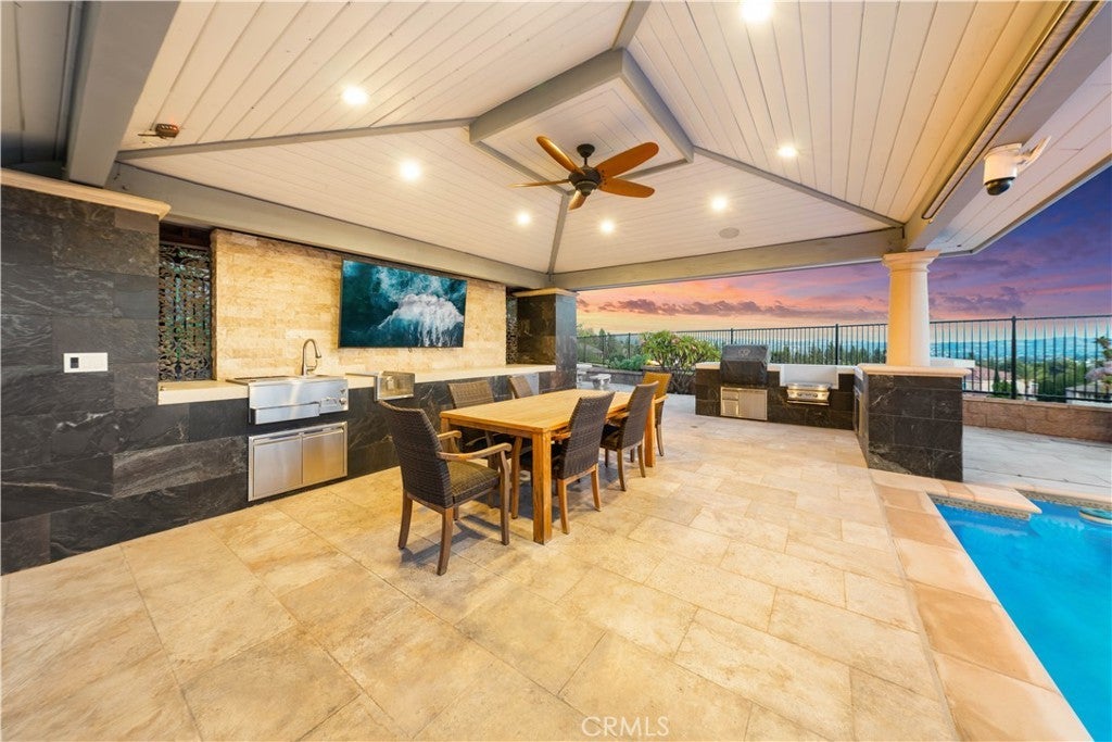 Exquisite Toll Brothers estate in the prestigious Amalfi Hills community of Yorba Linda. This expanded luxury residence offers 6 bedrooms and 6.5 baths on over 30,000 square feet of lot. Originally 5,826 square feet, the home has been thoughtfully enhanced with permitted additions, including a private upstairs gym, office, additional ensuite bedroom and California room, bringing the total to nearly 6,600 square feet of refined living space. The grand entry welcomes with soaring ceilings, sparkling crystal chandeliers, all-tile and marble flooring, marble molding, striking marble pillars, a travertine accent wall, and marble fireplace. Indoor/outdoor living is highlighted by lanai sliding doors and a custom dual-panel retractable screen system with blackout and mesh options. Crystal lighting throughout enhances the timeless elegance. The Show kitchen features premium granite countertops, all Miele built-in appliances including coffee maker, microwave, 6-burner range with oven, designer hood, dishwasher, and an 8-ft floor-to-ceiling wine and beverage cooler. A separate chef’s prep kitchen with Samsung appliances provides additional convenience for entertaining. Two en-suite bedrooms are located downstairs. Upstairs, one wing is dedicated entirely to the primary retreat with panoramic views, private gym, office, movie lounge, and a spa-inspired bathroom featuring a custom round soaking tub. The opposite wing offers three ensuite guest rooms, creating a thoughtful and private layout for all. Resort-style outdoor living includes a pool with water wall and connected heated spa, outdoor fireplace, built-in BBQ, putting green, custom fire pit lounge, and ample seating areas and RV/boat parking. Upgrades include fully paid solar, two new AC condensers, two tankless water heaters, whole-home water softener, and EV charger. Feng shui elements are thoughtfully integrated throughout the property. Located in North Yorba Linda Hills with award-winning schools, this estate is a rare combination of architectural beauty, modern efficiency, and turnkey modern living. Come see and appreciate your new home...see the video walk-through!!!