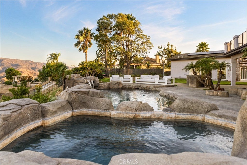 Welcome to The Breathtaking Panoramic Views Property in Yorba Linda! Must stop to see and stay mins! Perched high on a cul-de-sac, this one-of-a-kind architectural gem offers unparalleled privacy, luxury, and sweeping 180° mountain views with no neighbors in sight. Nestled at the top of the hill in the prestigious Lomas De Yorba Estates, this home features one of the community’s most sought-after floor plans with soaring two-story ceilings, expansive open spaces, and walls of windows framing mesmerizing scenery. This stunning estate offers 5 bedrooms, 6 bathrooms, and has been fully renovated inside and out with new paint, hardwood flooring, and modern finishes. The chef’s kitchen showcases white cabinetry, granite countertops, Sub-Zero built-in refrigerator/freezer, stainless steel appliances, and a spacious center prep island — all completely open to the inviting family room with fireplace and picture-perfect views. Additional highlights on the main level include: A private executive office with high ceilings and custom white lacquer built-ins A stylish powder room A convenient downstairs en-suite bedroom A full laundry room Dual staircases lead upstairs to the luxurious oversized primary suite featuring a cozy retreat, fireplace, and private balcony. The spa-like primary bathroom includes a sunken jetted tub, marble flooring, dual vanities, a walk-in shower, and a generous walk-in closet. Three additional bedrooms (one en-suite), two full bathrooms, and a loft with access to a large viewing deck complete the second floor. The deck also provides direct access to the backyard. This property offers even more versatility with an additional pool room(1300 Sqft) featuring a bedroom (10x12) and bathroom, plus a garage conversion into a private entertainment lounge. Sitting on a generous 29,000+ sqft lot, the resort-style backyard showcases: A recently updated Pebble Tec pool & spa with rock waterfall Covered patio & BBQ island Grassy play area with swing Cozy above-ground fire pit ADDITIONAL FEATURES INCLUDE AGAIN: Generous driveway with 4-car garage Custom shutters throughout RV parking 31 Panels Solar Located in the highly sought-after Bryant Ranch Elementary & Yorba Linda High School District Whether hosting or simply enjoying the peaceful surroundings, this home delivers luxury living and jaw-dropping views at every turn.