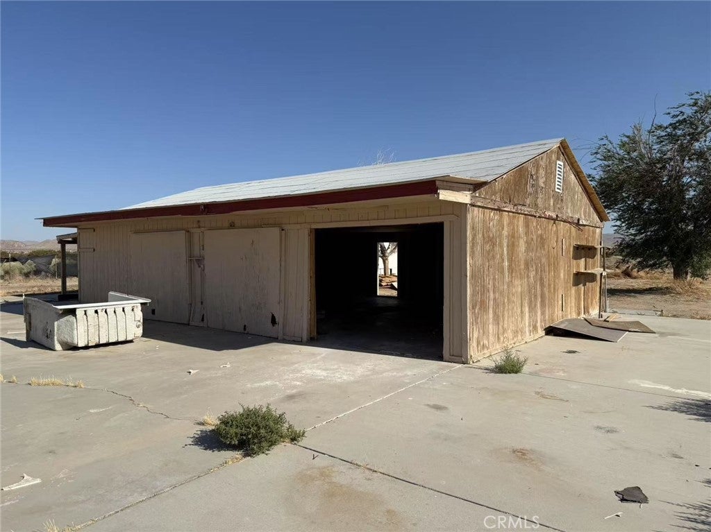 Investment opportunity in Helendale! This expansive property at 17833 Santa Fe Trail offers multiple structures with excellent potential. The lot includes a manufactured home in need of repair, a spacious converted storage unit with drywall finish, and a detached garage/workshop with a concrete slab. A well water system with storage tanks is already installed, adding utility value. Surrounded by open desert views and privacy, this property is ideal for investors, builders, or those seeking a custom retreat. With renovation and vision, it can be transformed into a unique residence or income-producing asset in San Bernardino County.